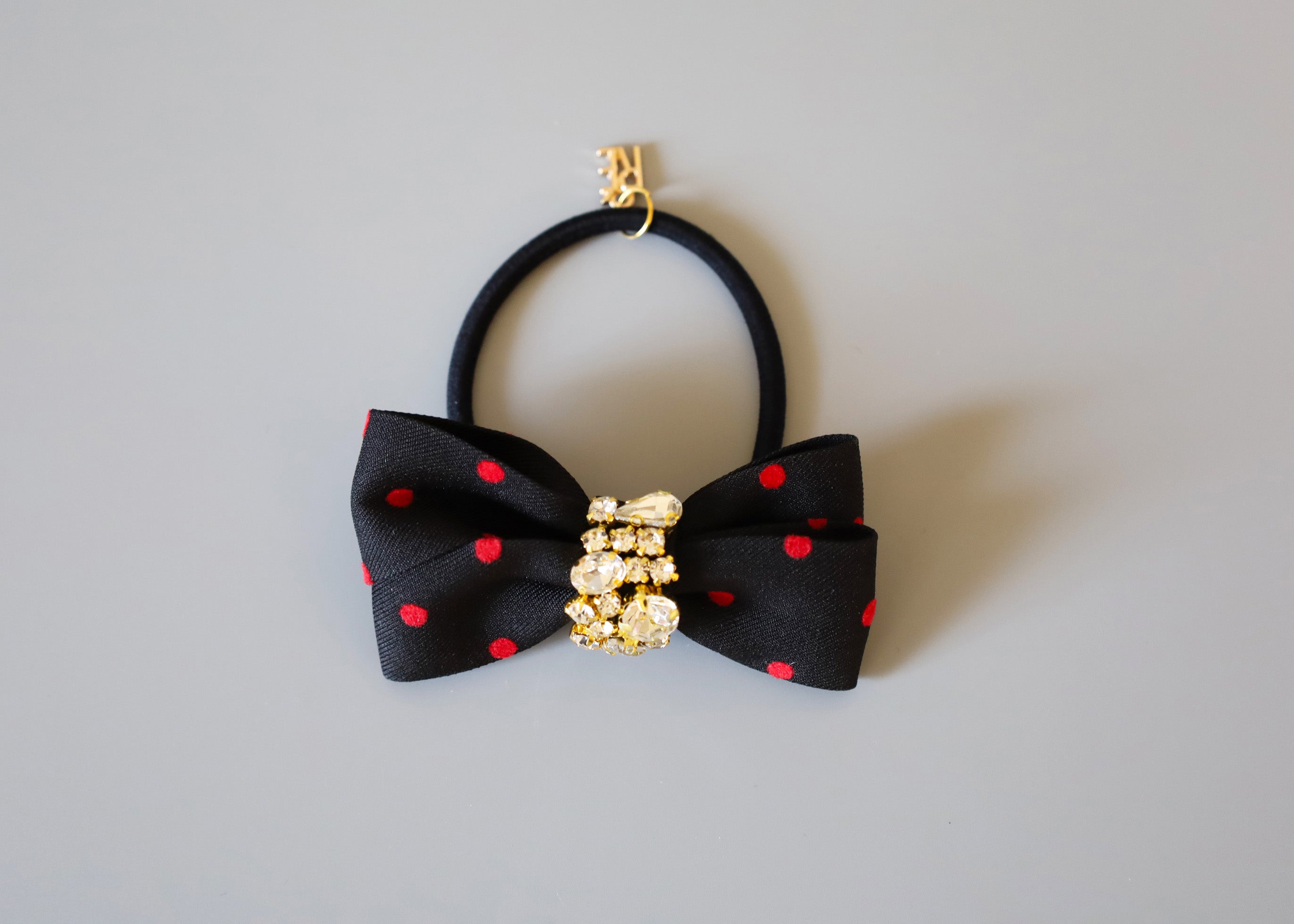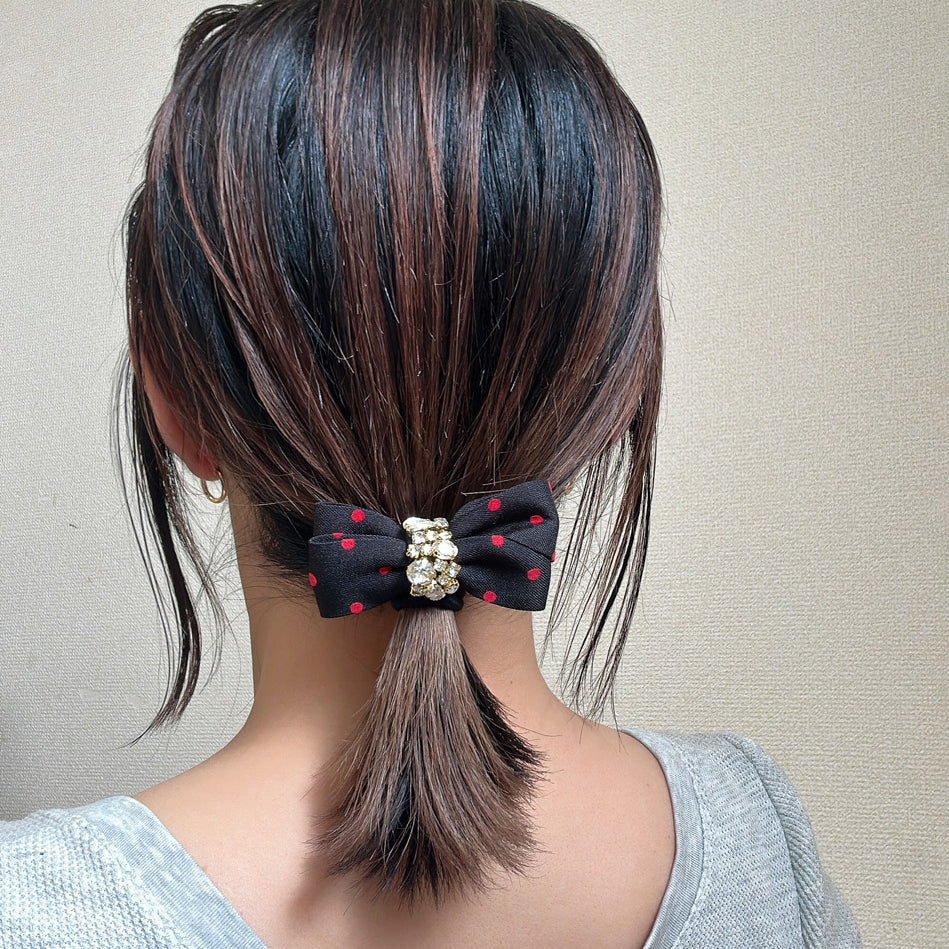 Black Red Dot Gold Studs Hair Pony