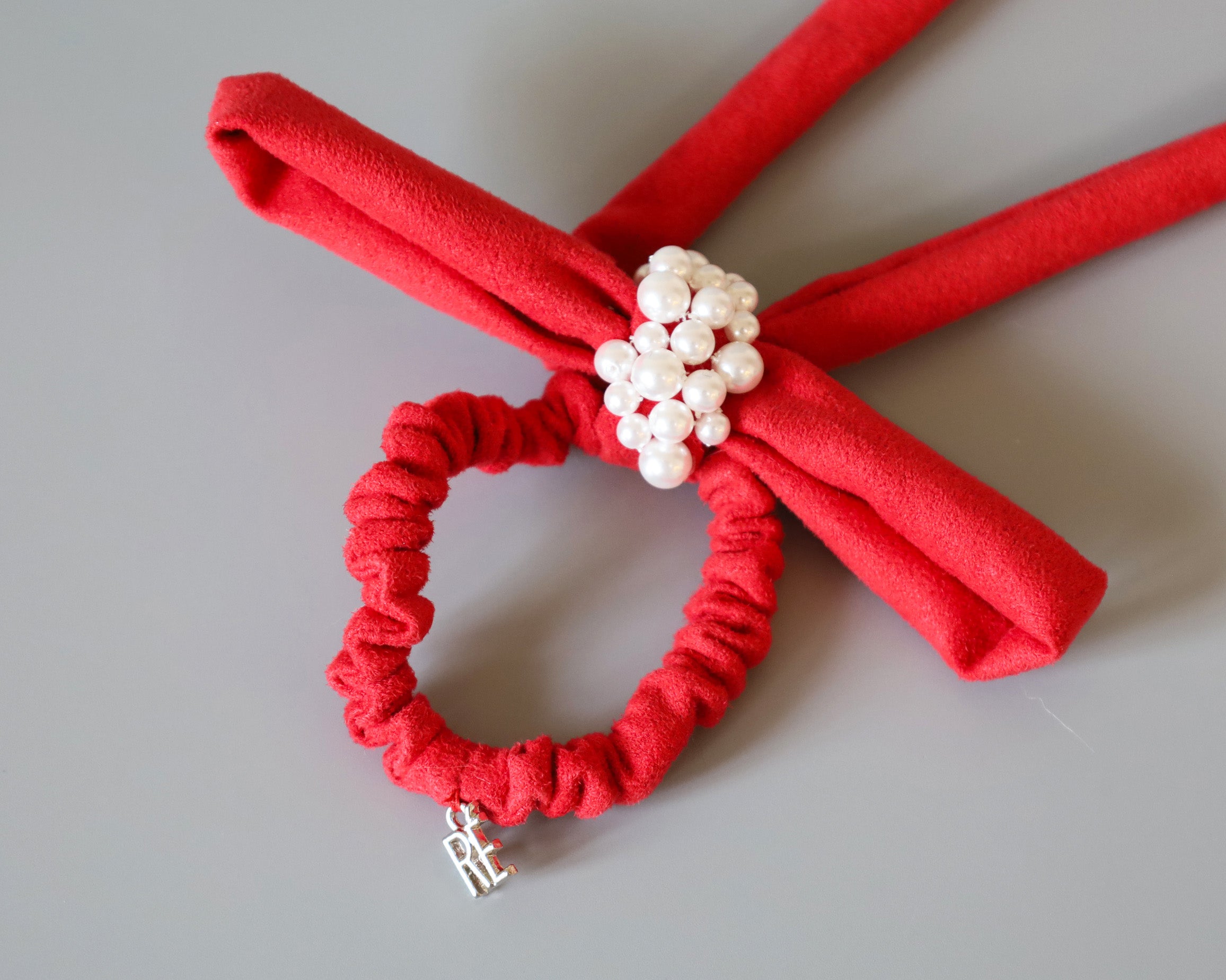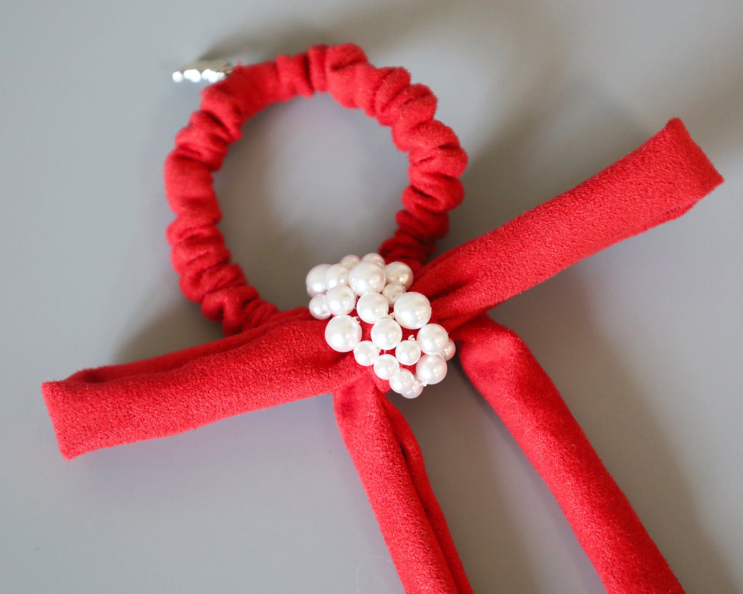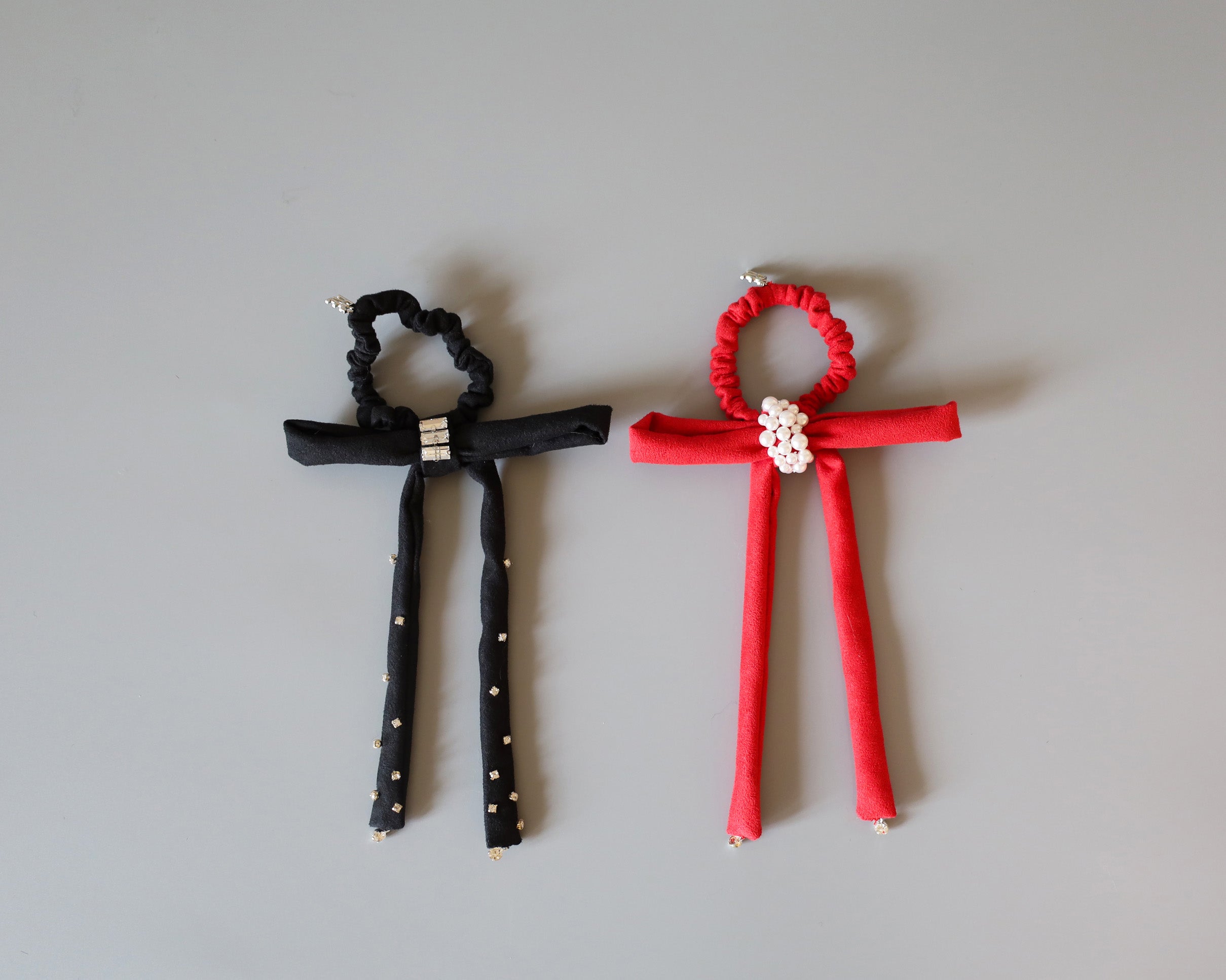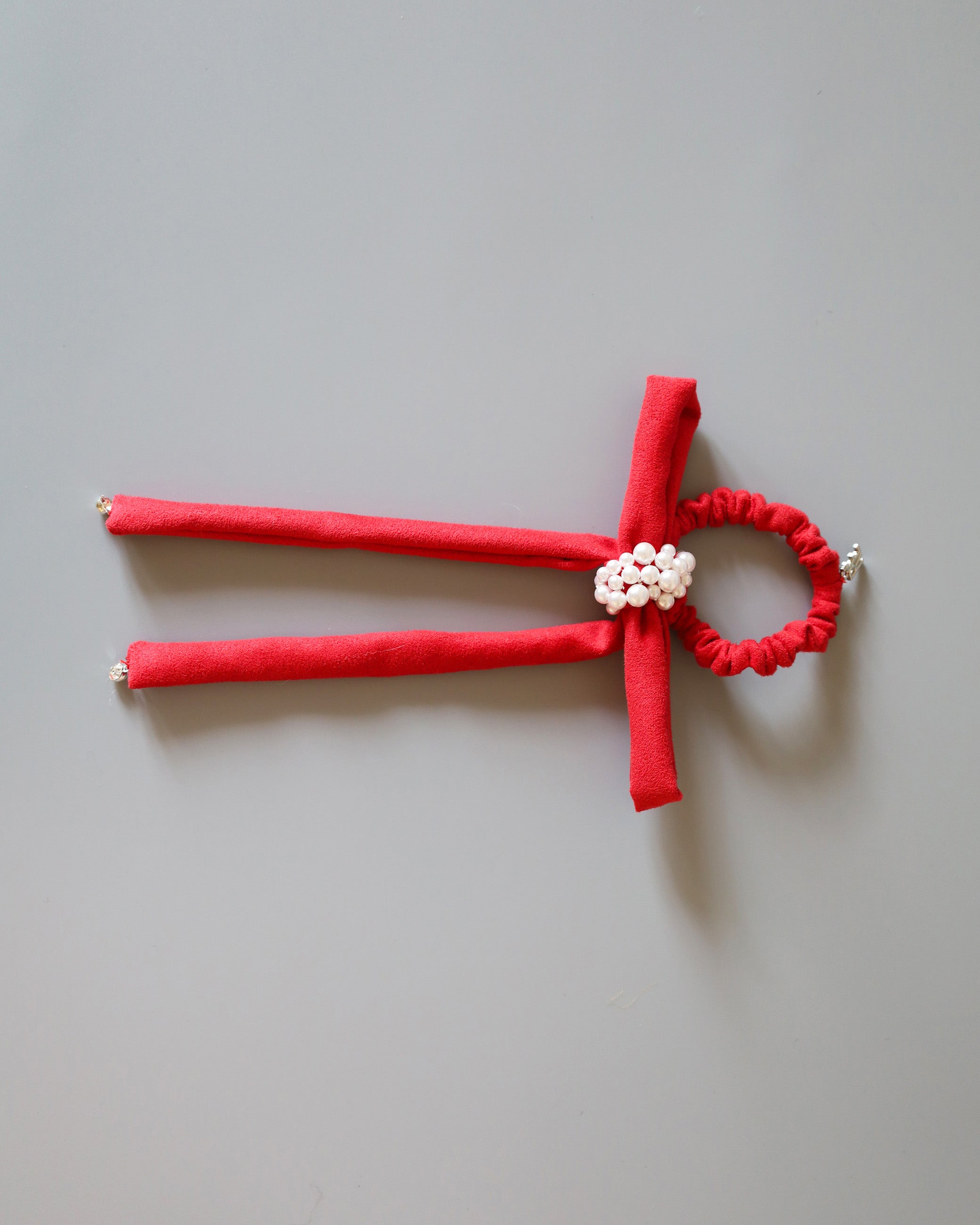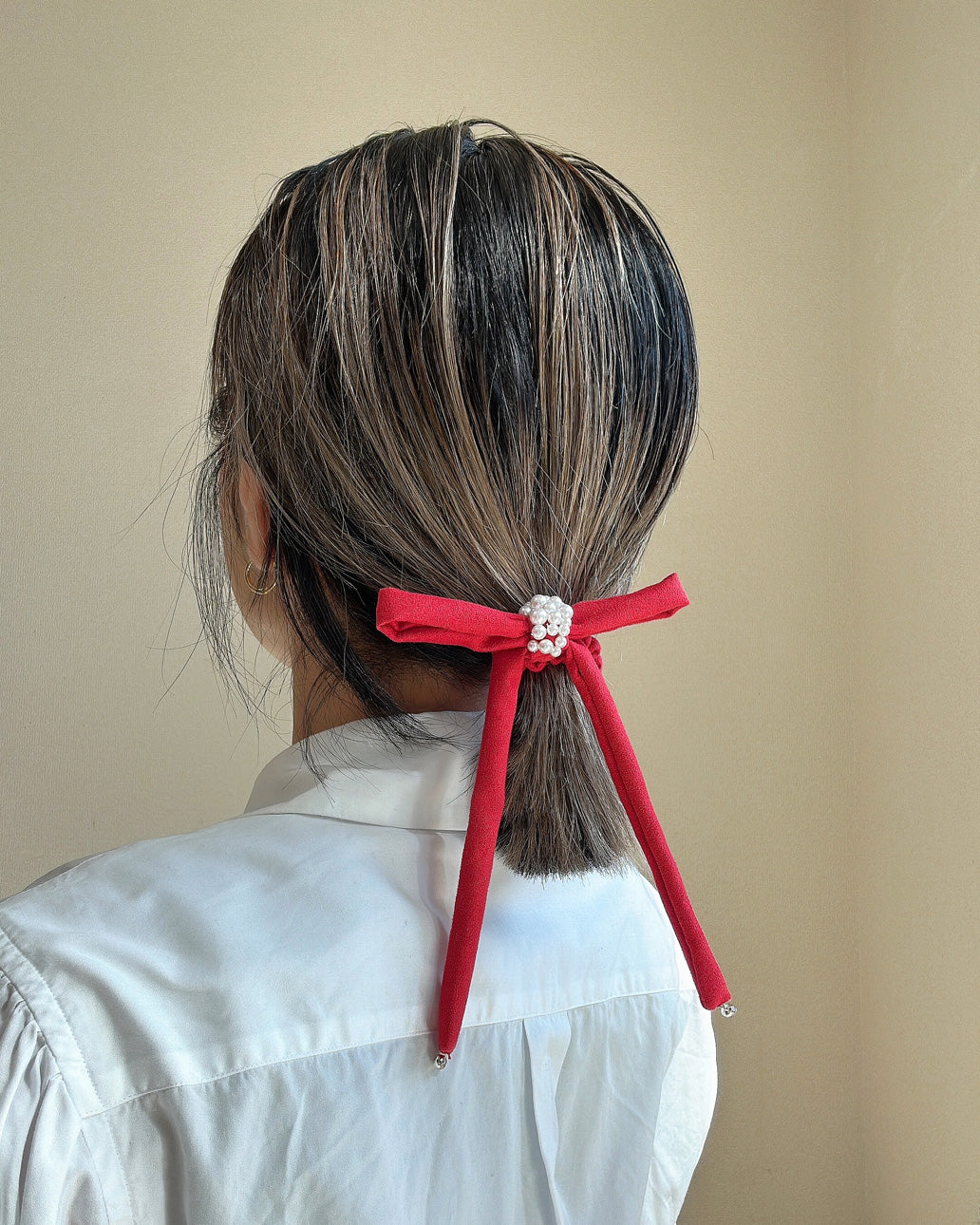 シンプルな1つ結びもぐっと華やぐ、コーデの主役にもなりうるリッチなデザインです。