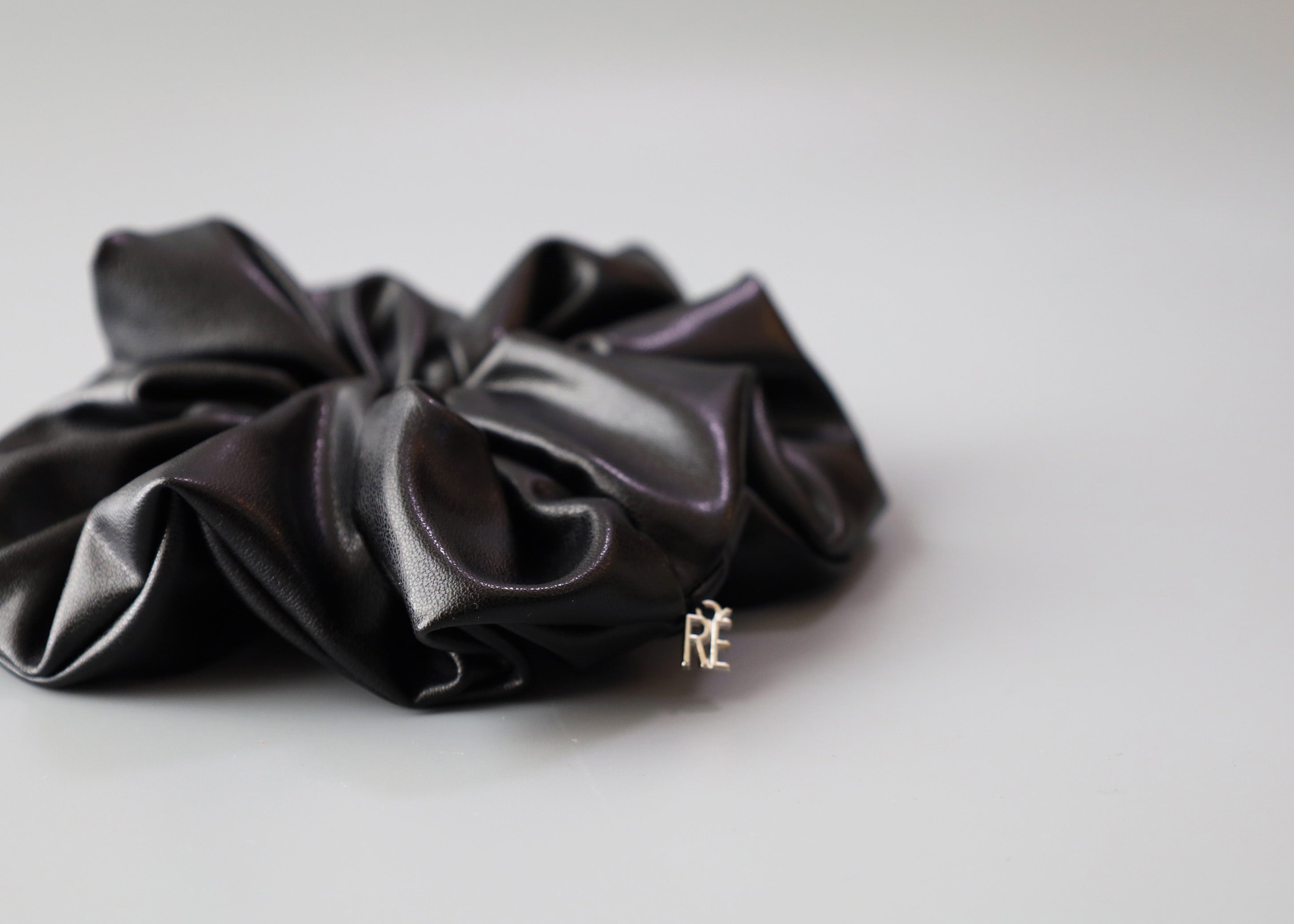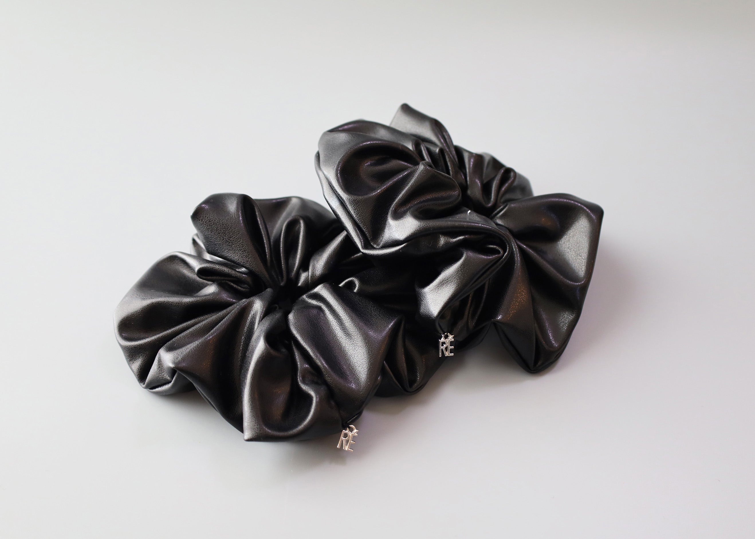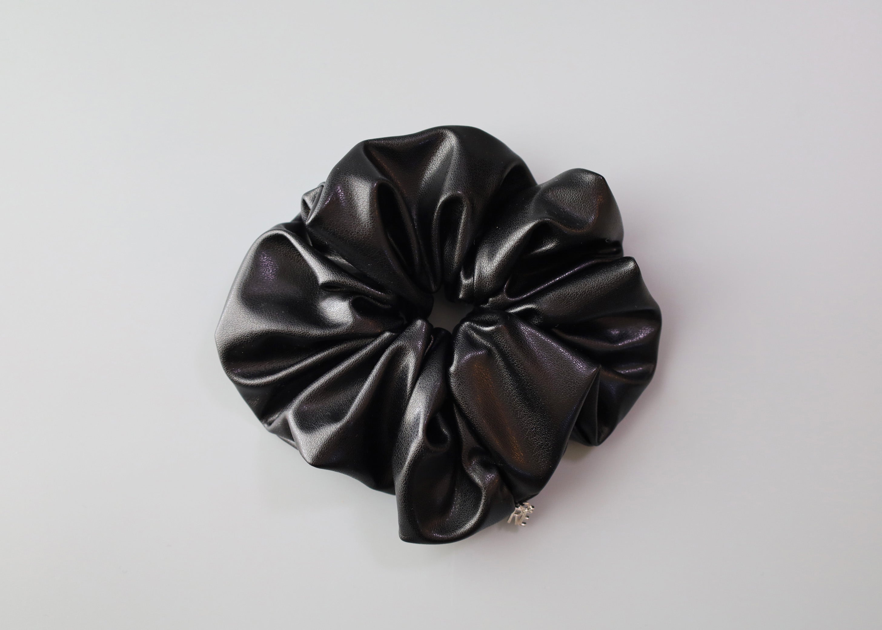 モードな雰囲気漂うブラックのエコレザーシュシュ。