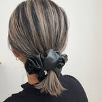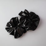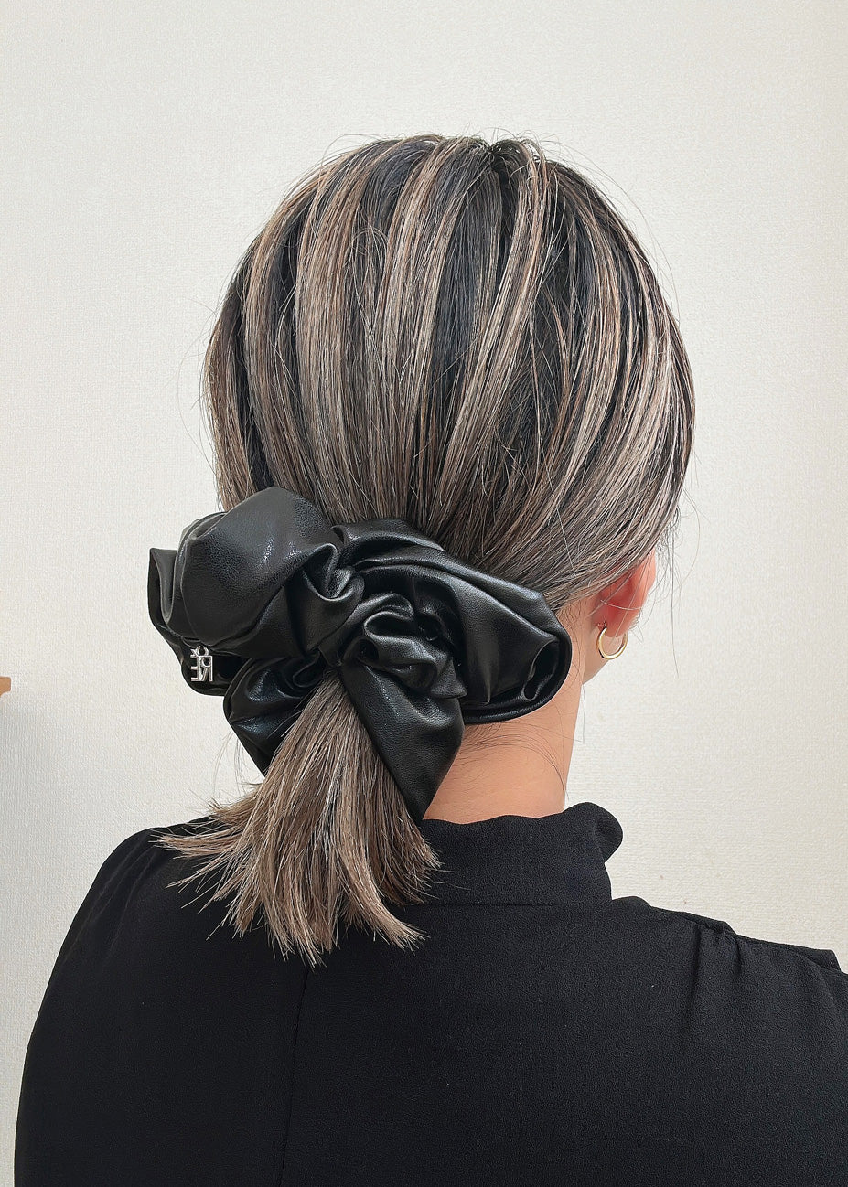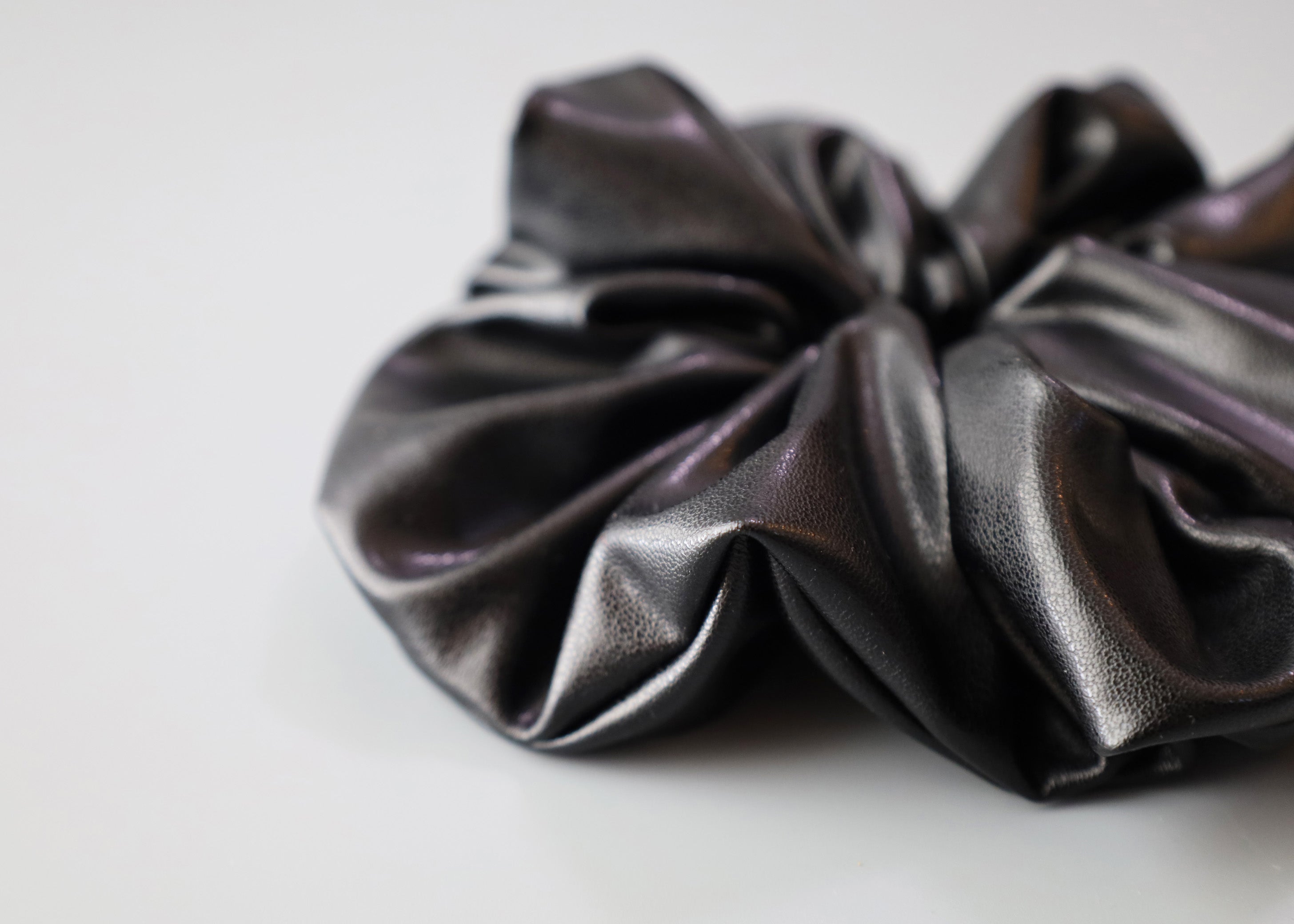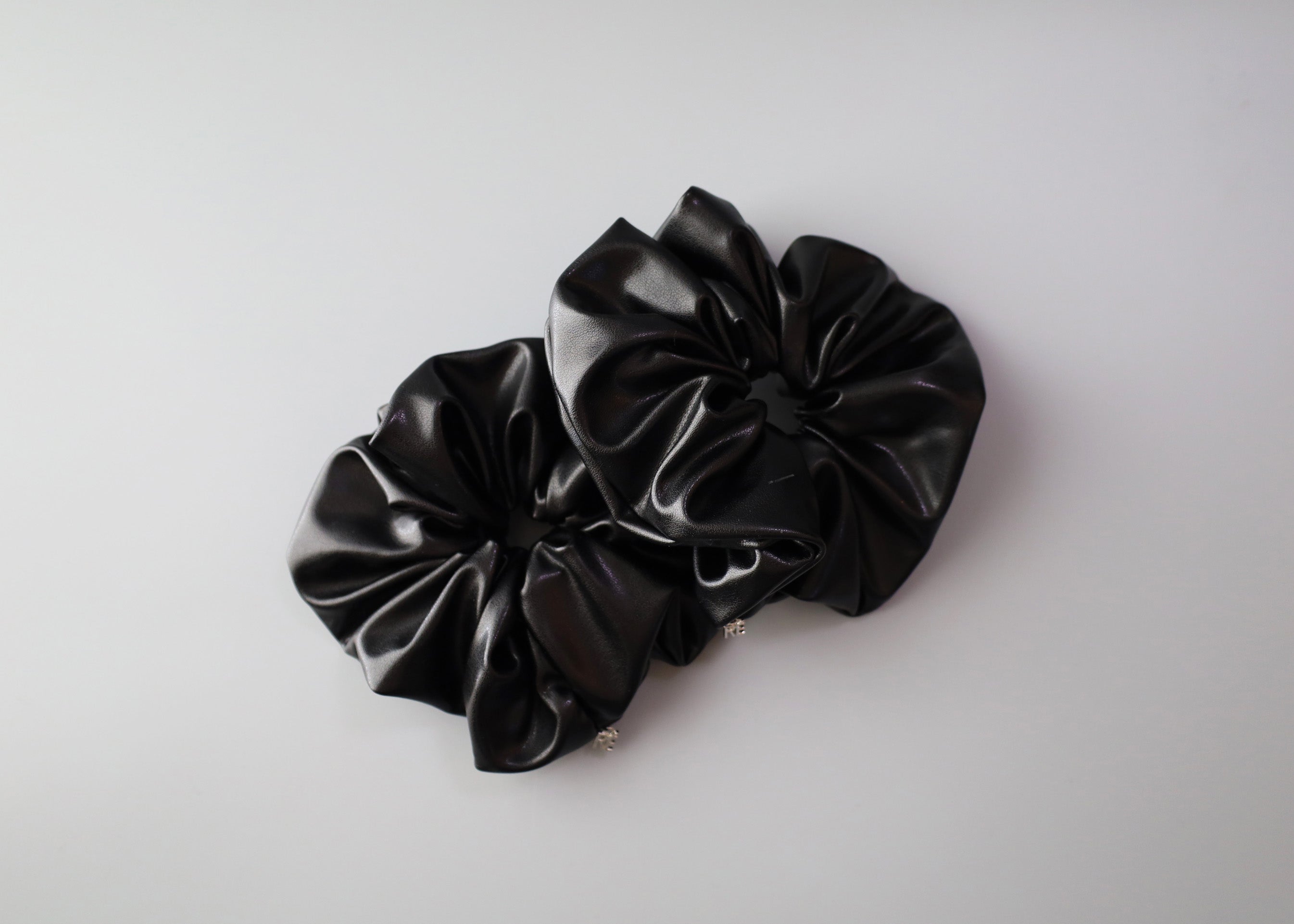 モードな雰囲気漂うブラックのエコレザーシュシュ。