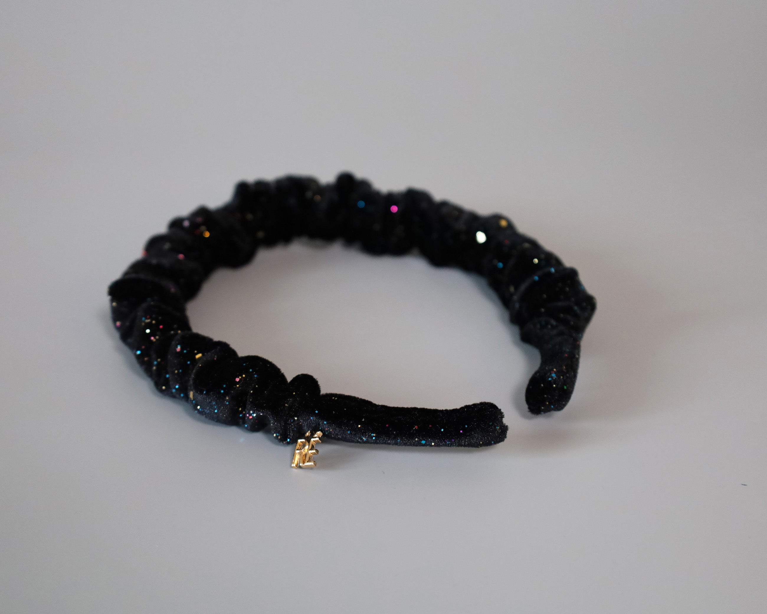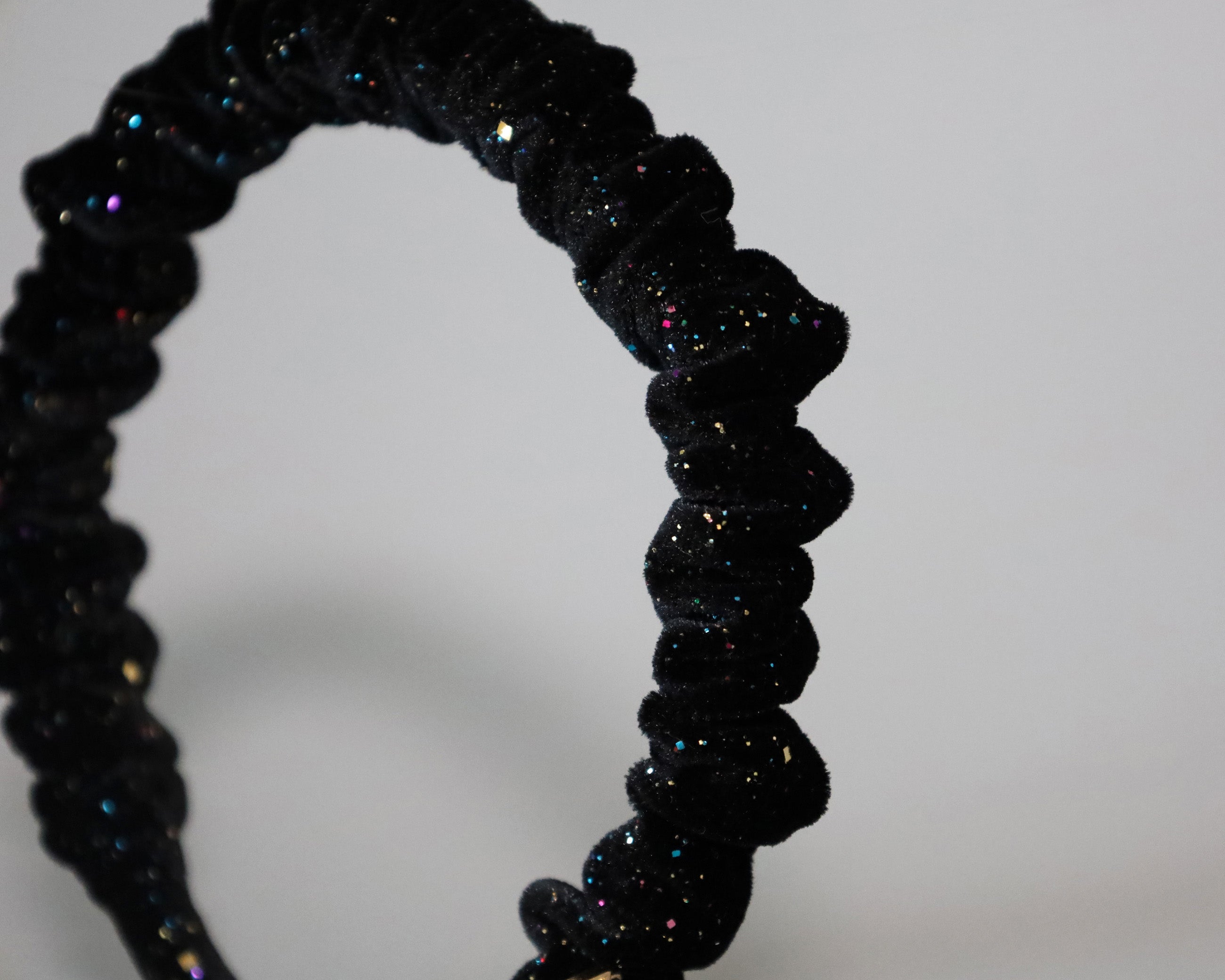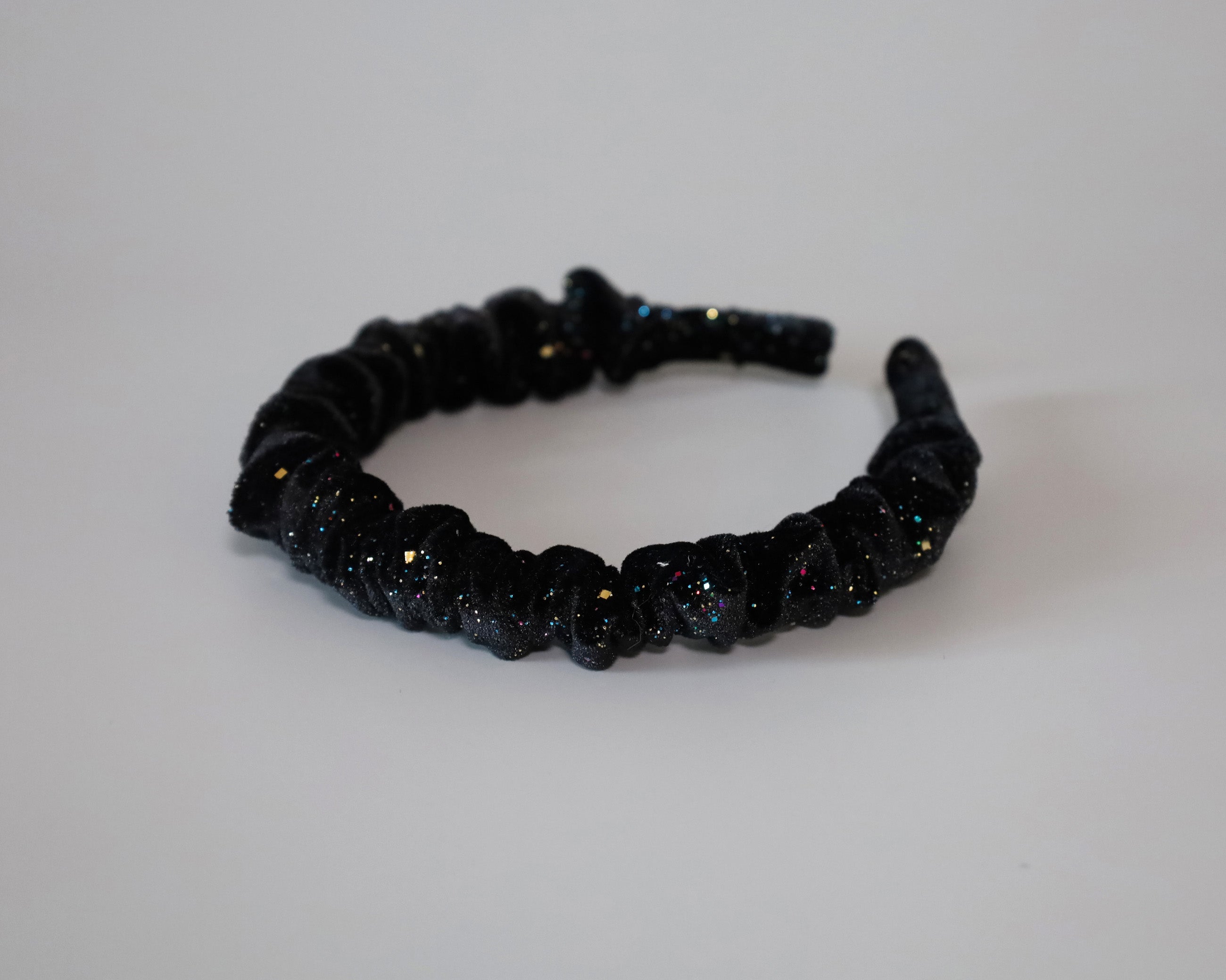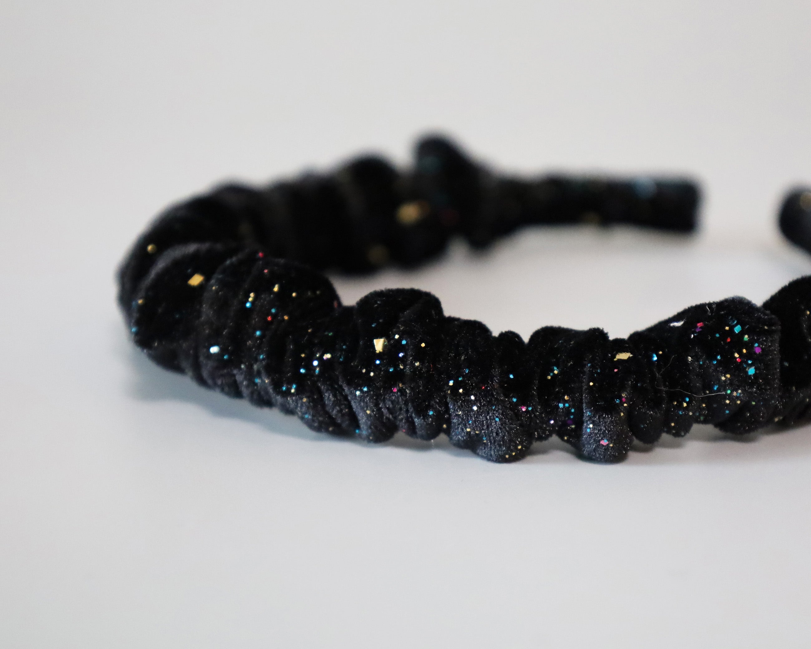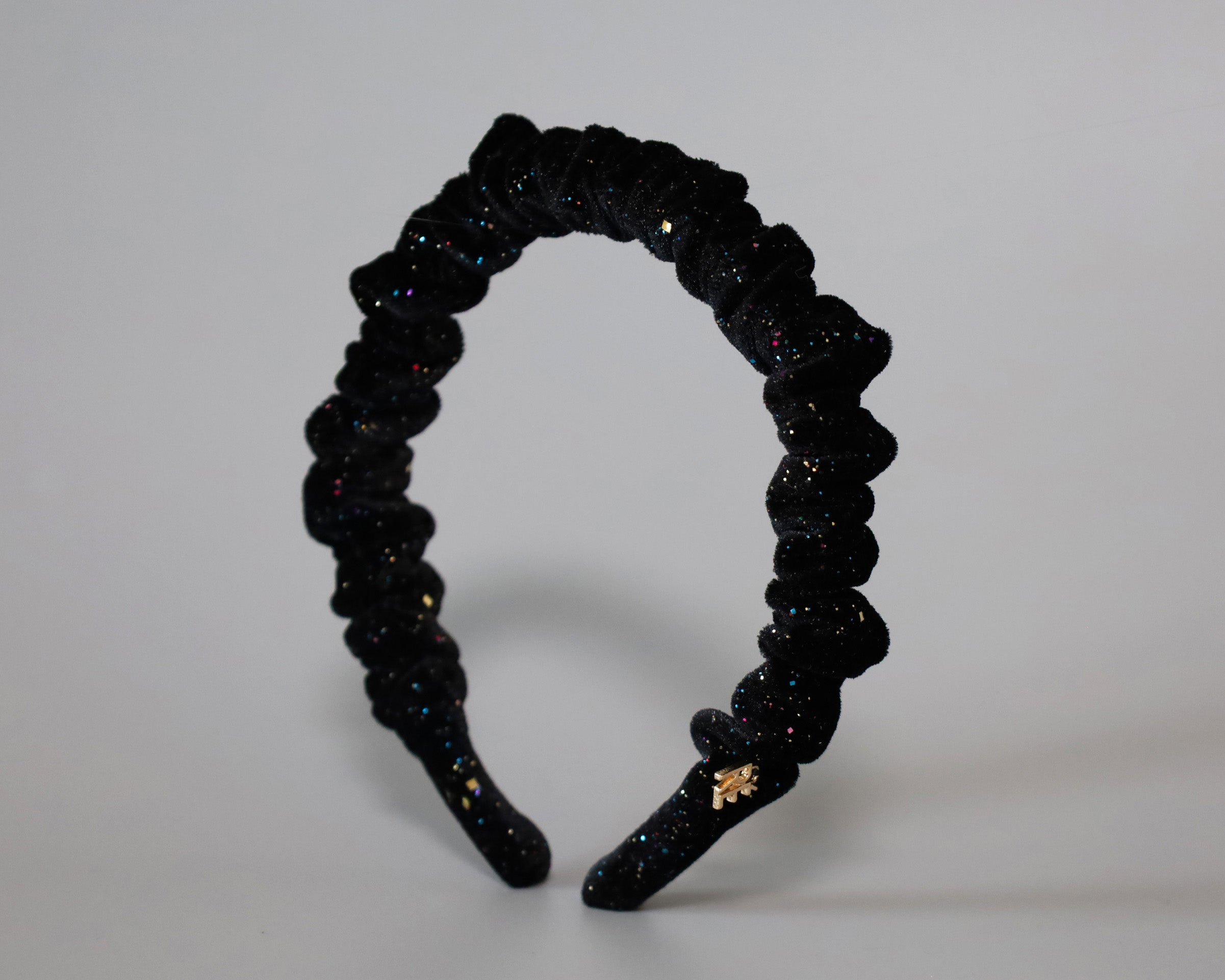 ブラックのベロア生地に繊細なラメを散りばめたロマンティックなカチューシャ。