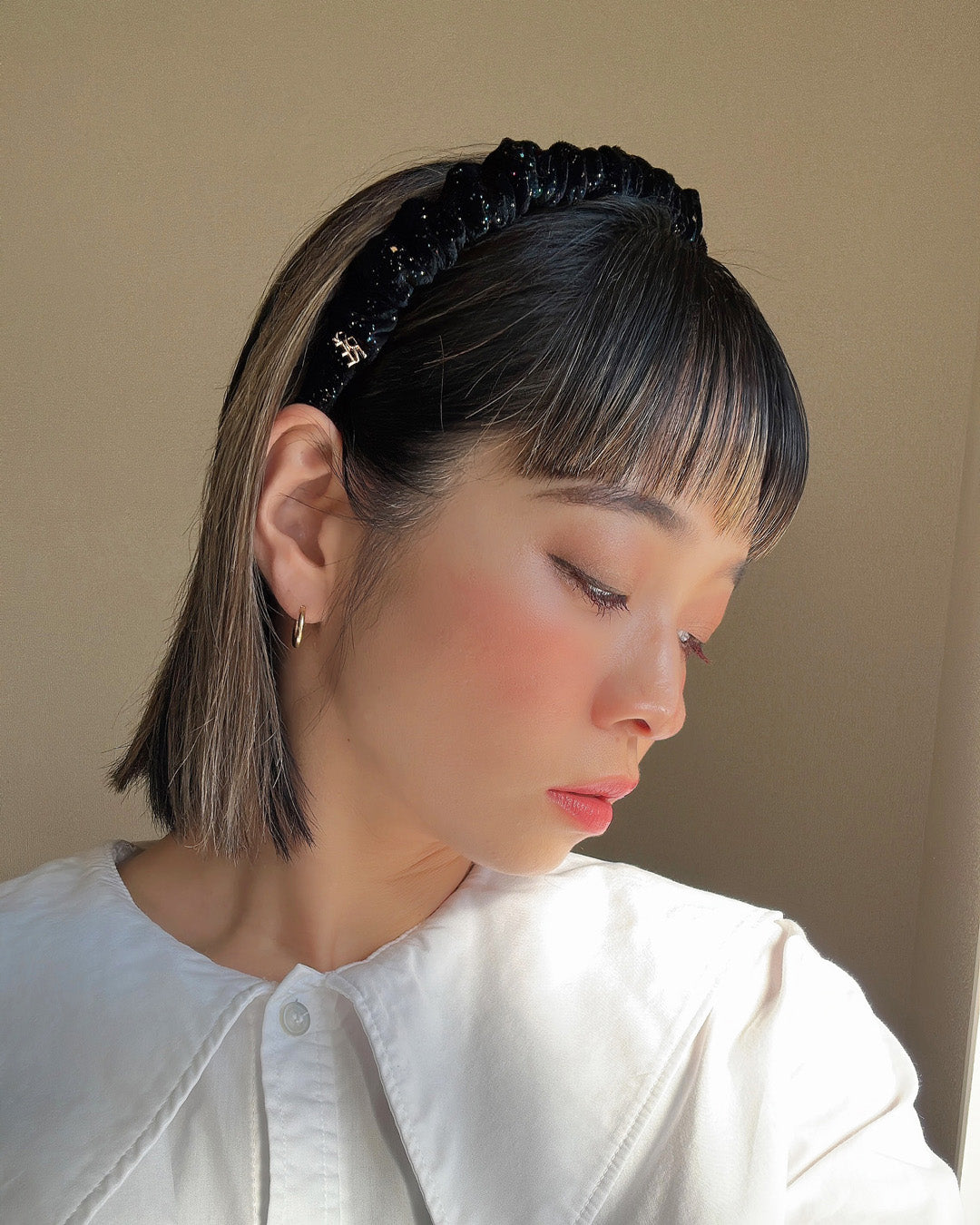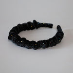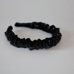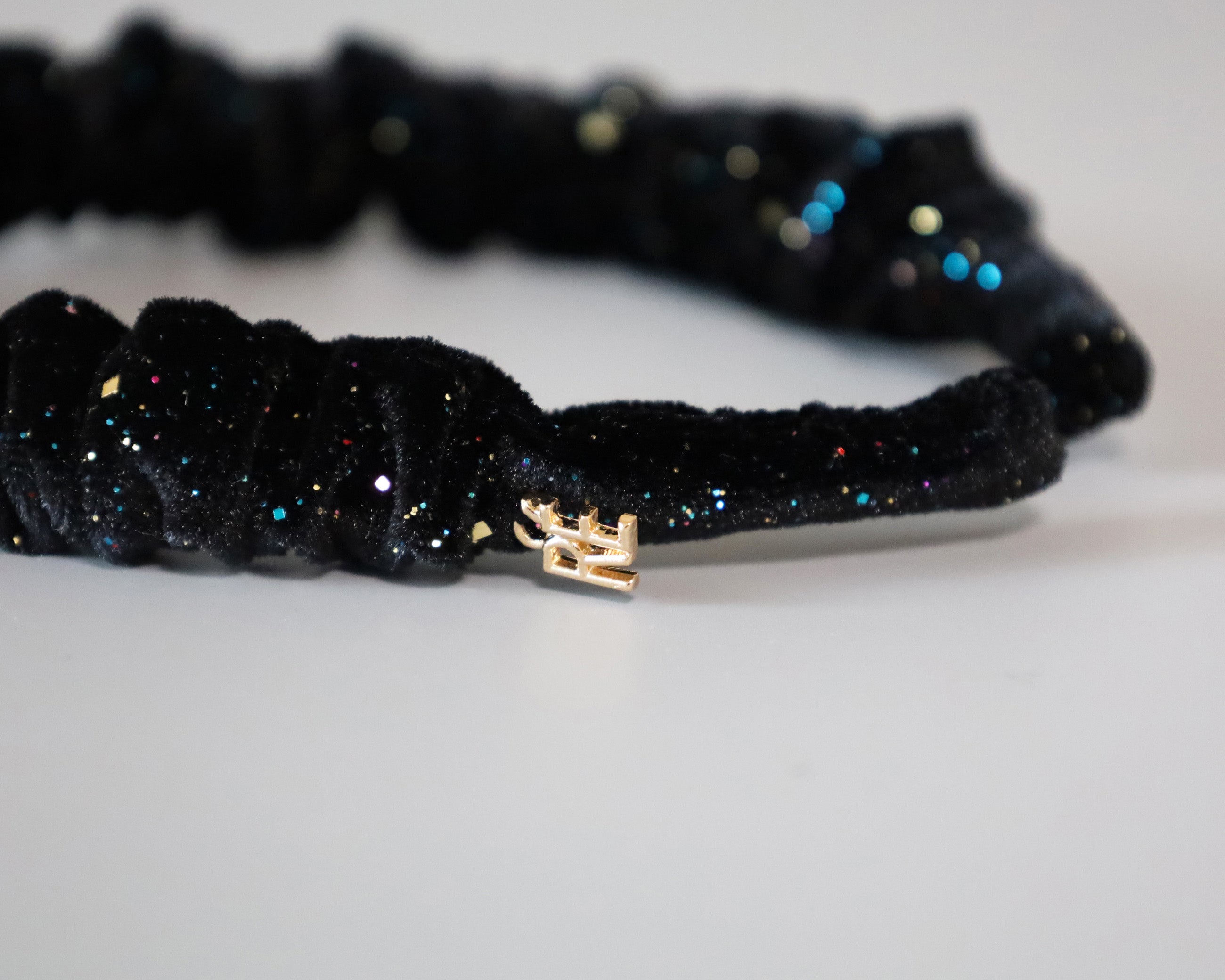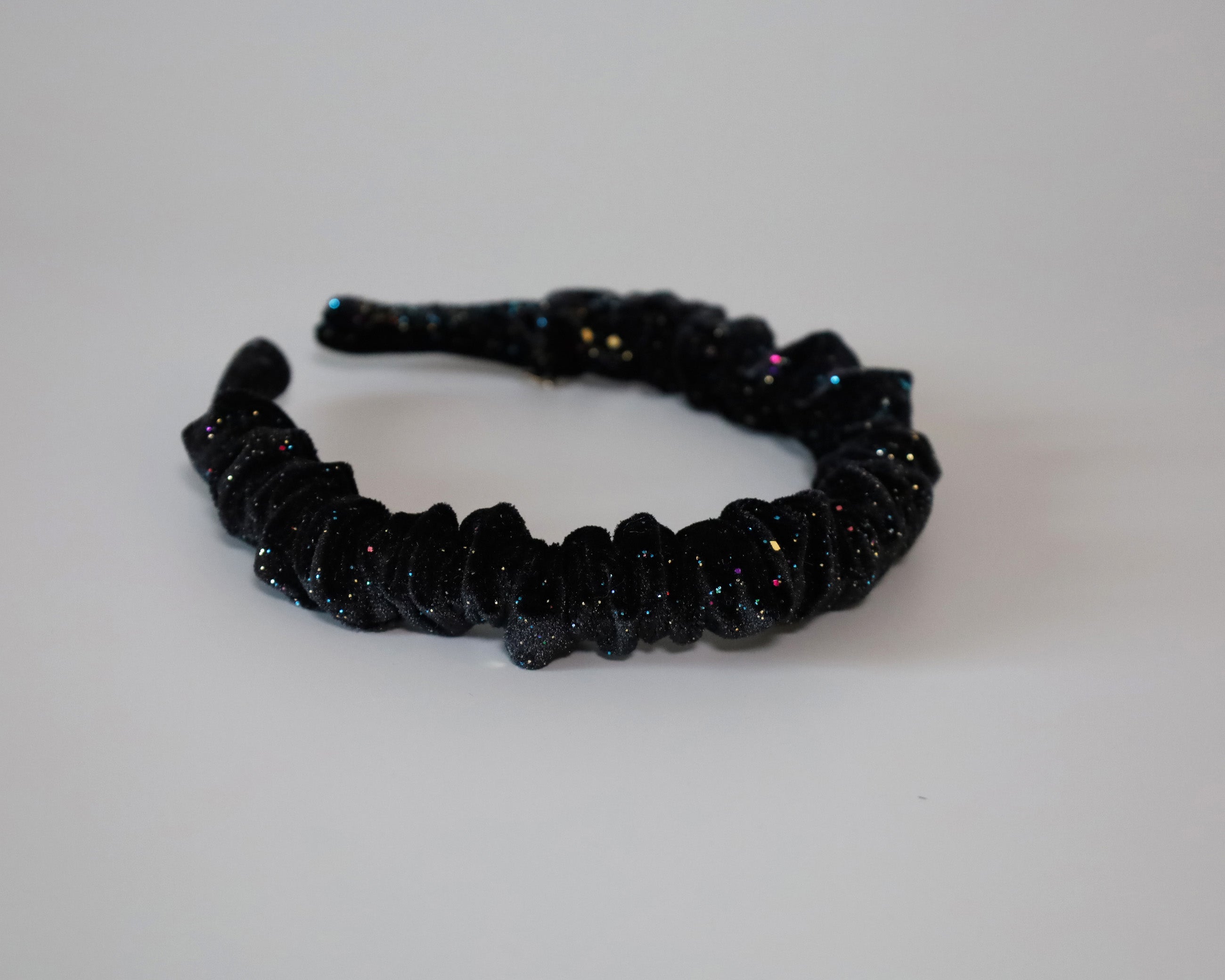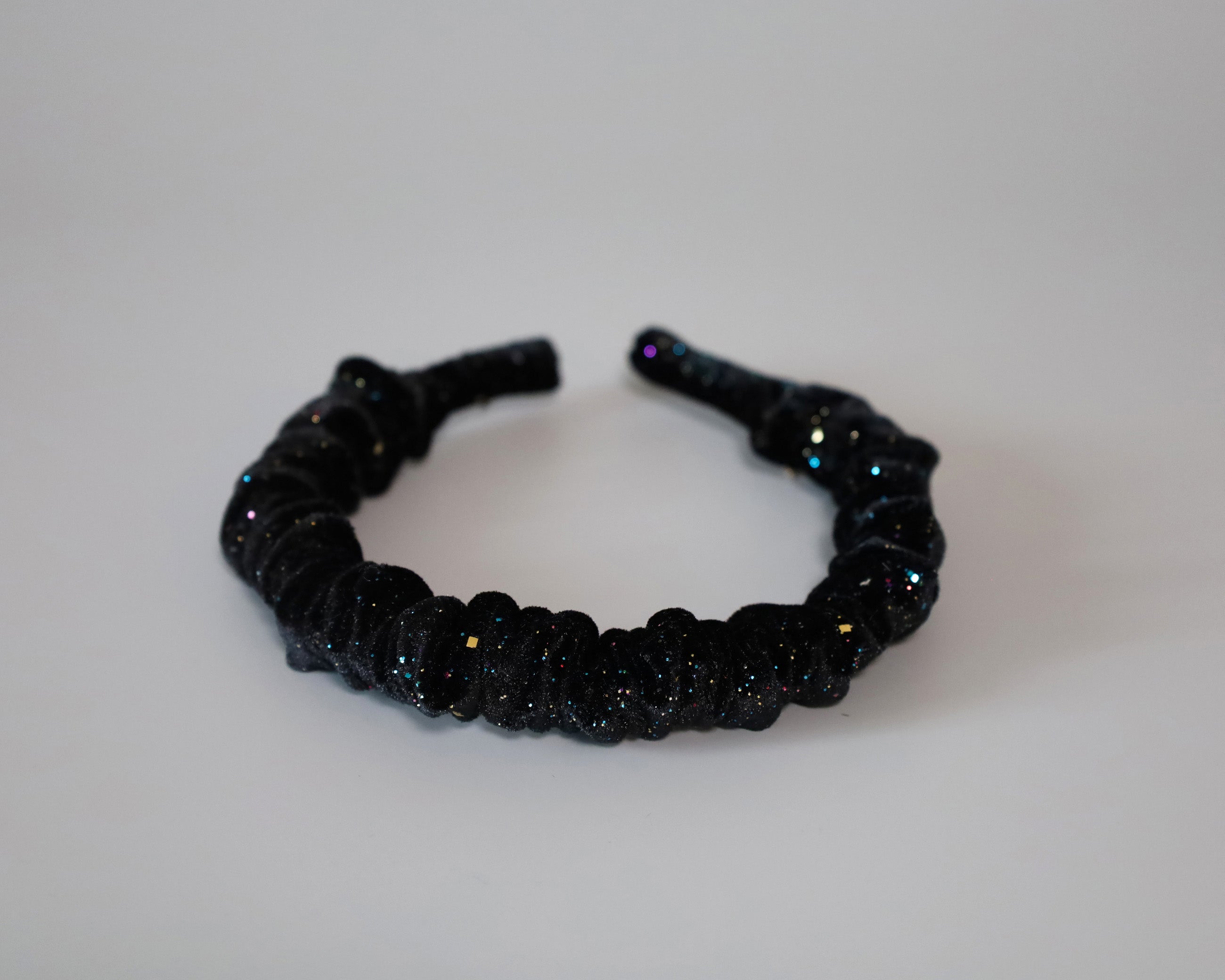 ブラックのベロア生地に繊細なラメを散りばめたロマンティックなカチューシャ。