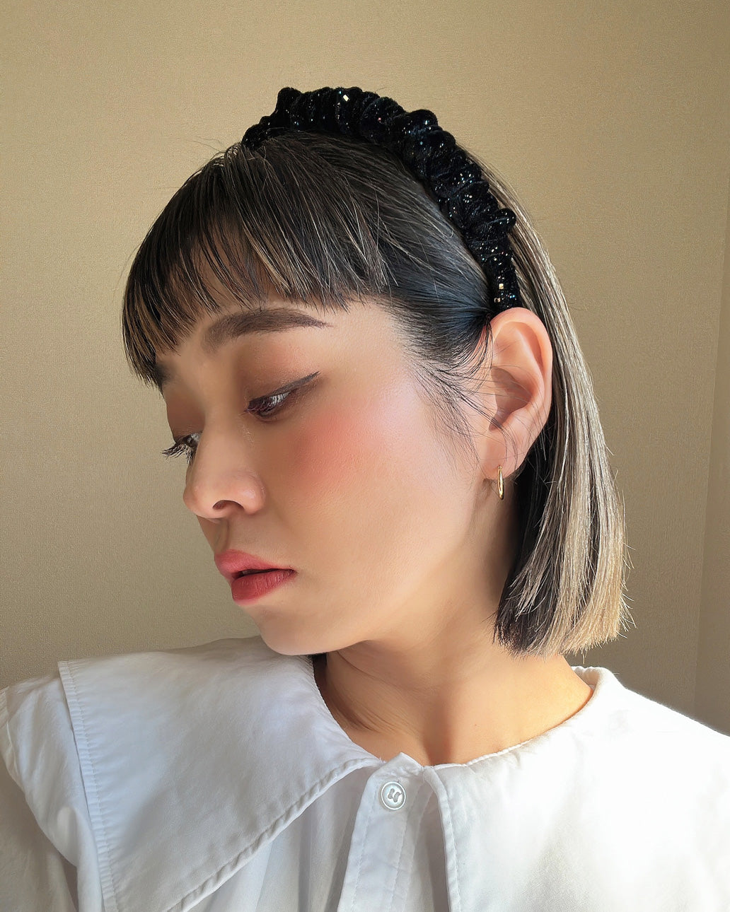 繊細なラメがカチューシャの立体感を引き立てる大人かわいいデザイン。