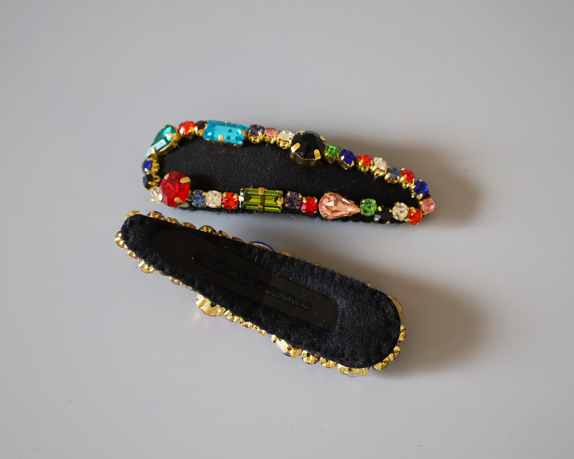 高品質なブラックシルクにビジューが映えるヘアピン。