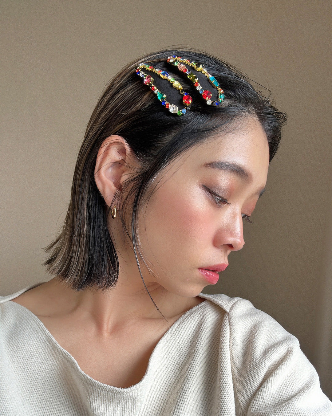 こめかみあたりにつければキュートに、耳後ろあたりにつければエレガントに。