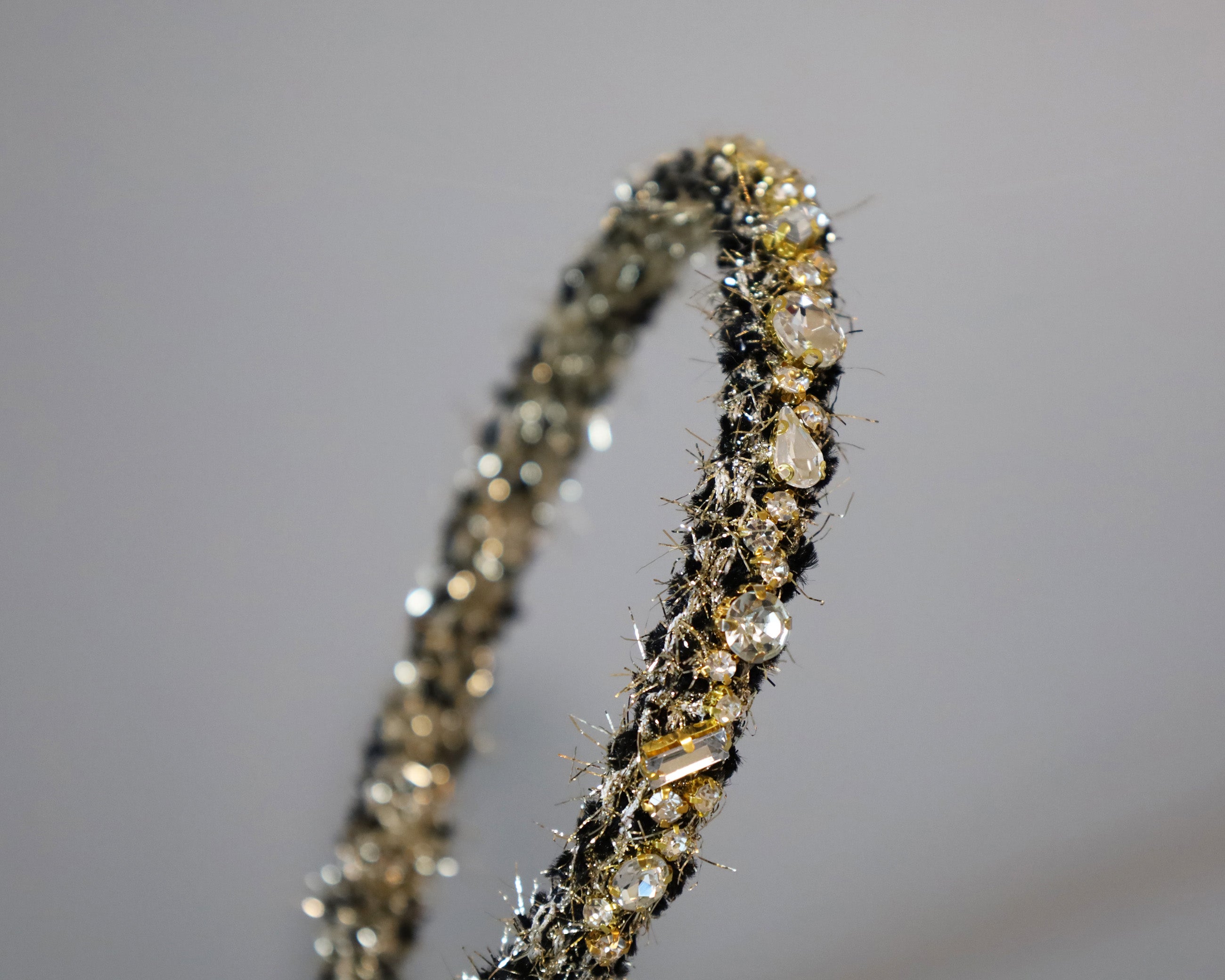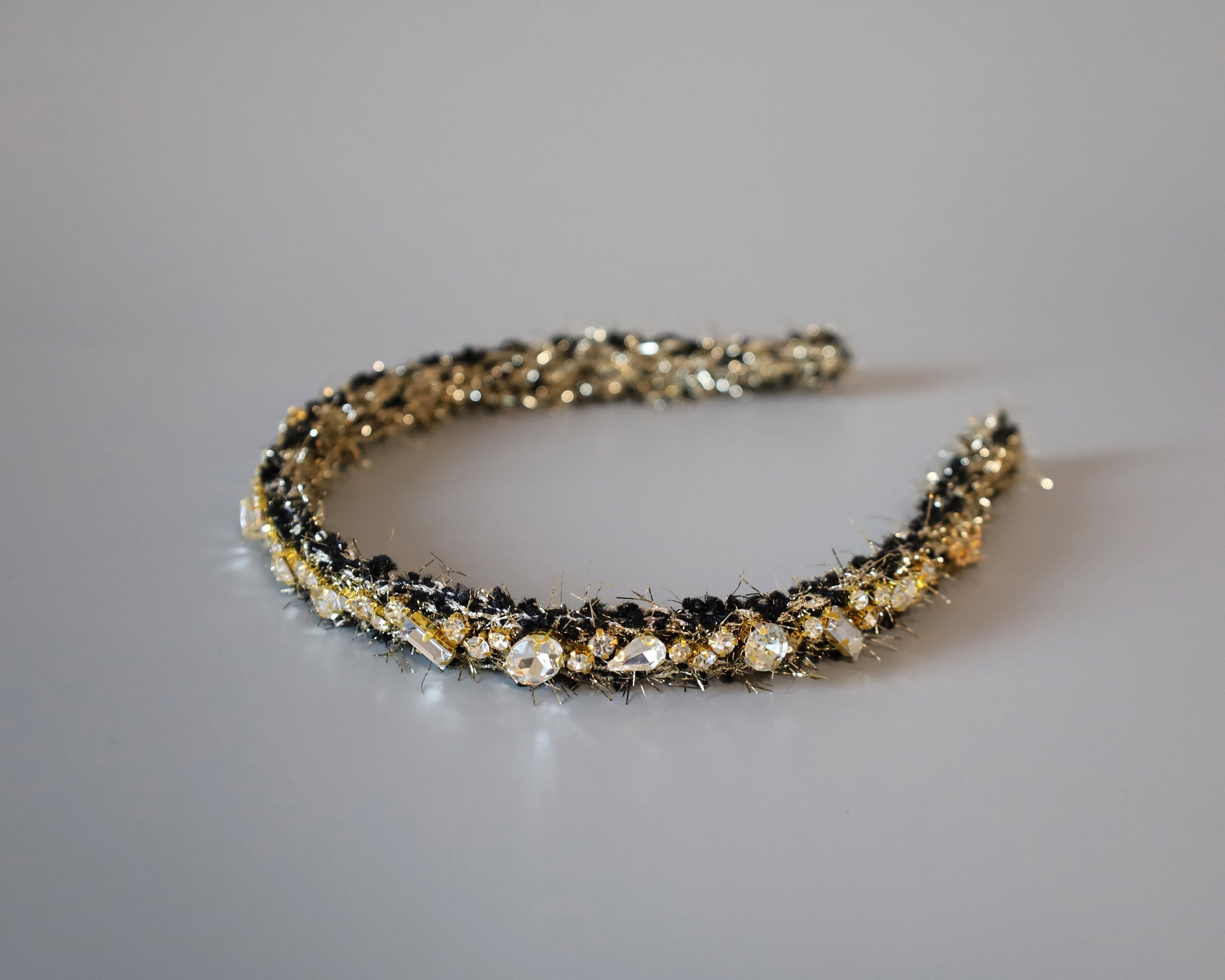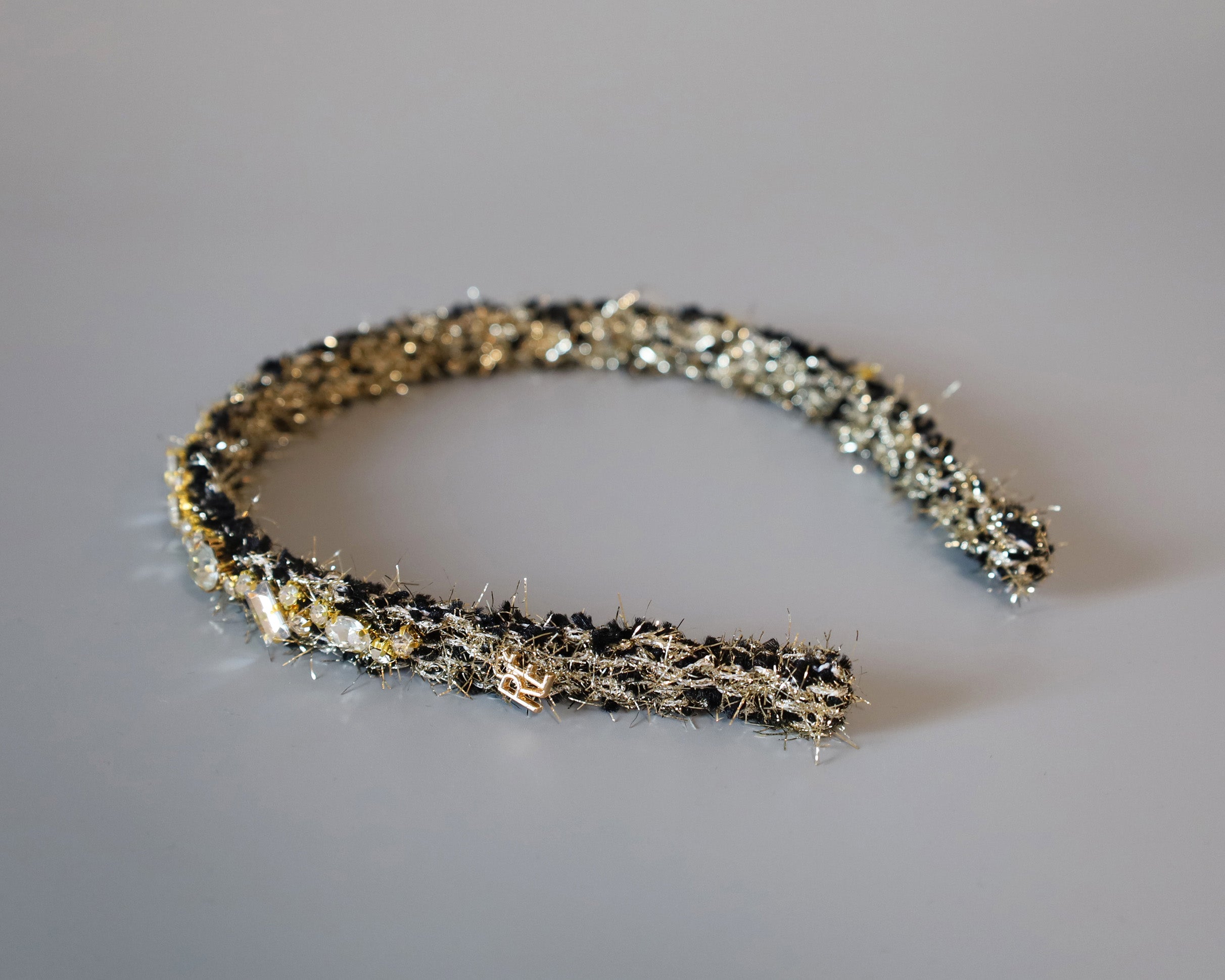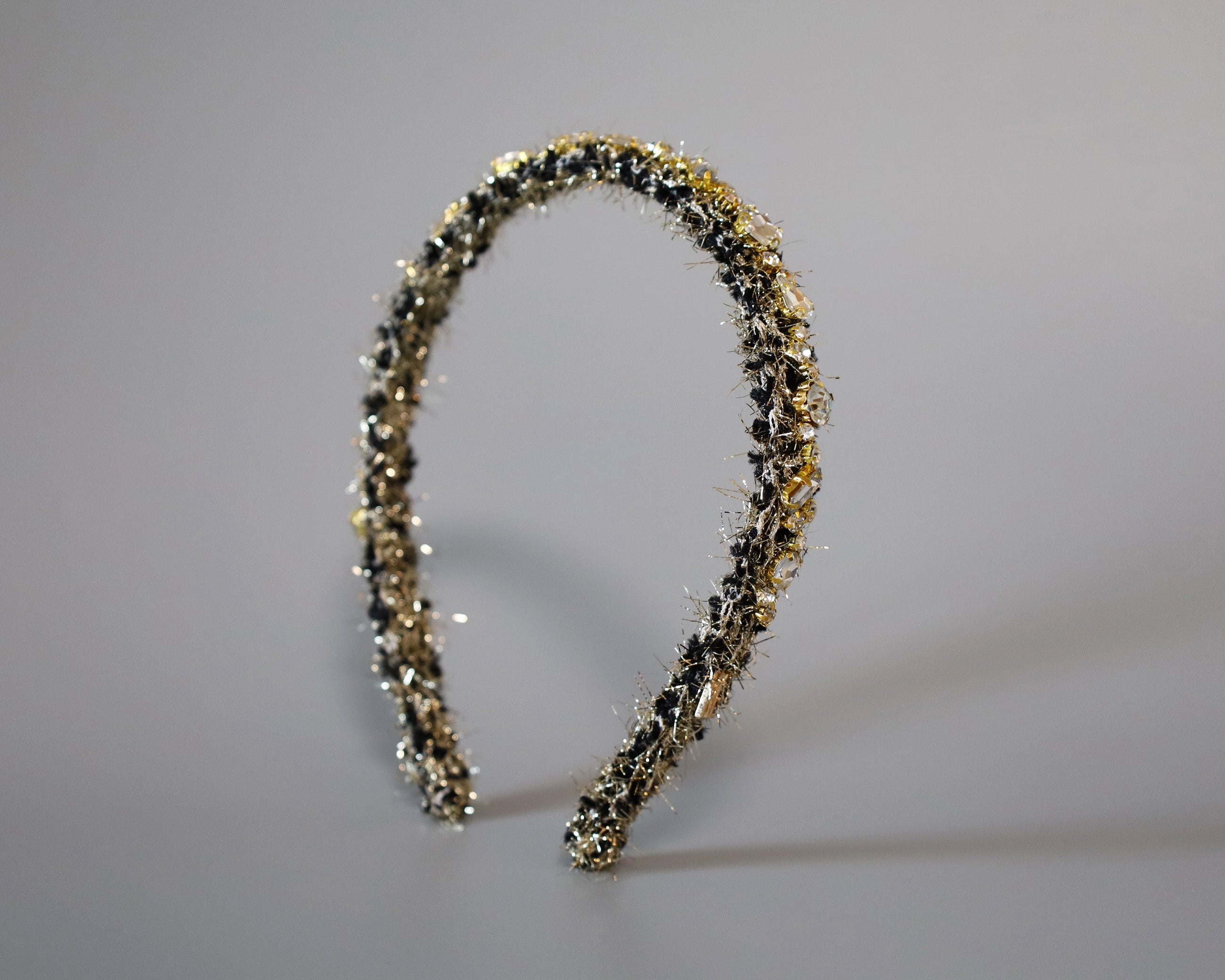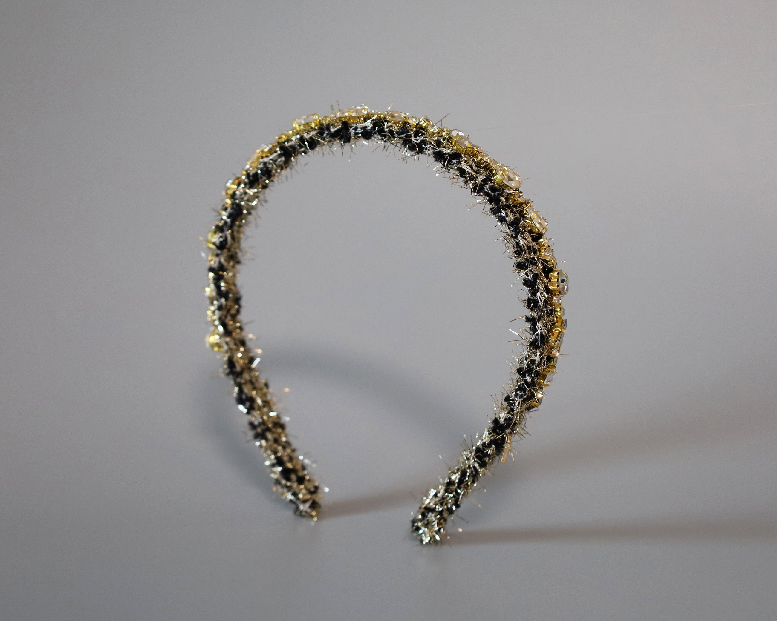 Black Tweed Gold Headband