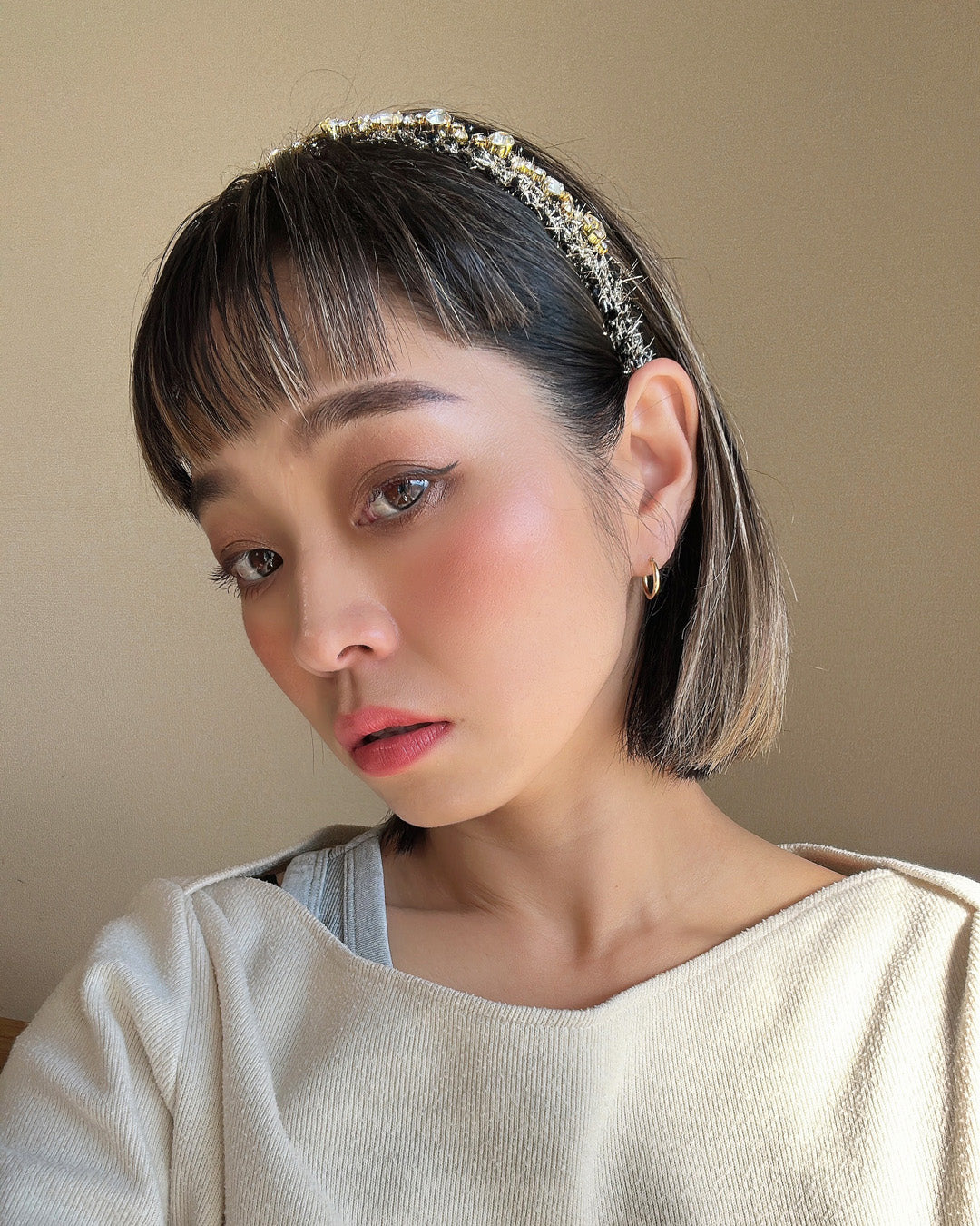 ちらちら揺れるゴールドから顔をのぞかせるクリアビジューで、かわいいだけじゃないラグジュアリーな雰囲気をプラス。