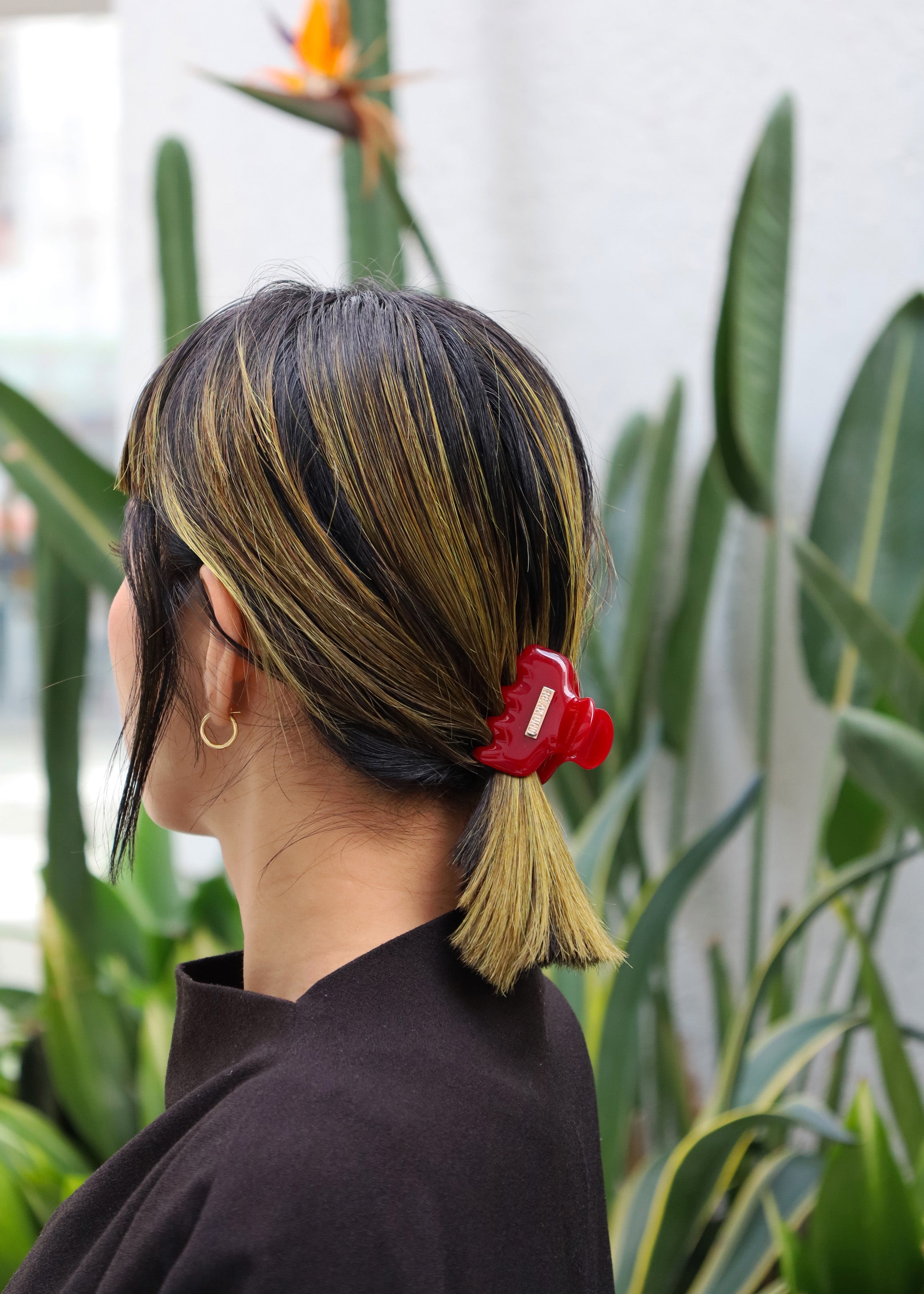ビビッドな赤色にときめきが止まらないヘアクリップ。
