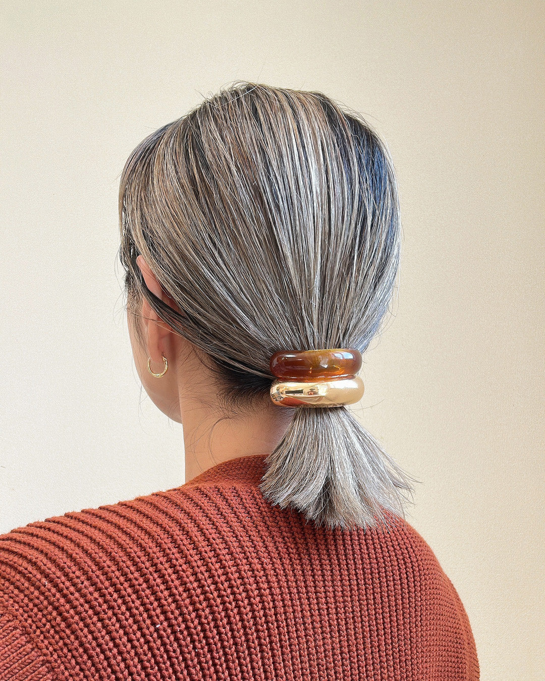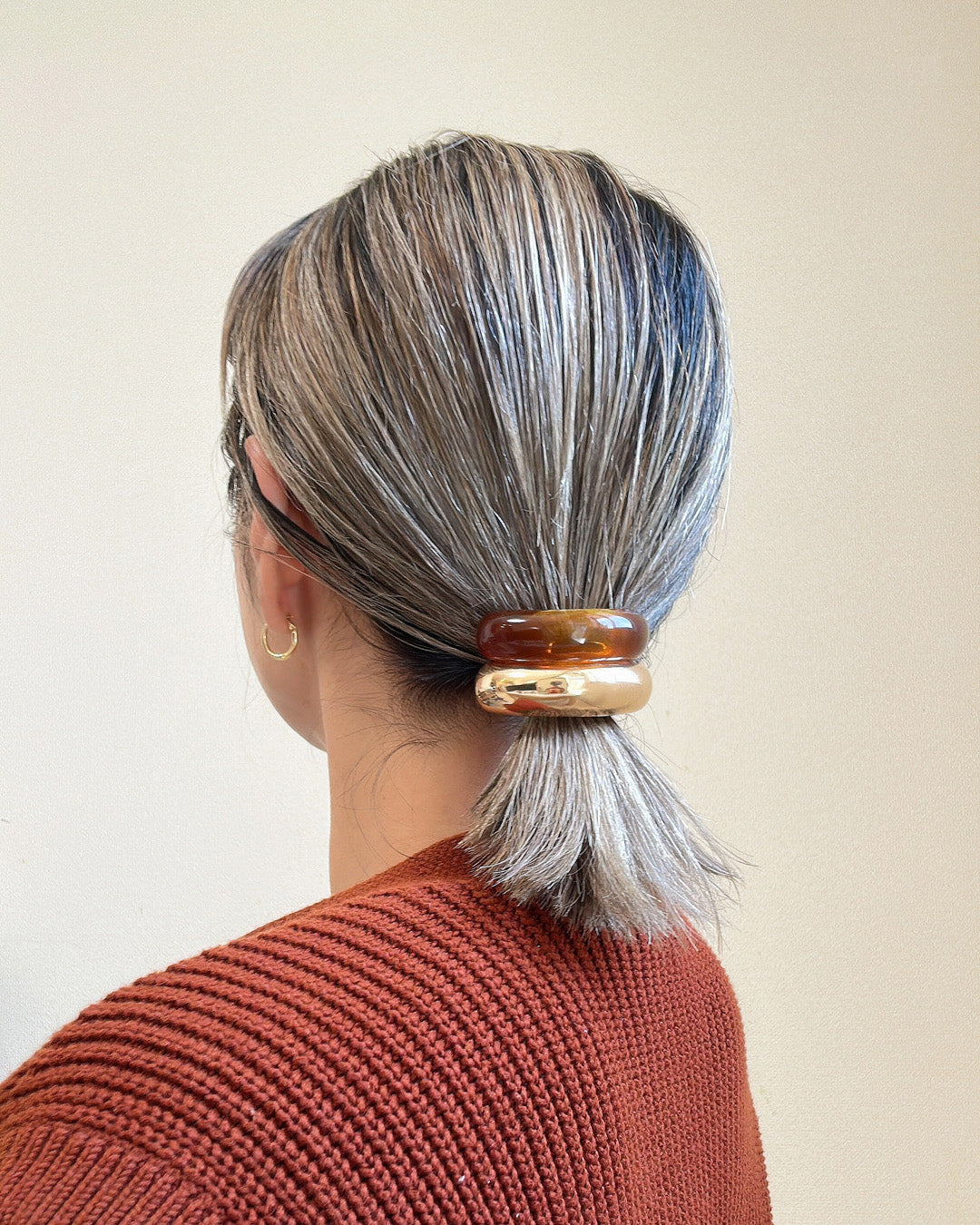 カーブのついたパーツが、ポニーテールの根元部分をしっかりカバー。