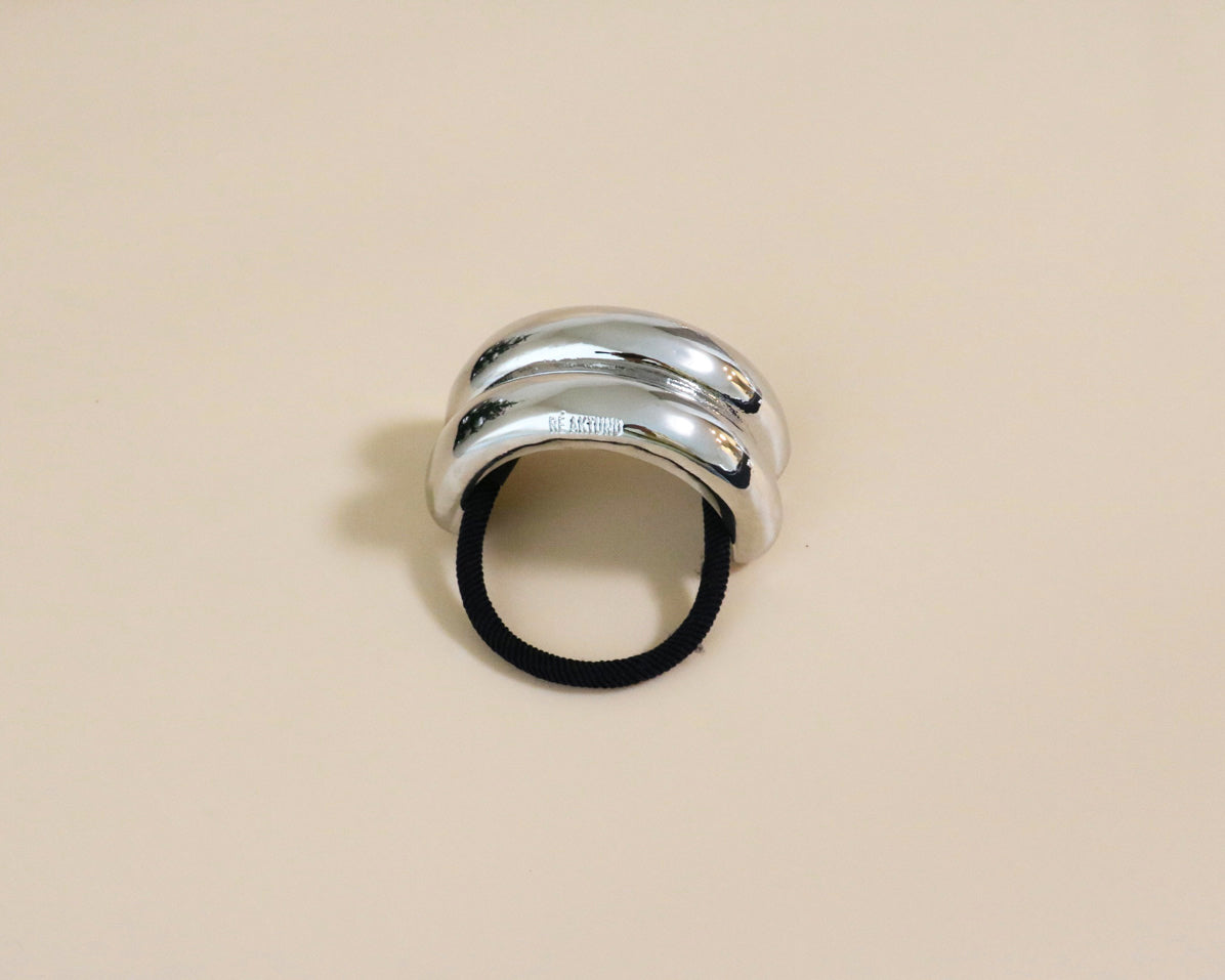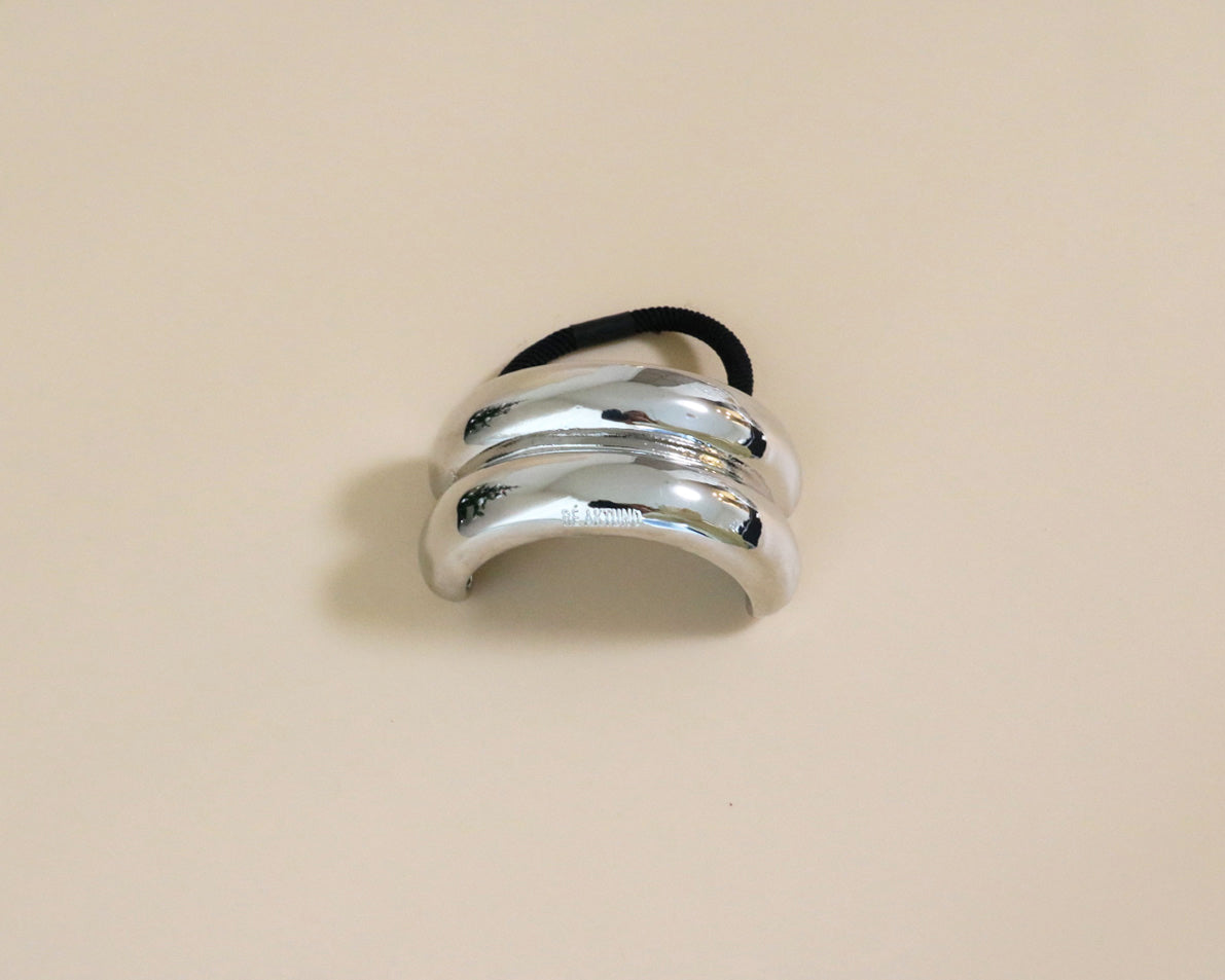 シンプルなポニーテールを格上げするメタルパーツのヘアゴム。