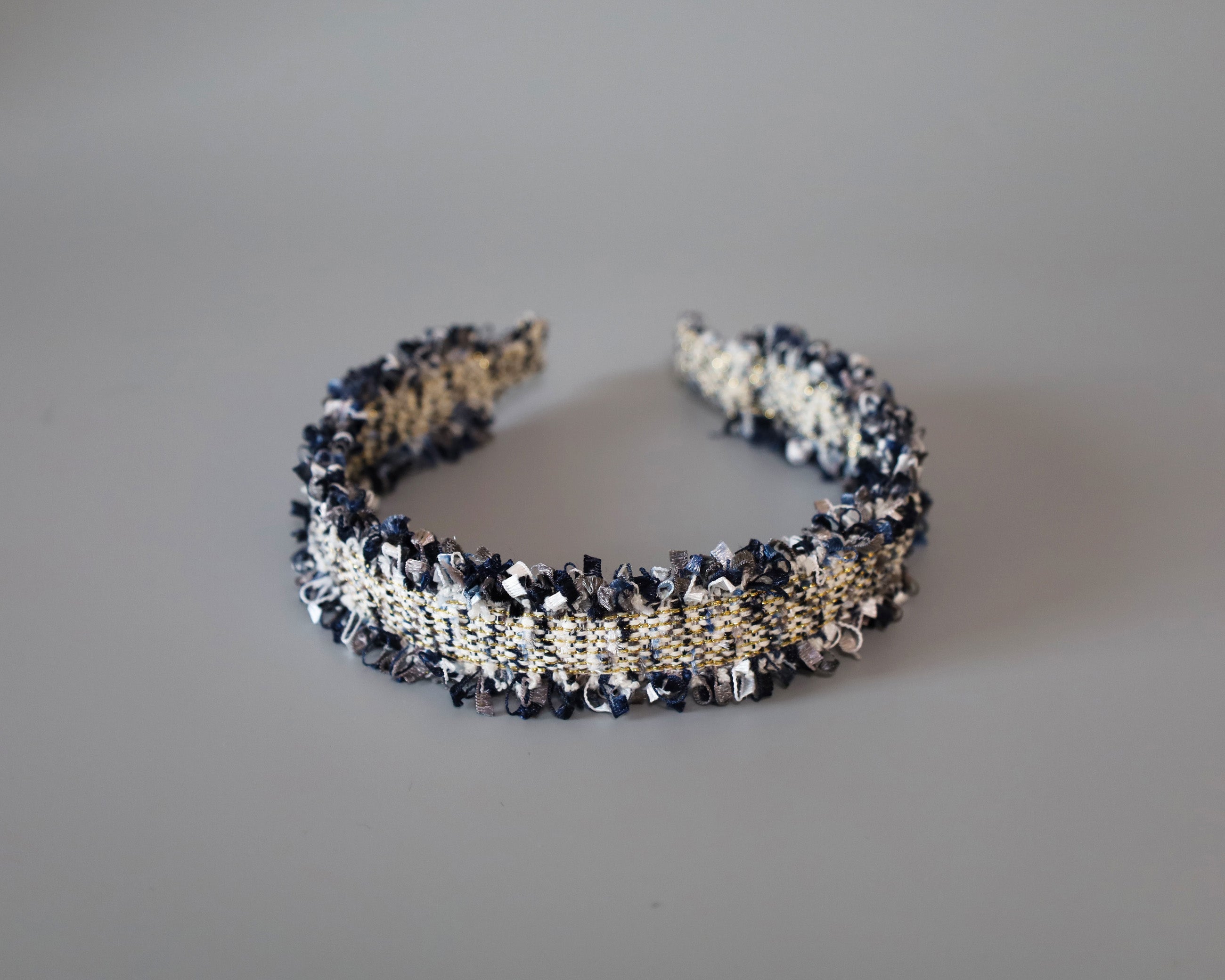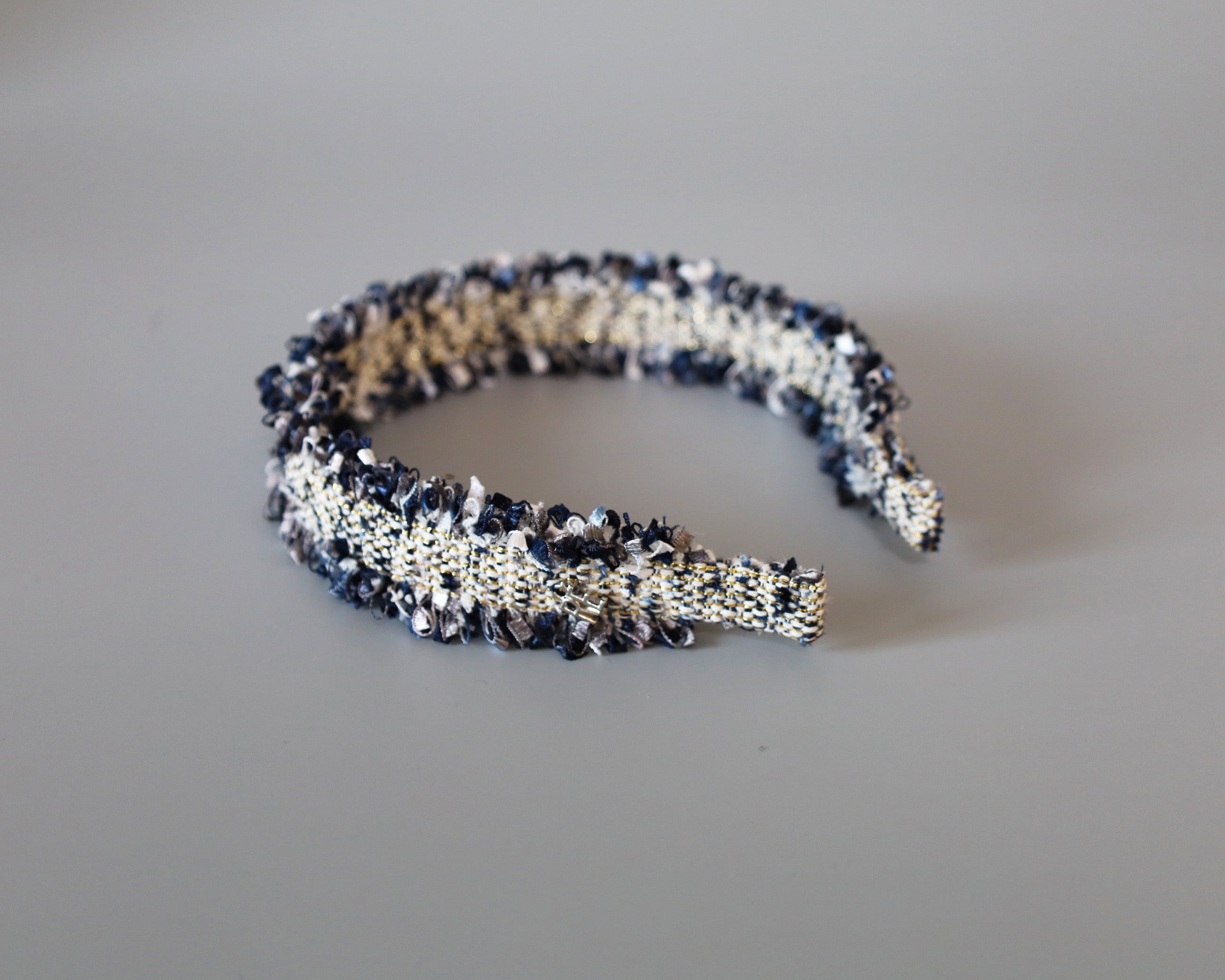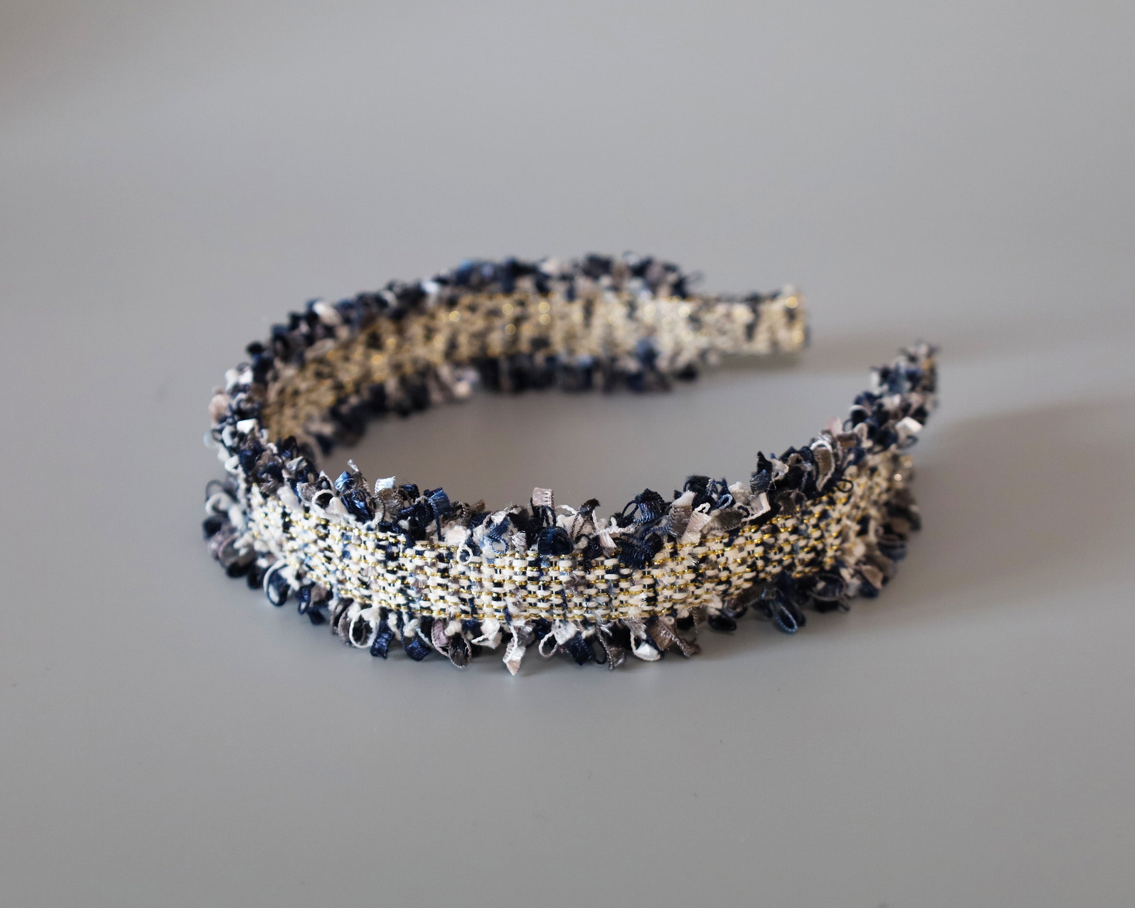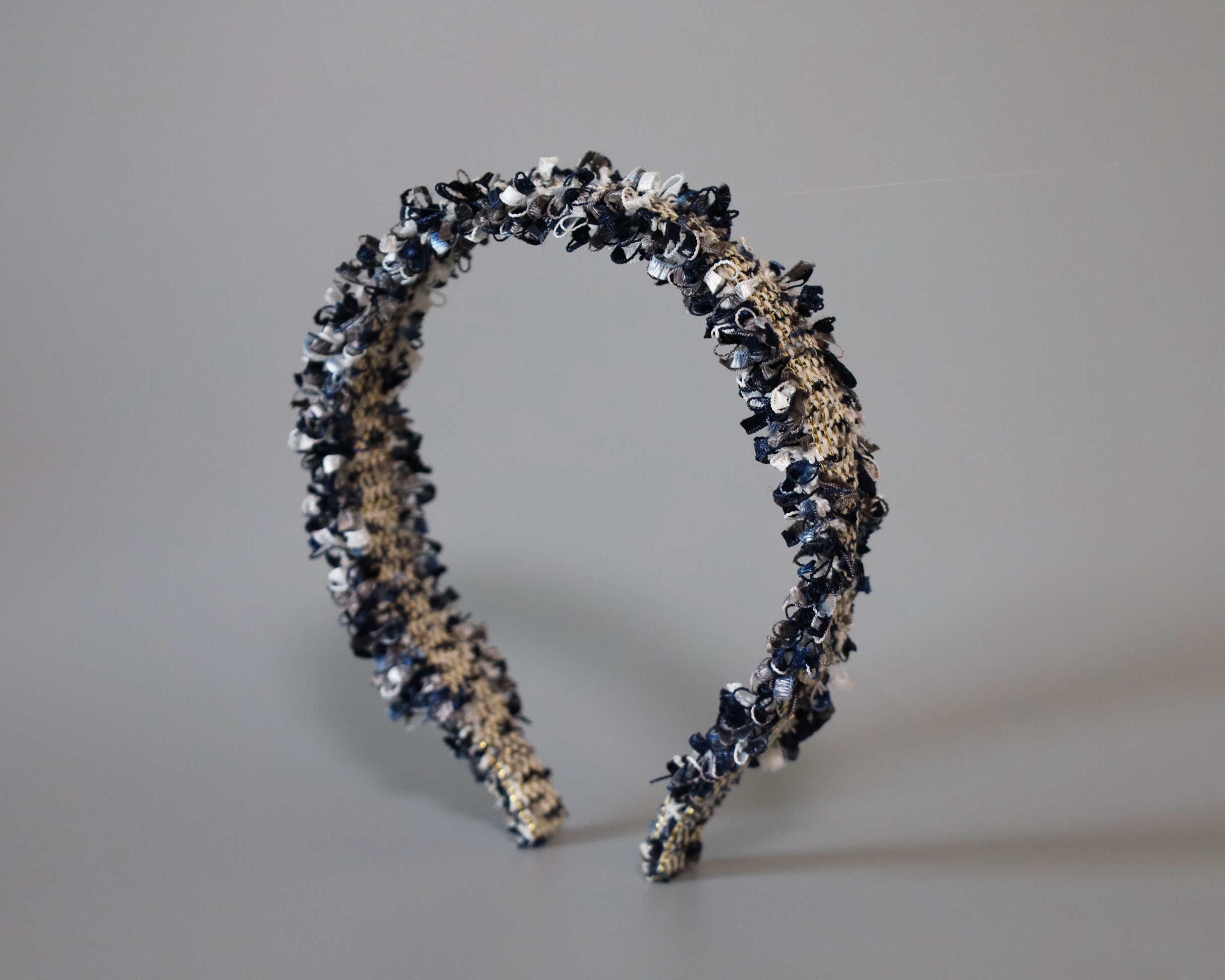 カチューシャのアーチ部分を彩るループリボンがキュートなツイードカチューシャ。