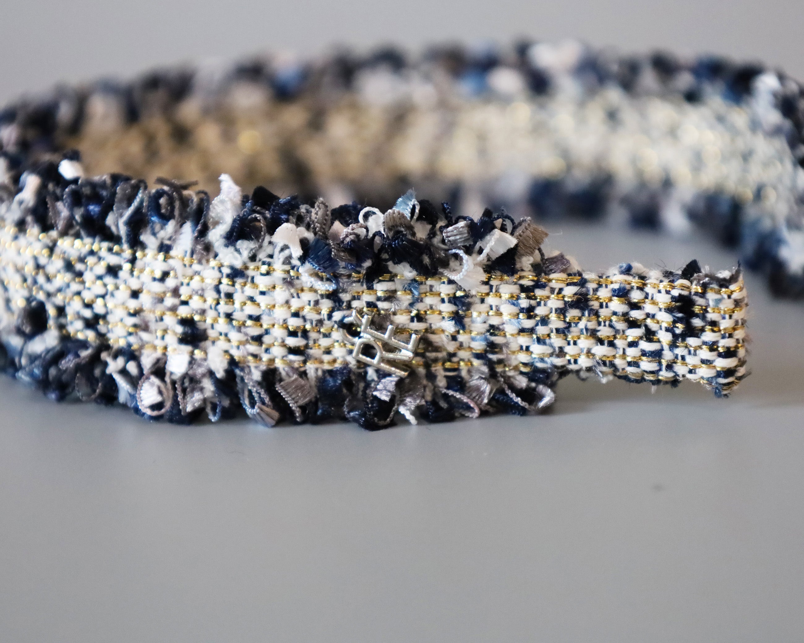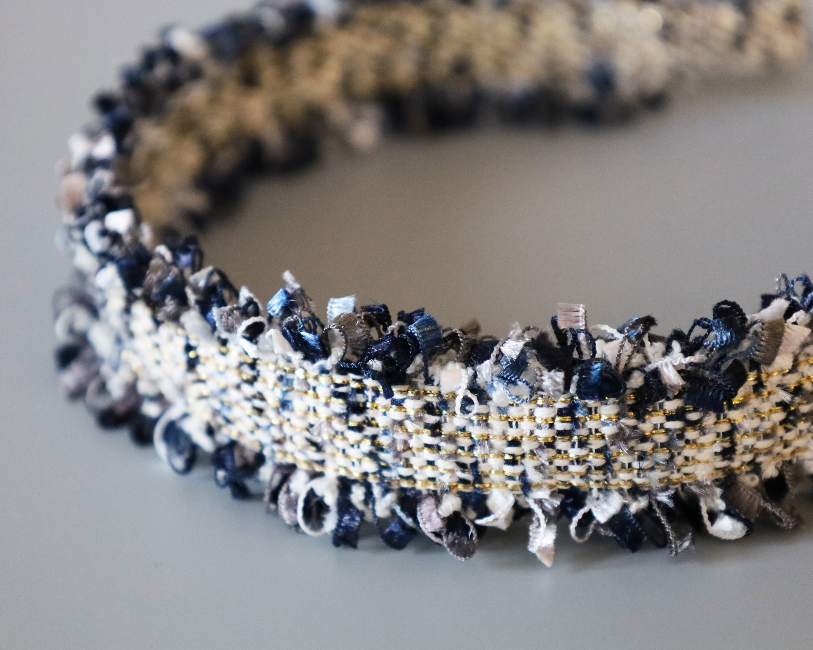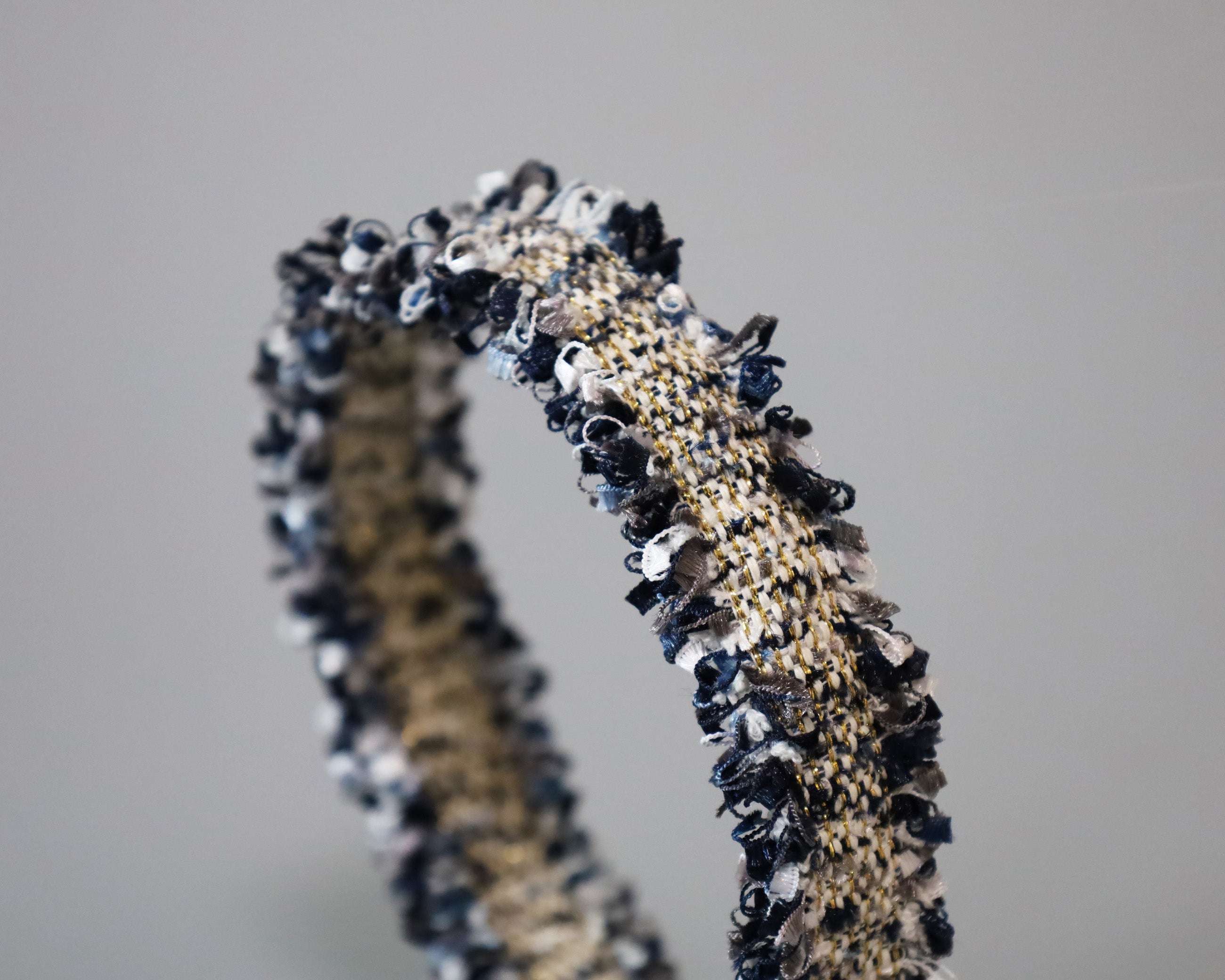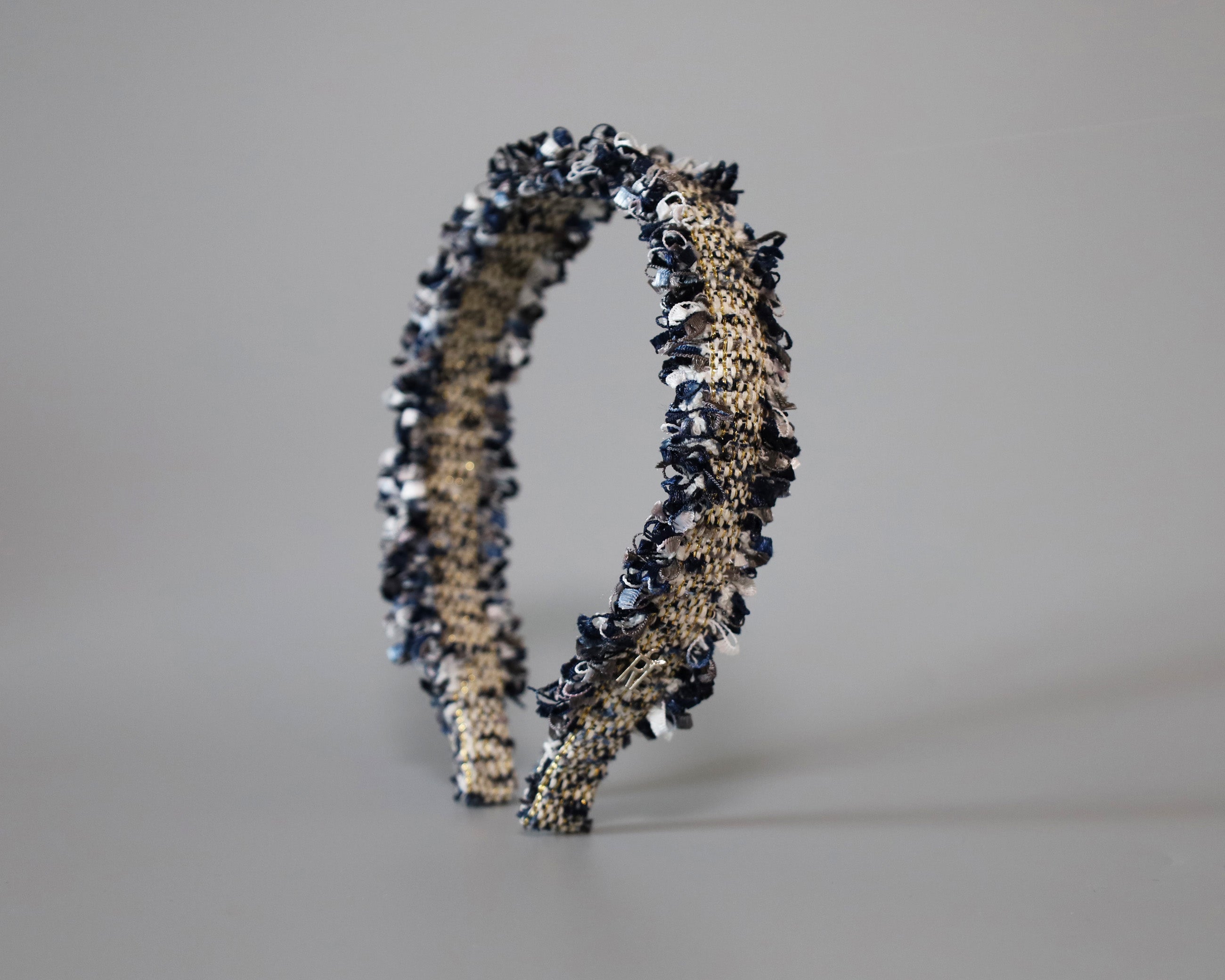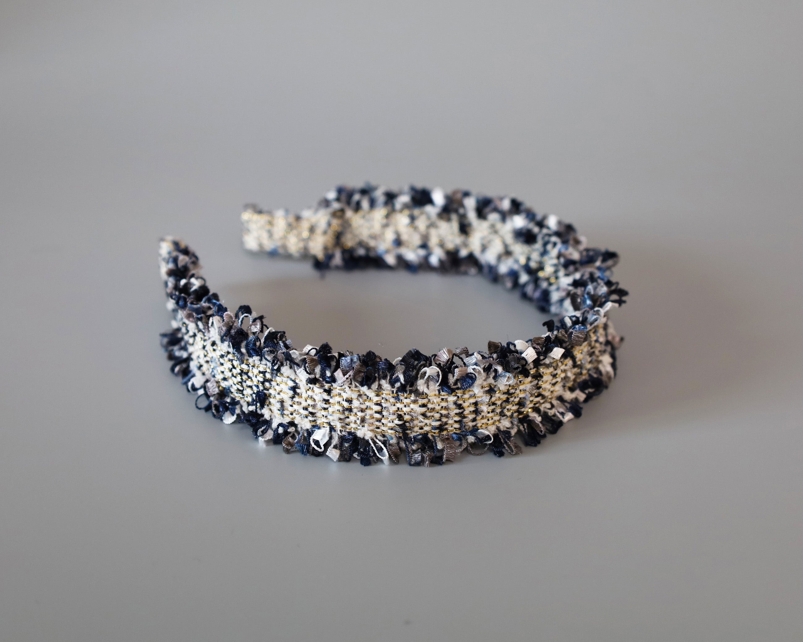 カチューシャのアーチ部分を彩るループリボンがキュートなツイードカチューシャ。