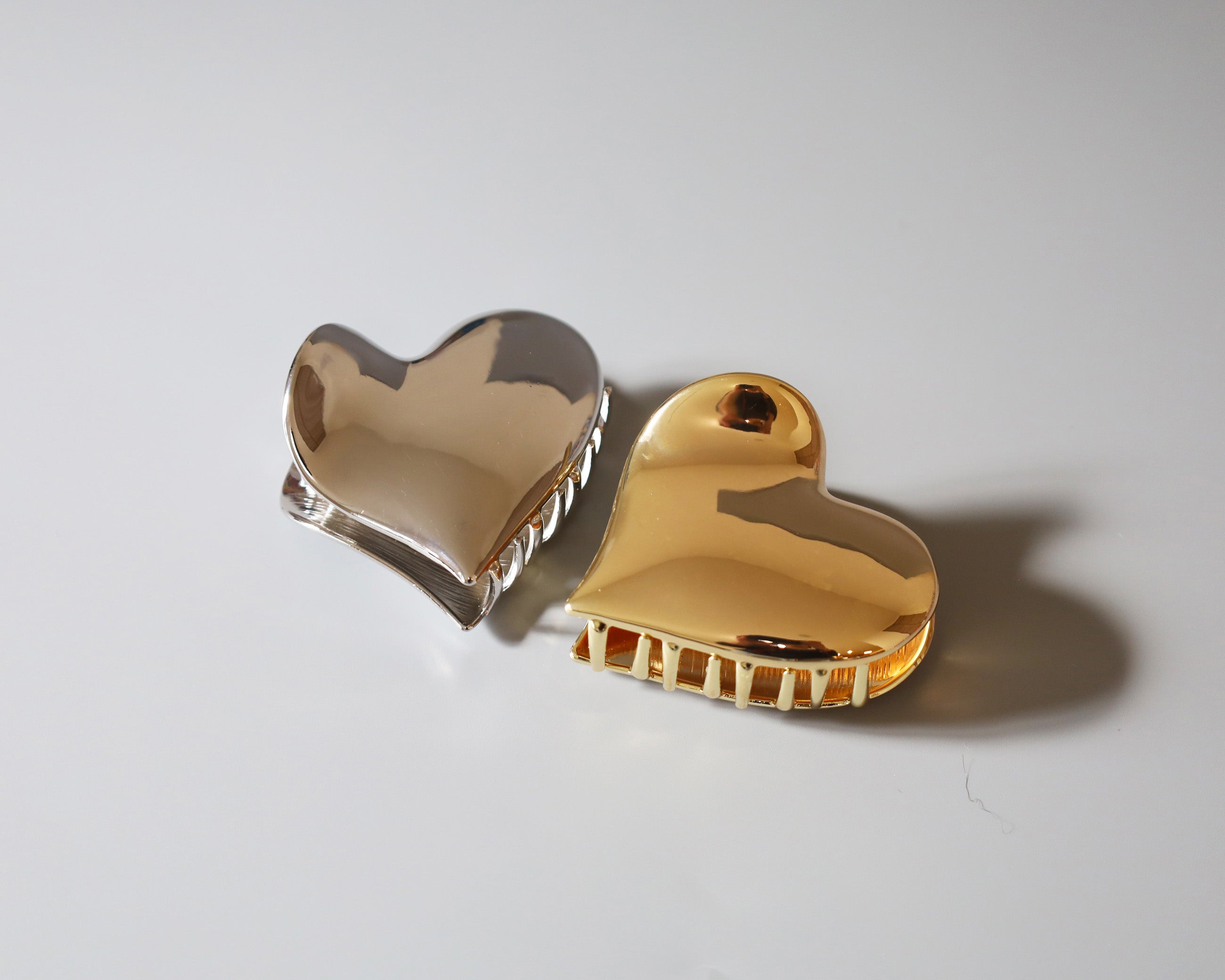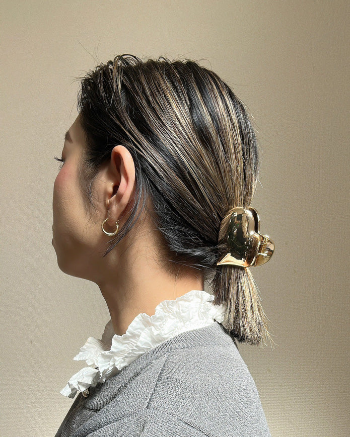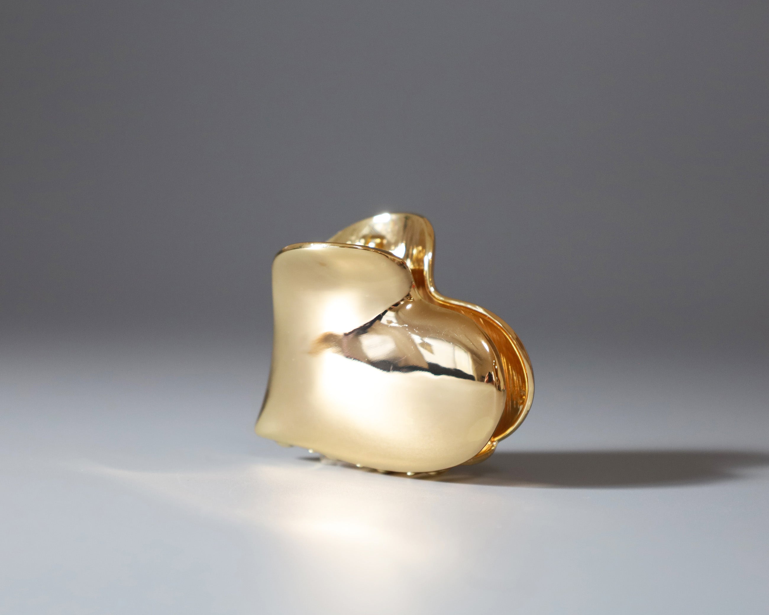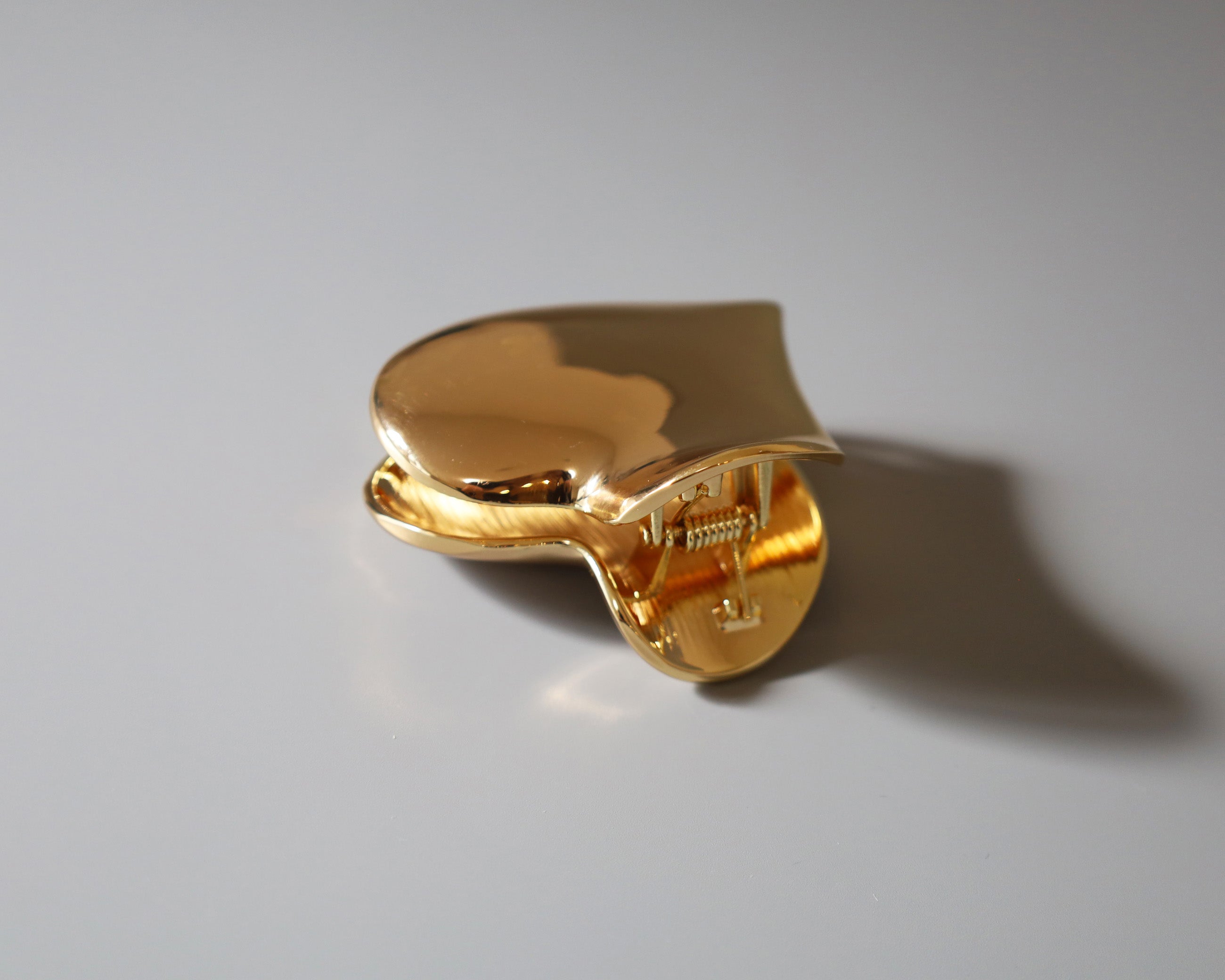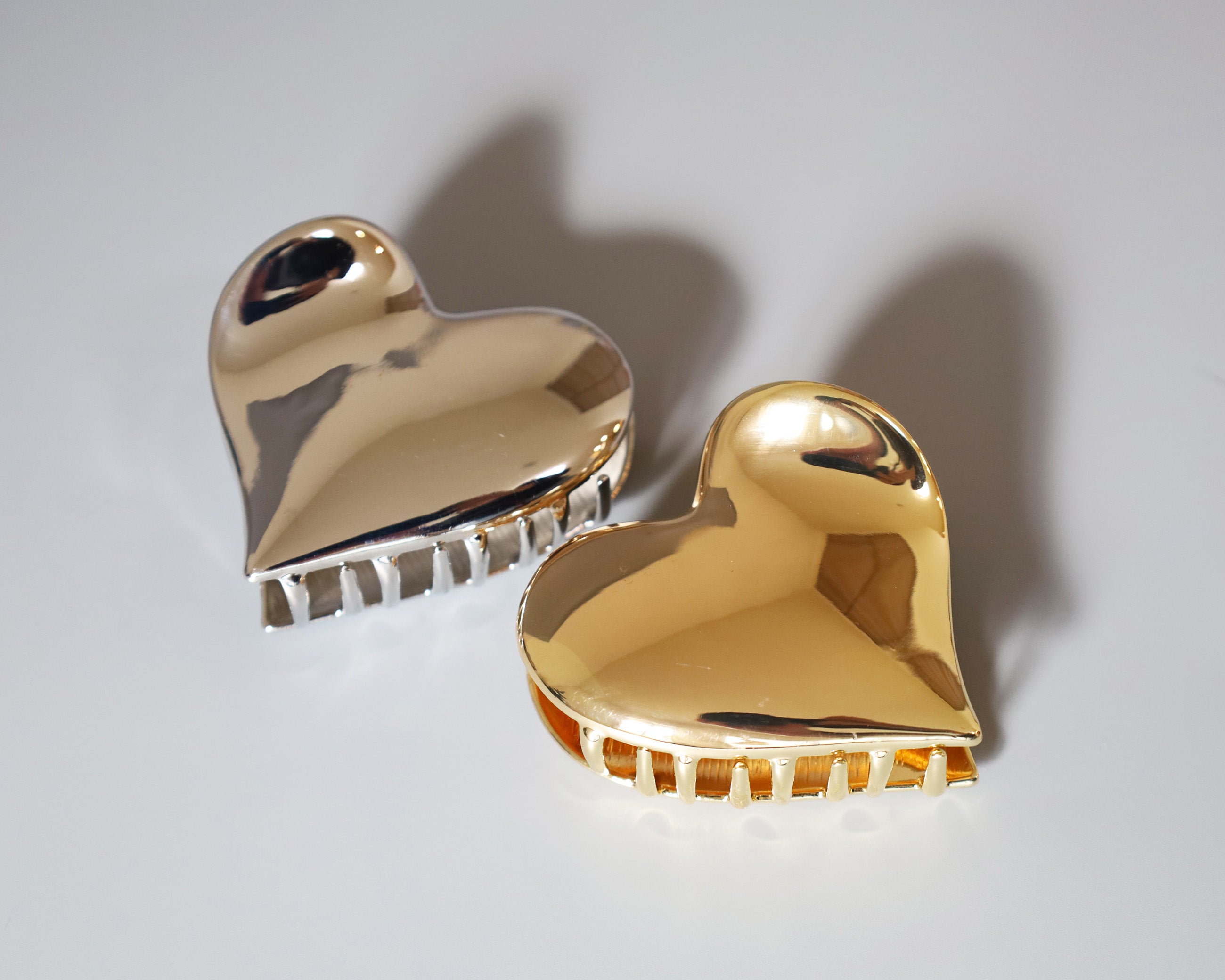 メタリックゴールドのつややかさがハイカジュアルなハートのヘアクリップ。
