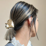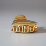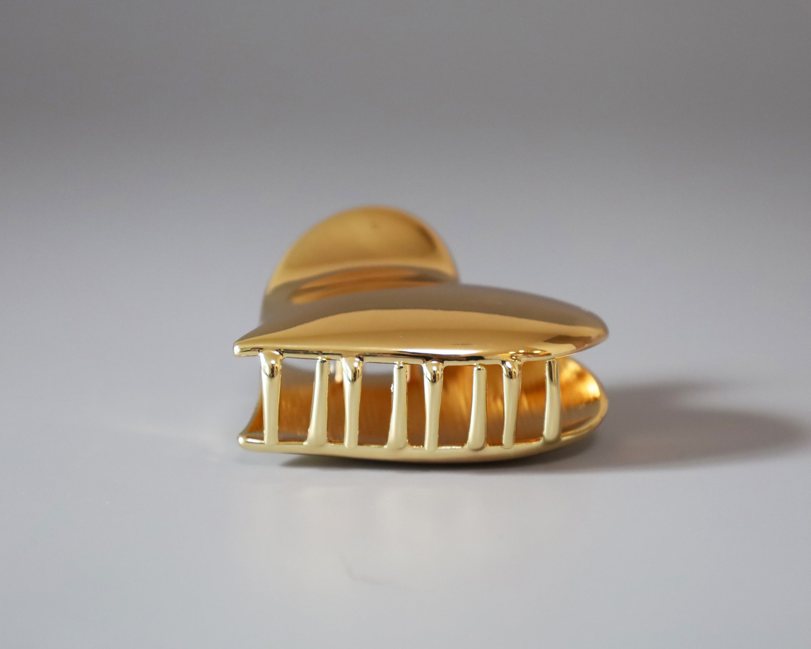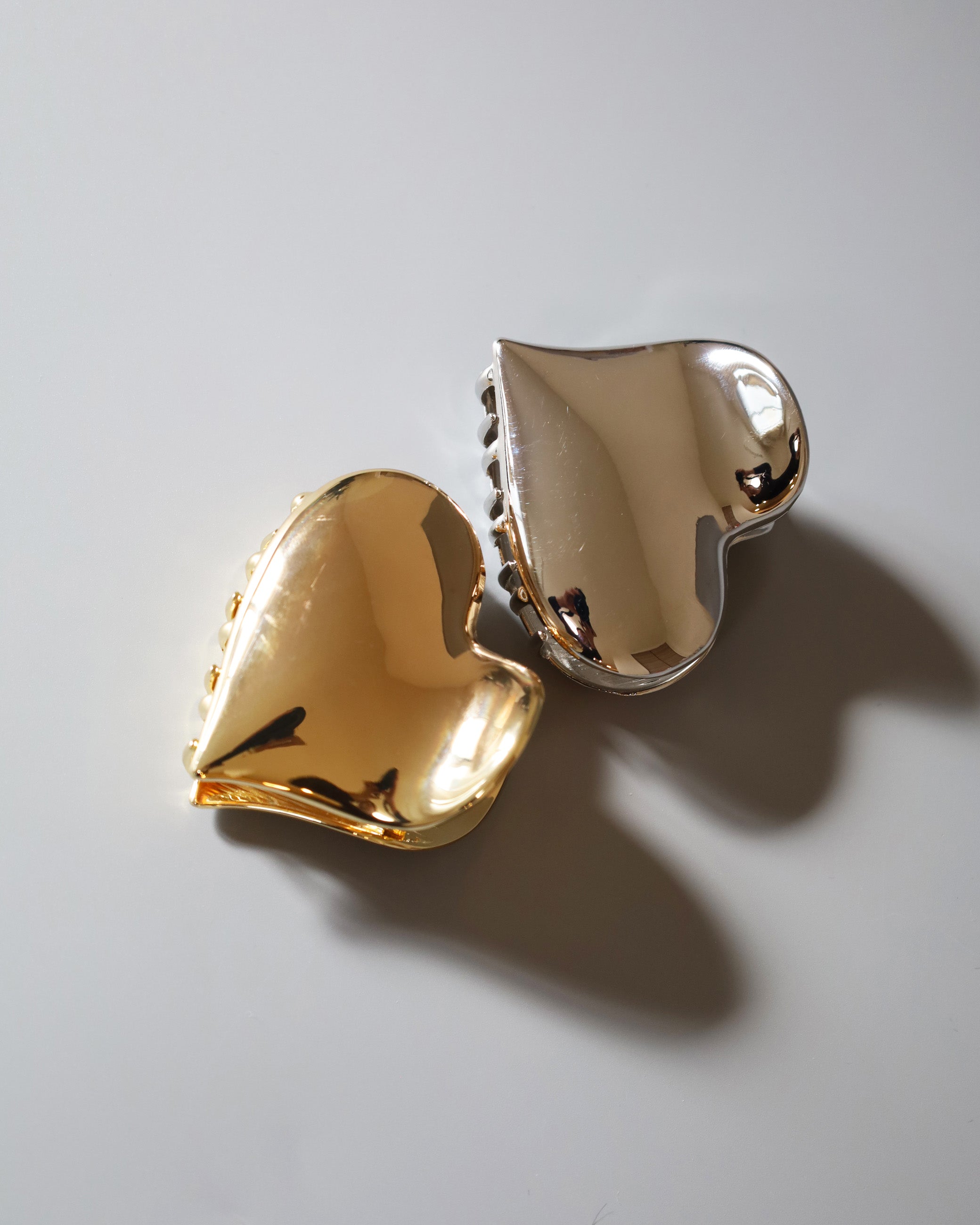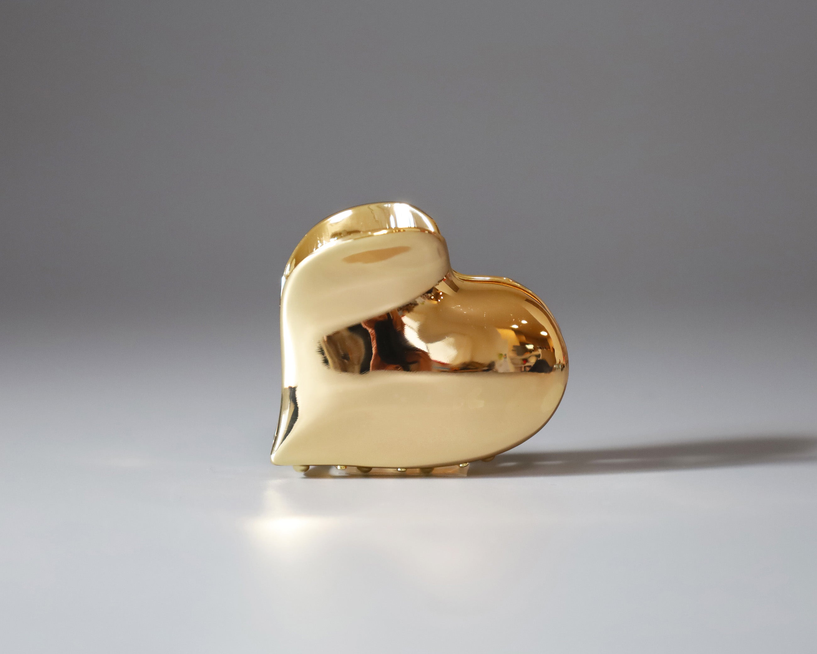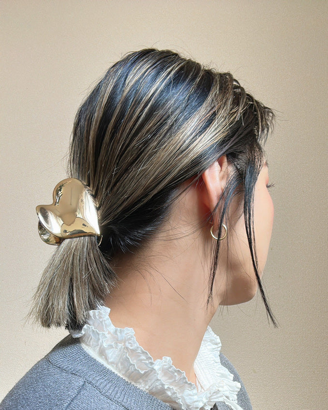 メタリックゴールドのつややかさがハイカジュアルなハートのヘアクリップ。