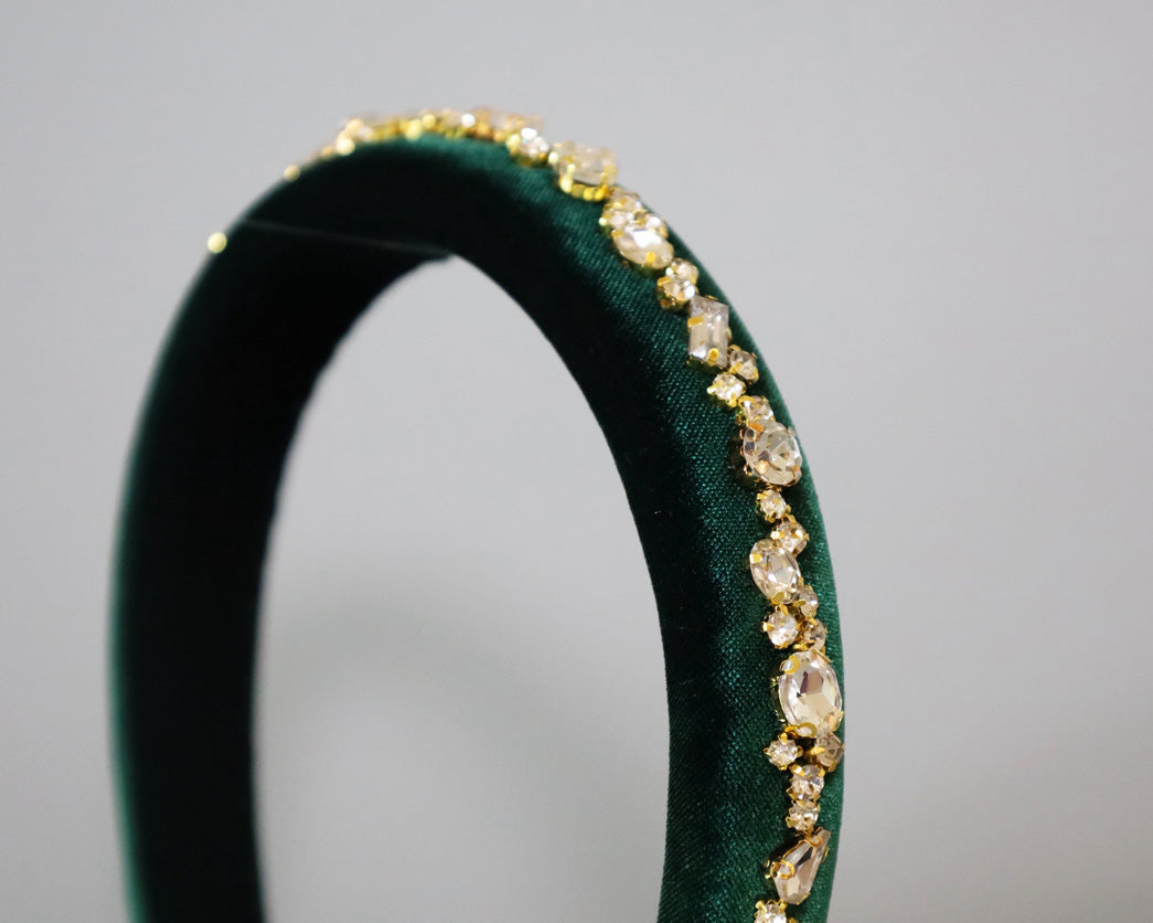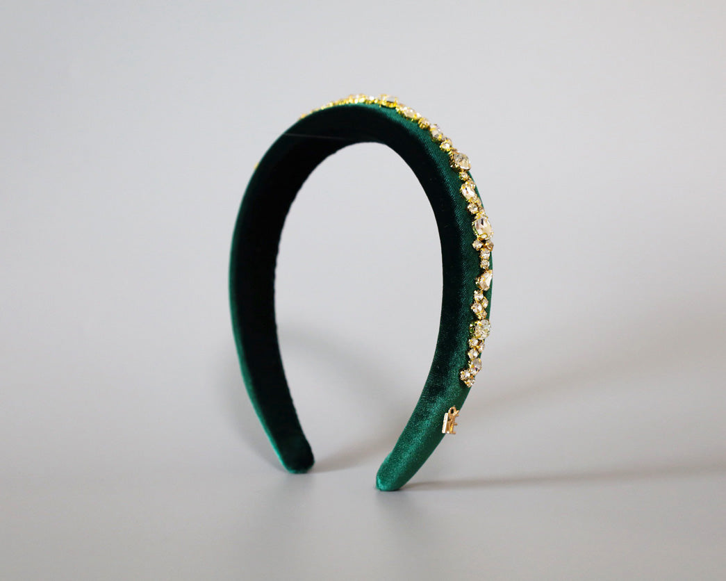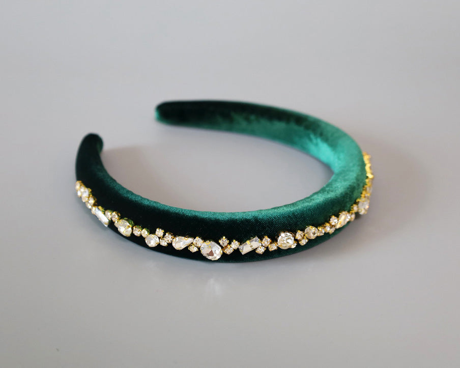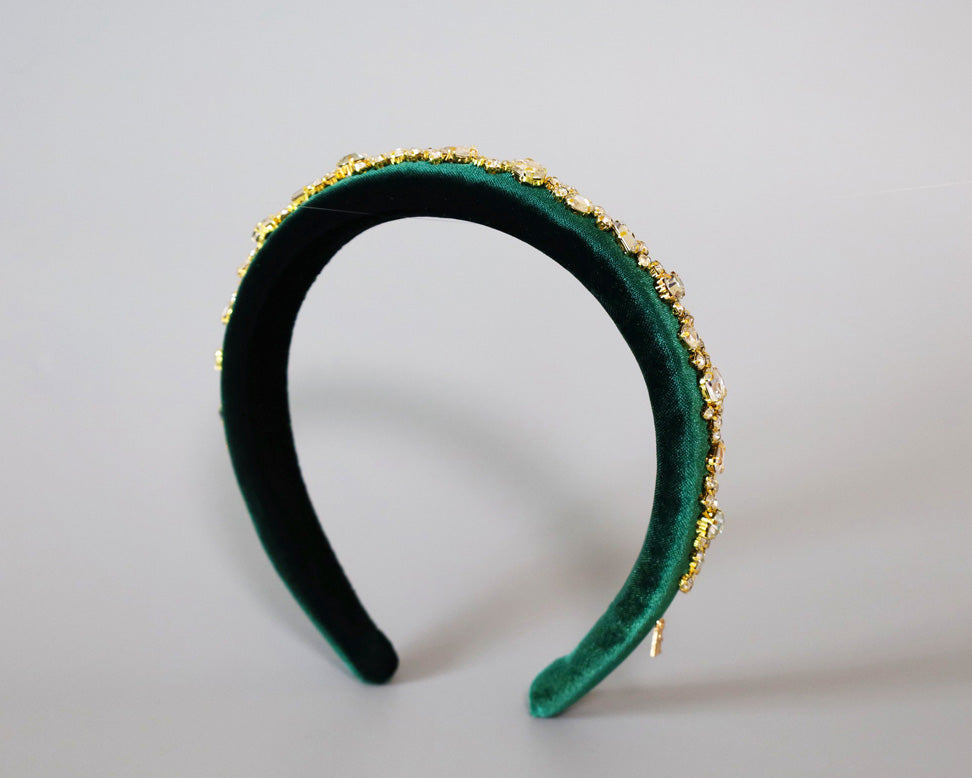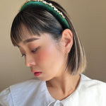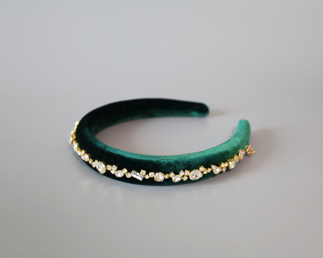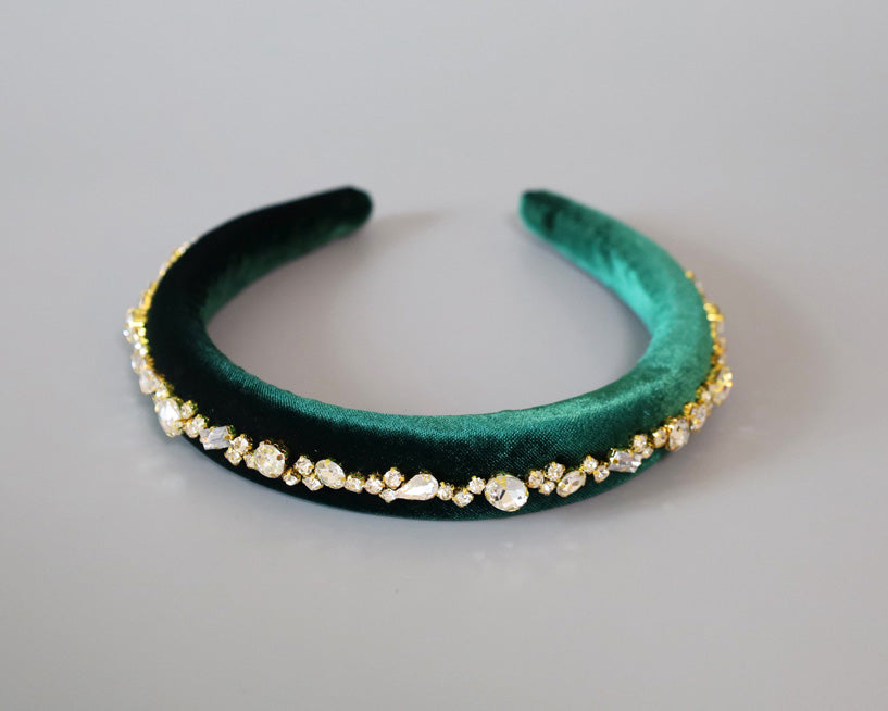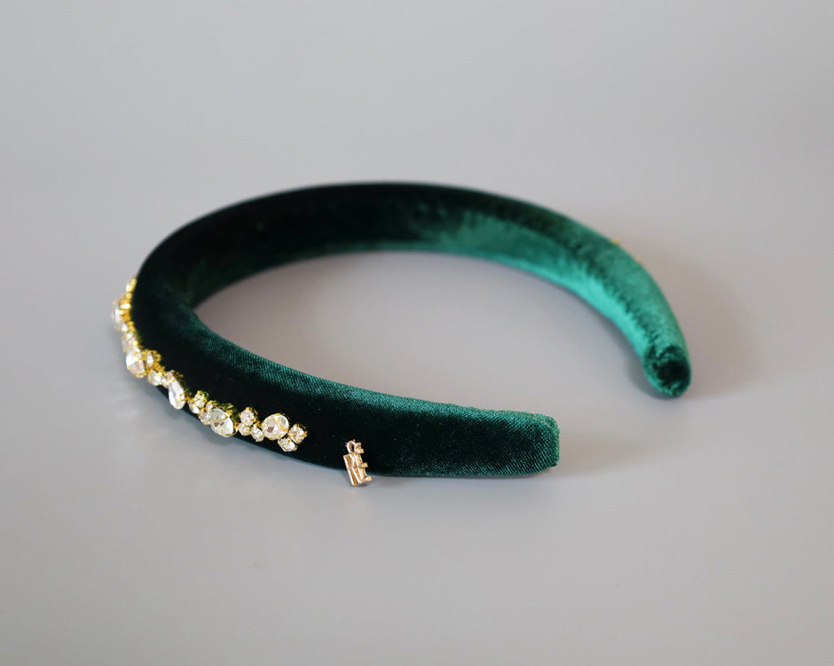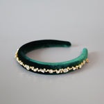 Green Velour Studs Slender Headband