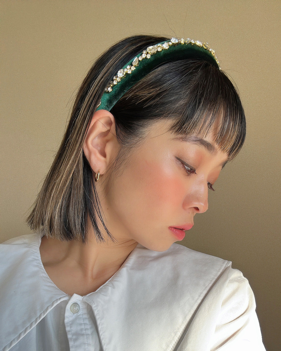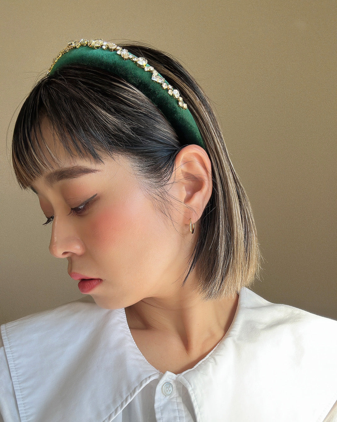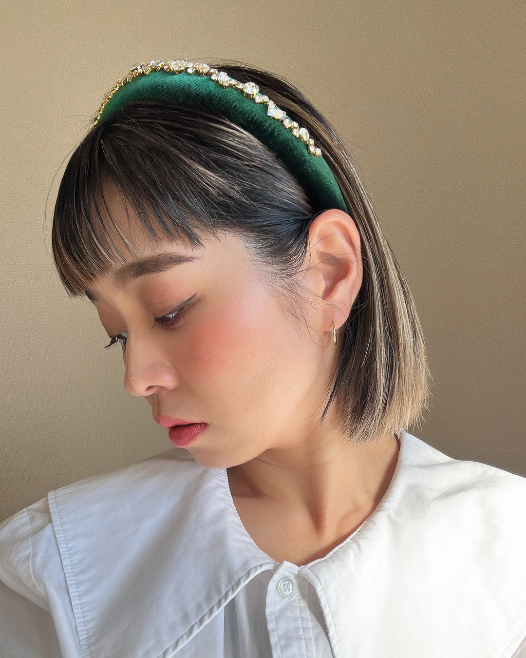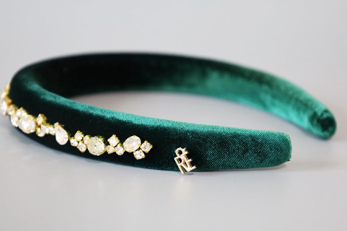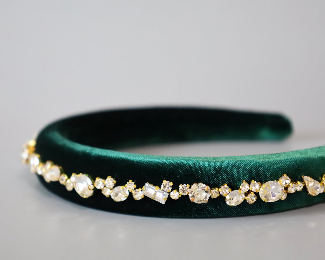 Green Velour Studs Slender Headband