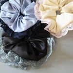 生地のとろみとレースのボリューム感がたっぷりなのを活かすなら、ちびポニーやタイトシニヨンであえてシュシュの広がりだけを見せるのもおすすめ。
