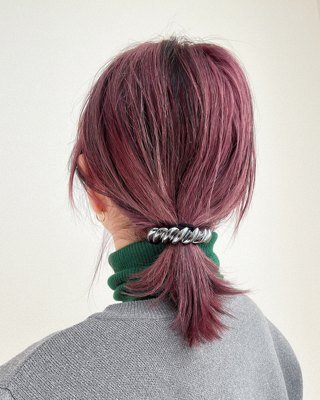 メタルの質感を活かすなら、高めよりも低めポニーの方が上品さがあっておすすめ。