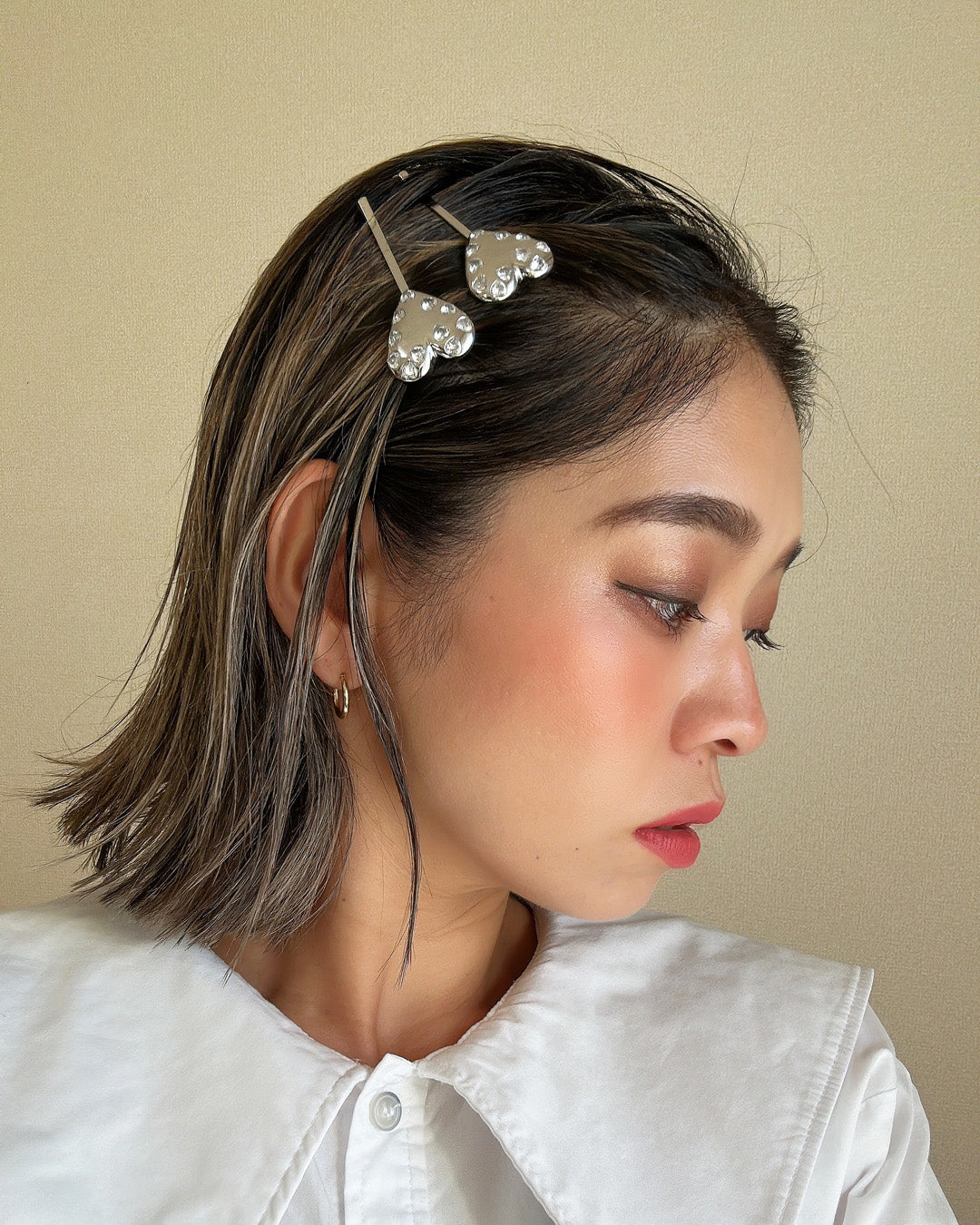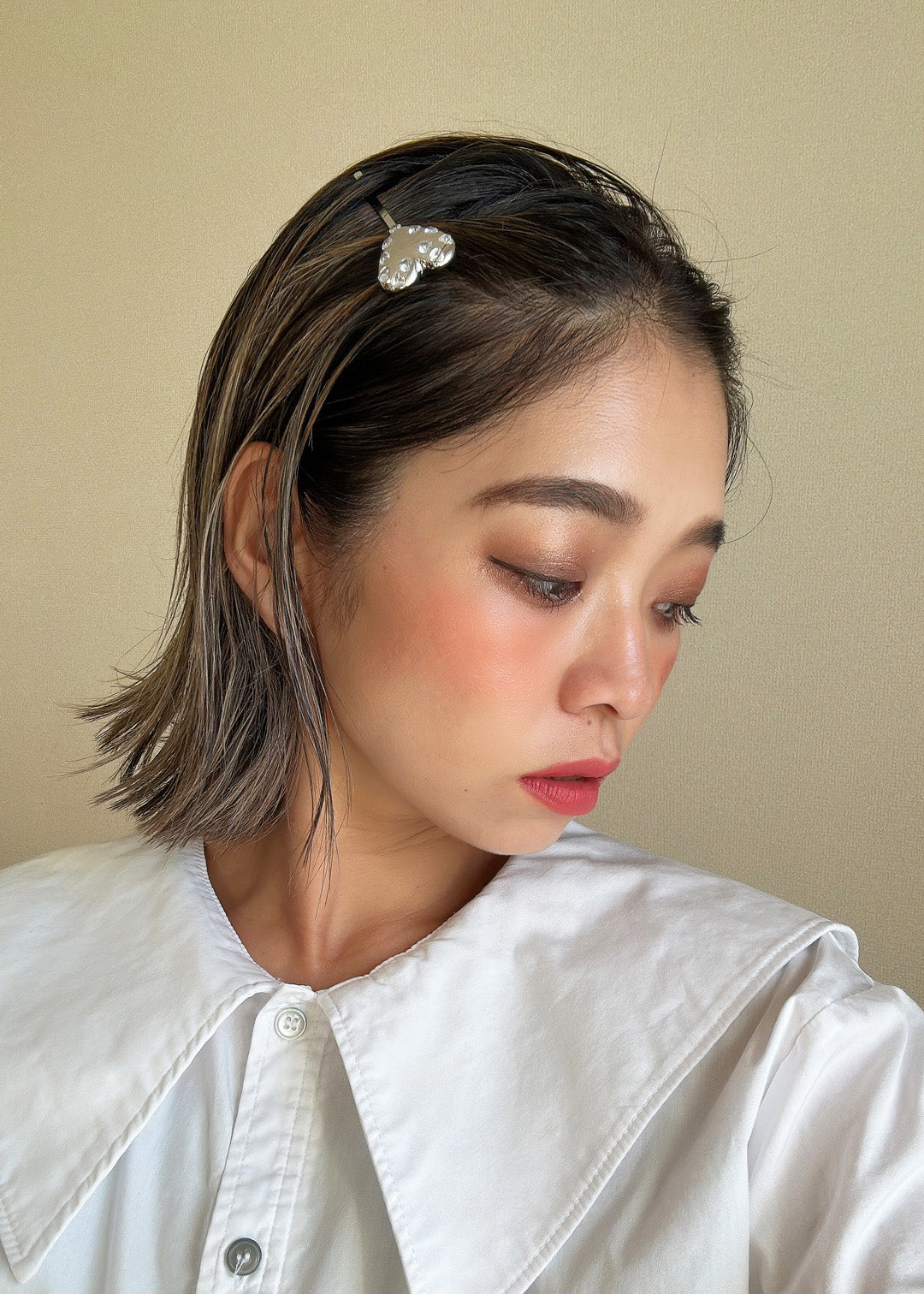ショートヘアの方はサイドに重ね付けがおすすめ。