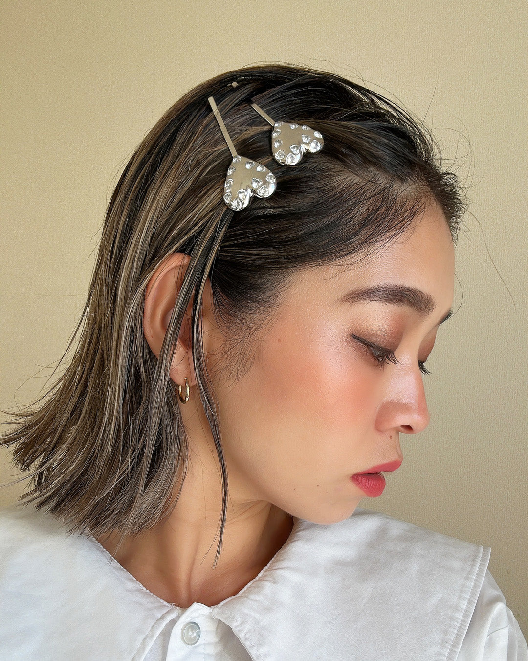 存在感はありながらも、派手すぎず色味がないのでどんなコーディネートにも合わせやすい、毎日使えるヘアピンです!