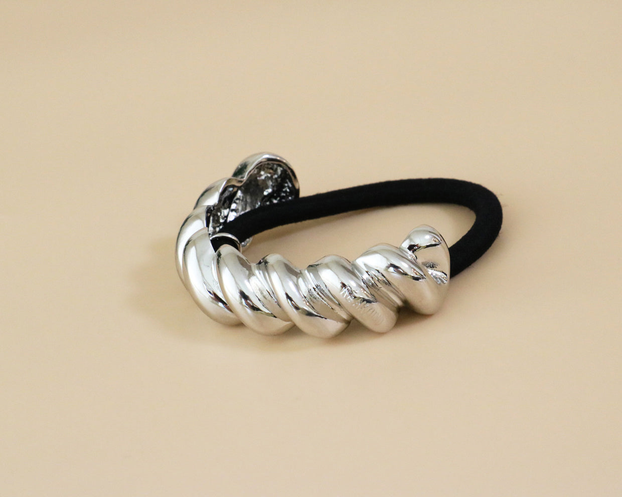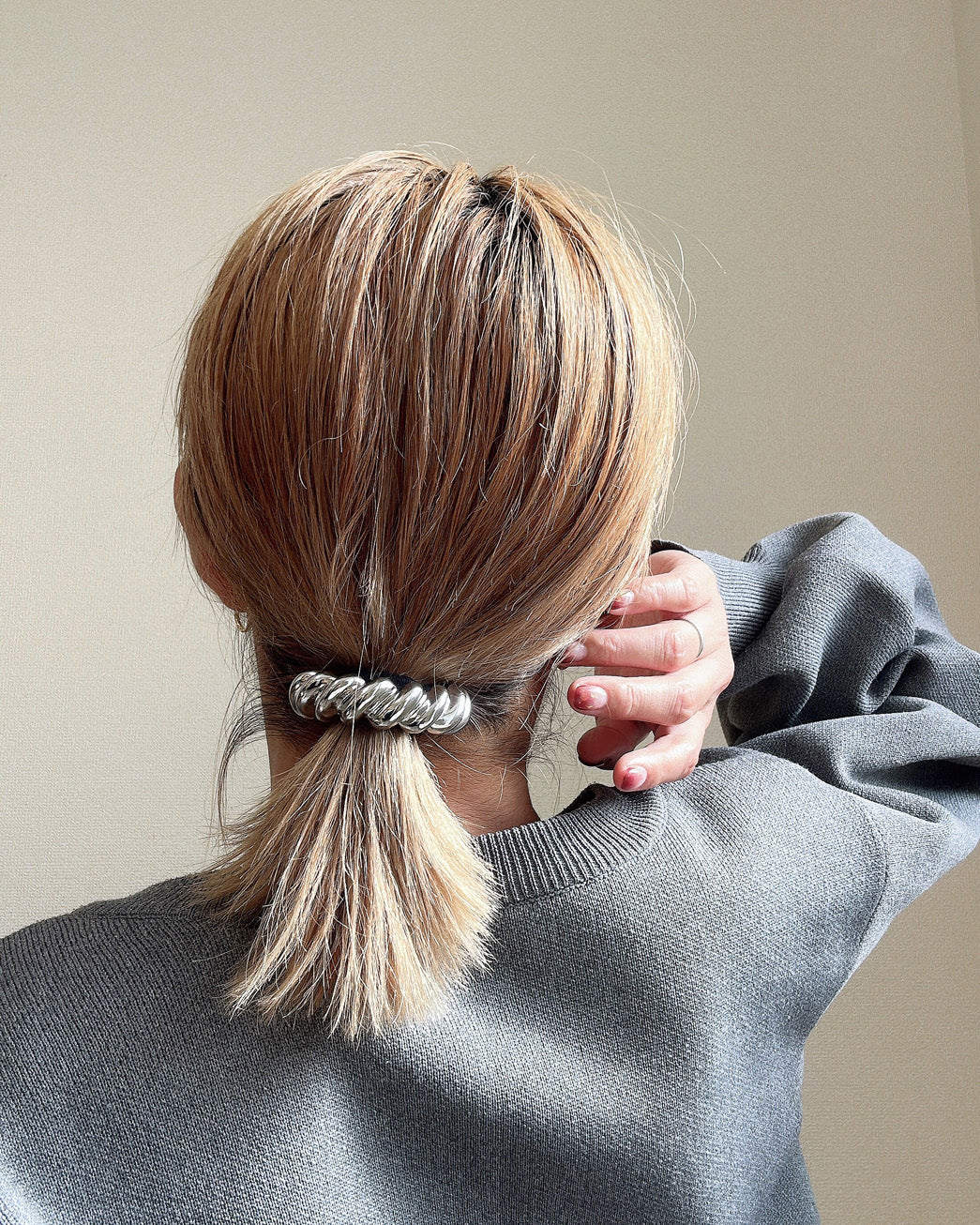 適度なカーブ感と長さのメタルパーツがゴム部分をカバーし、シンプルなポニーテールもおしゃれな仕上がりに。
