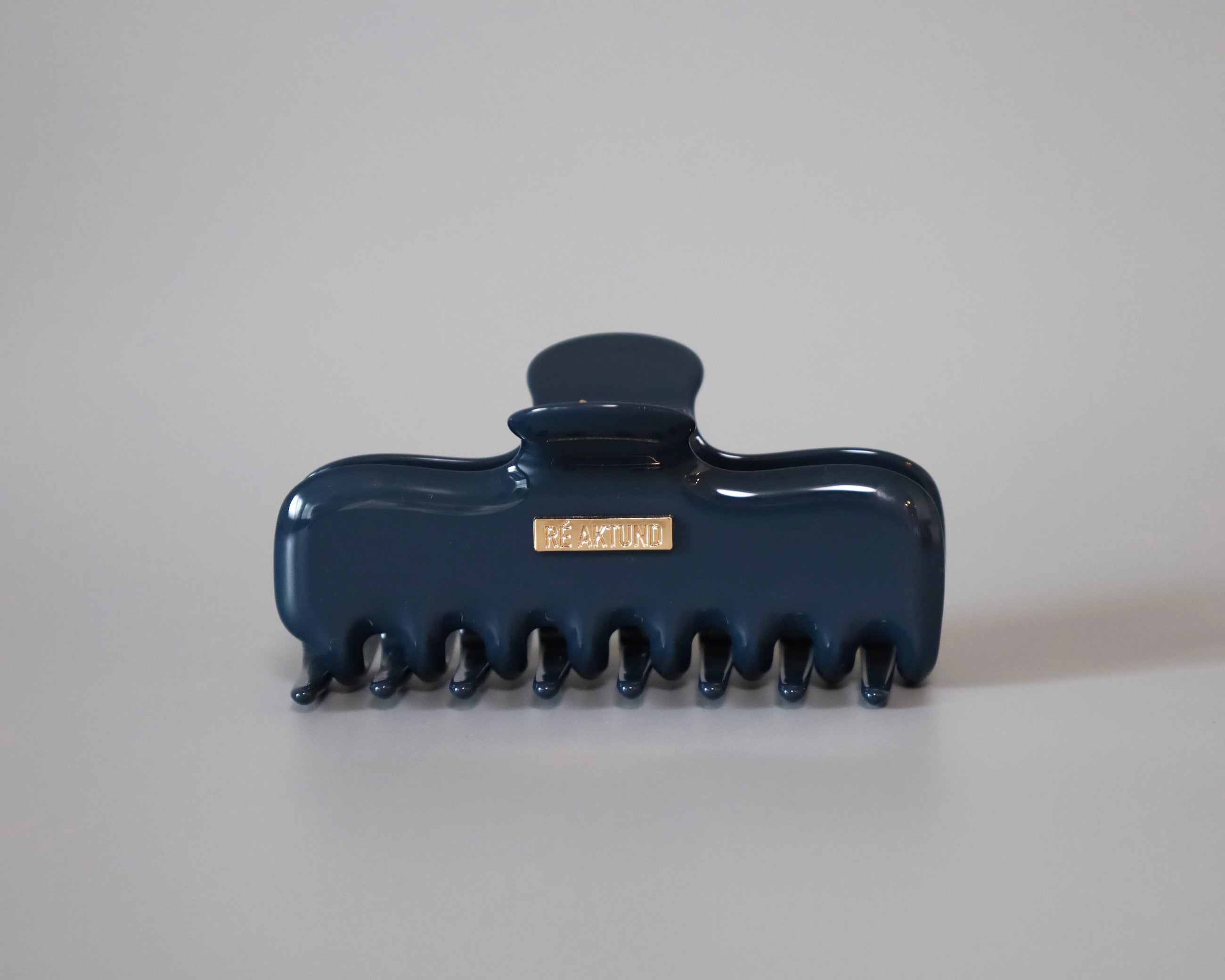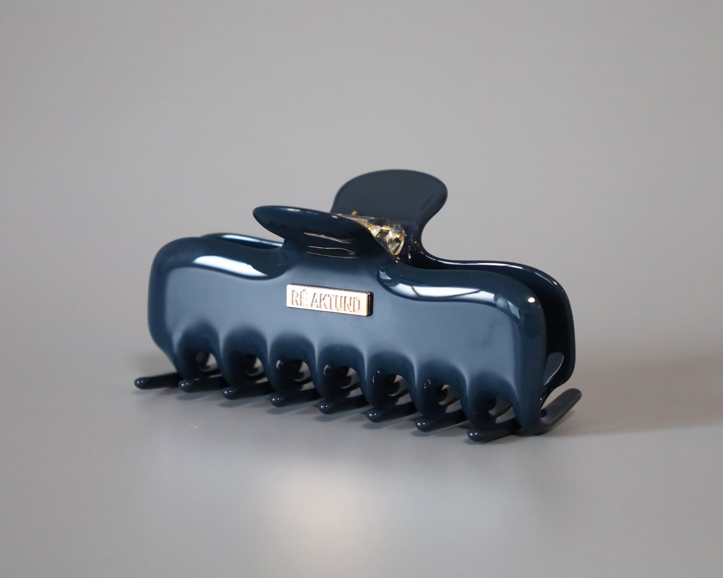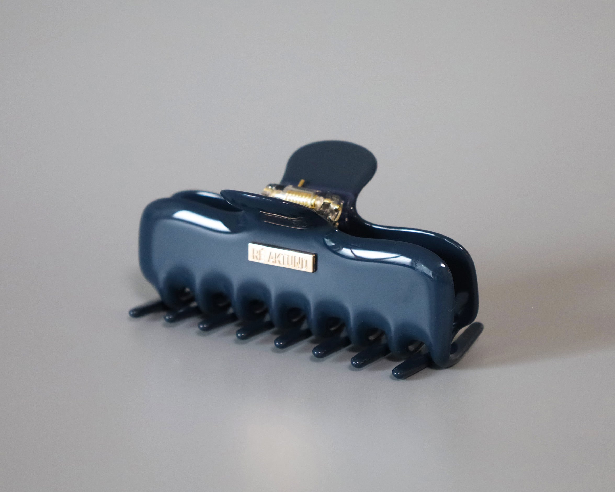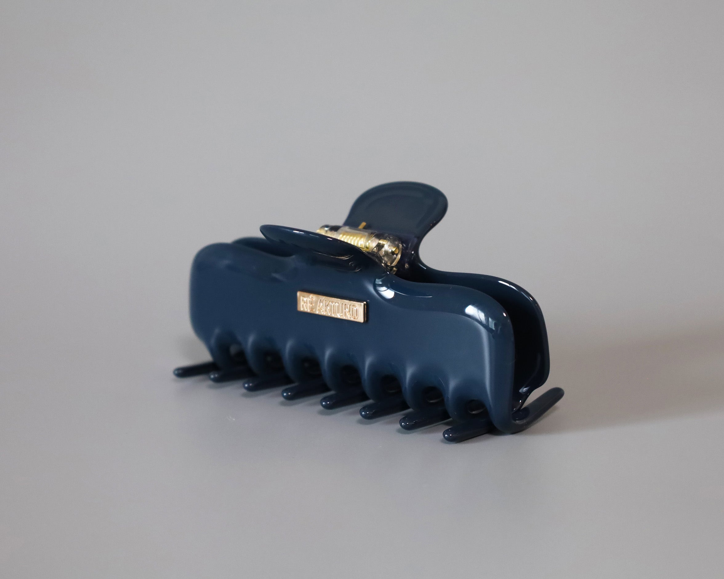 うるちゅるな質感が大人かわいいネイビーカラーのヘアクリップ。