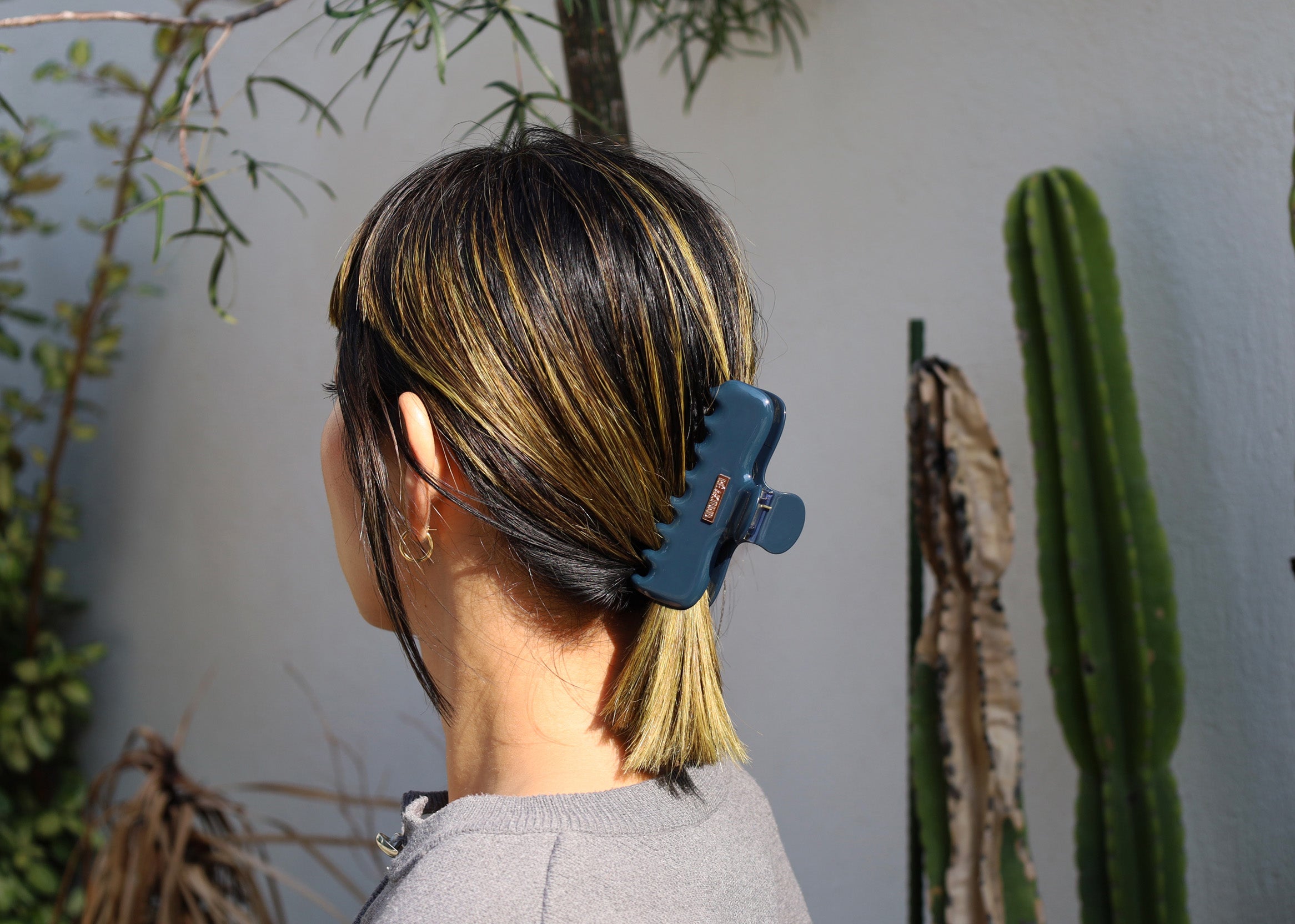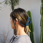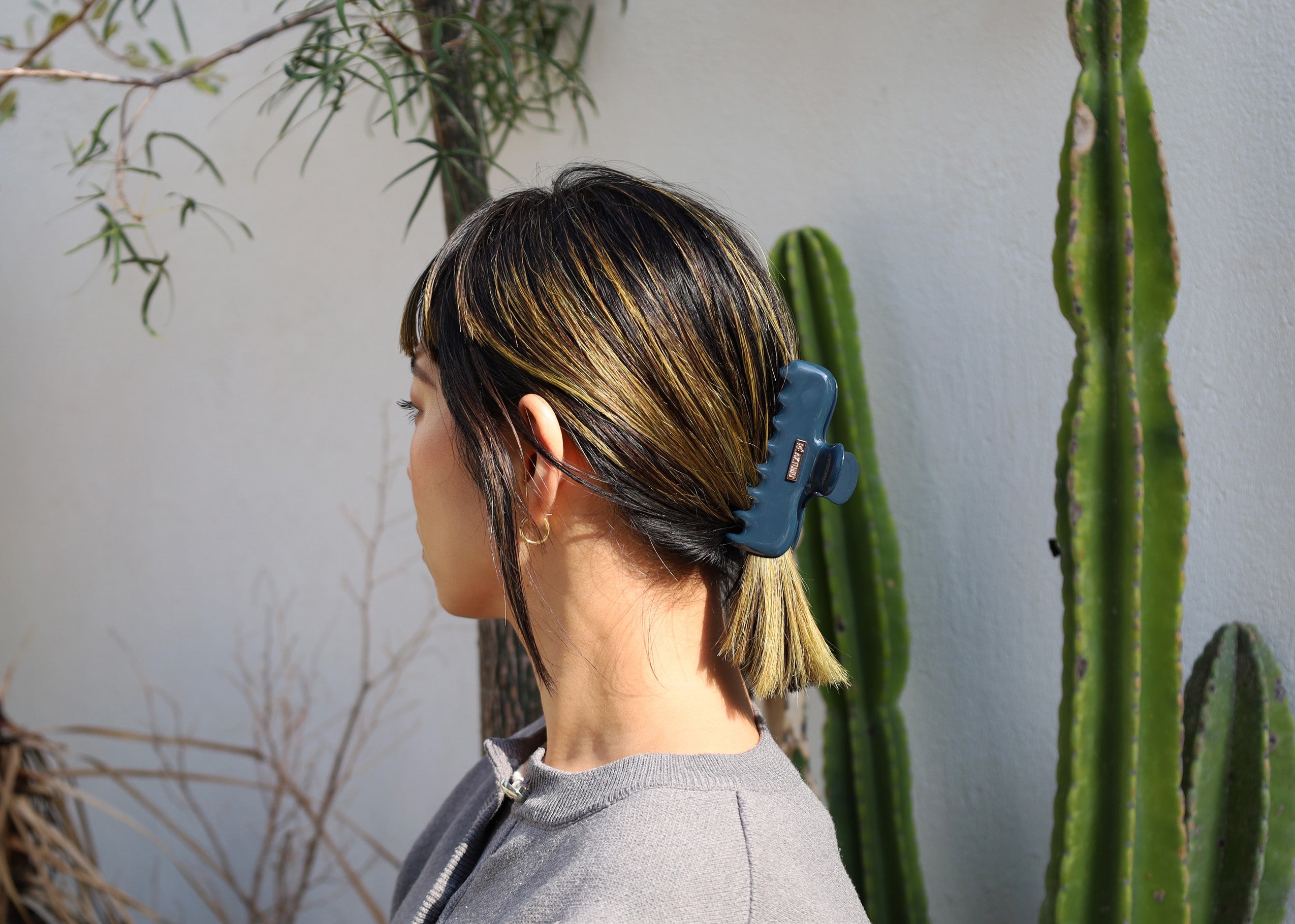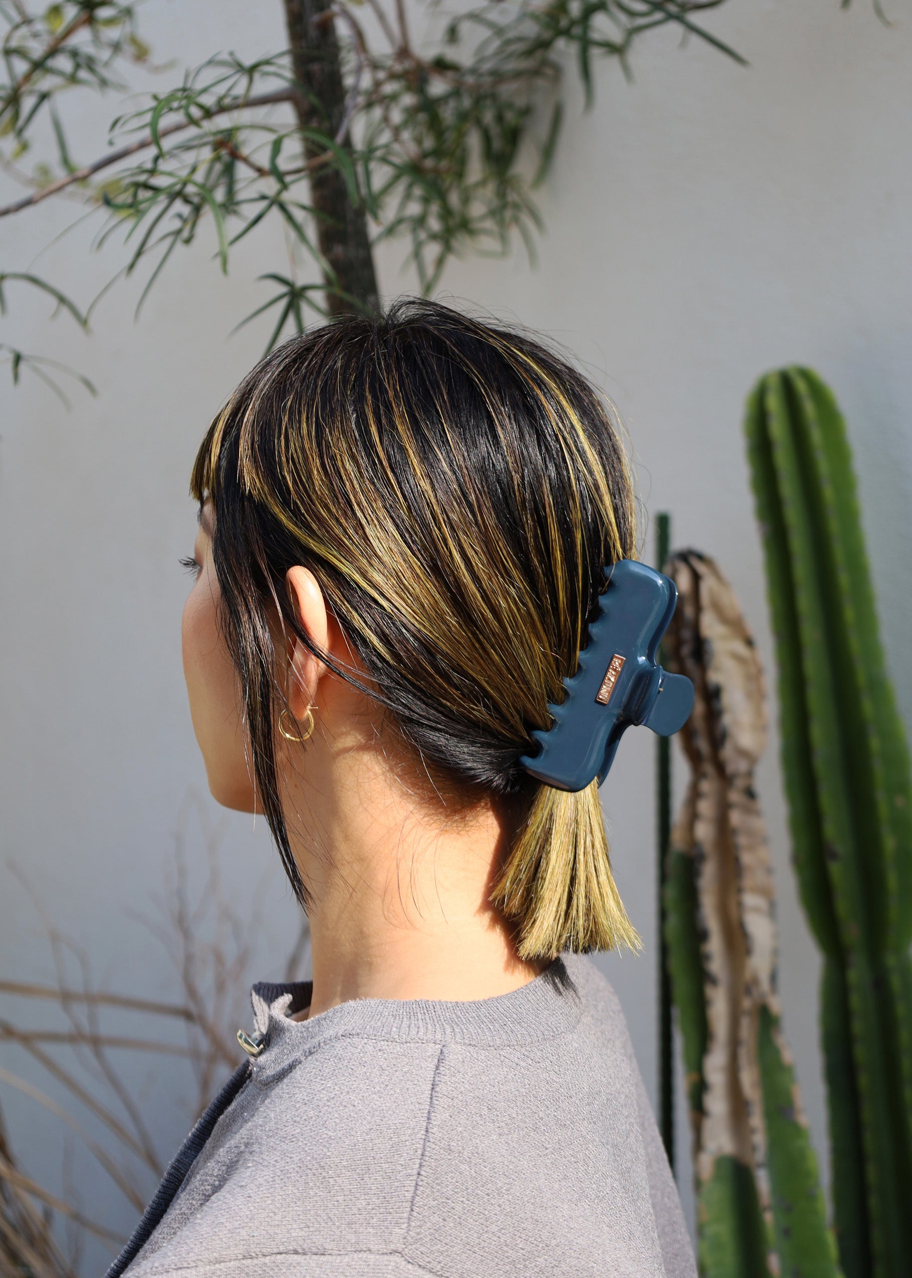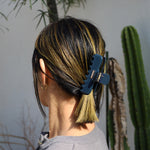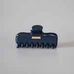 うるちゅるな質感が大人かわいいネイビーカラーのヘアクリップ。