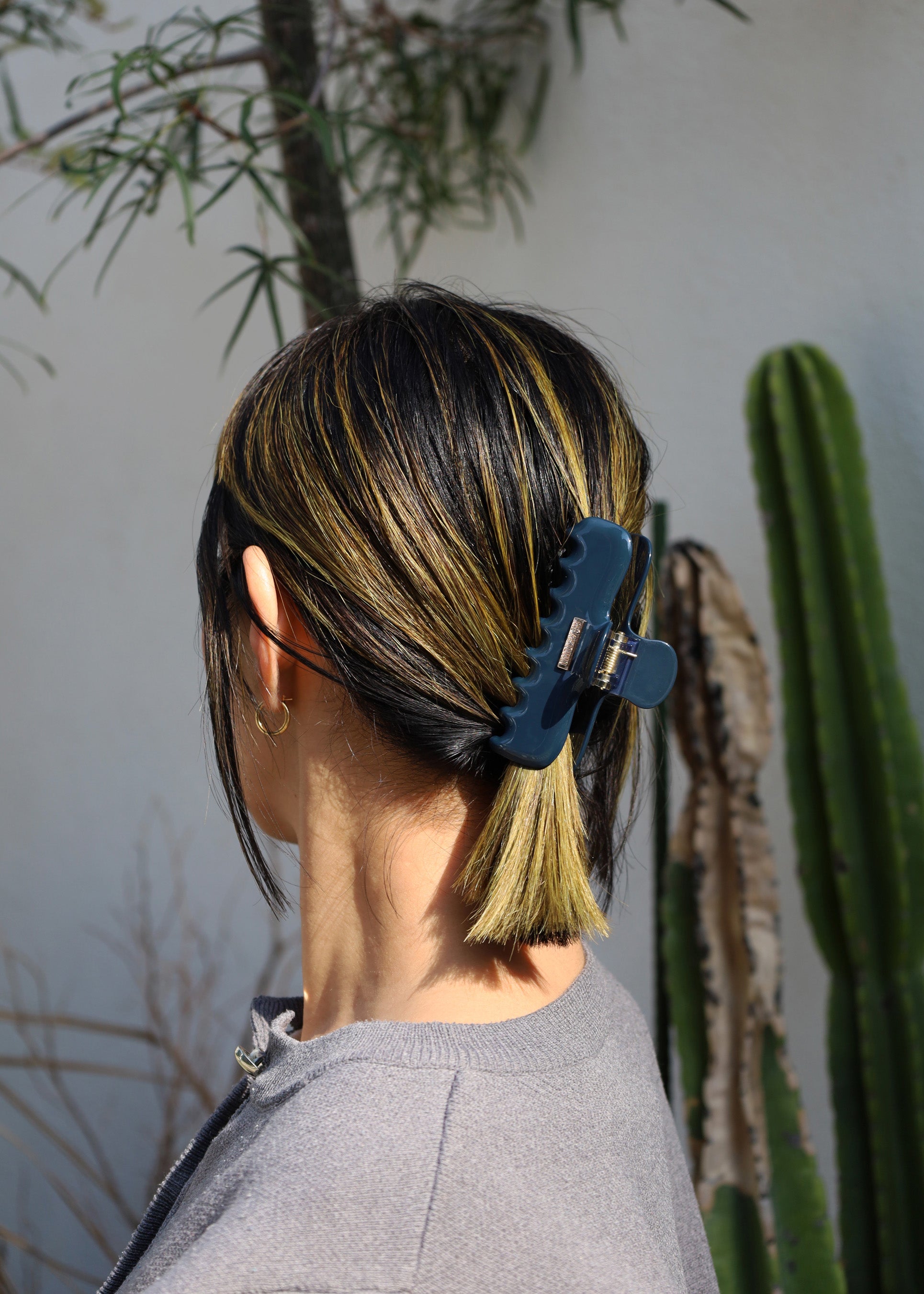 髪全体をねじり上げてホールドするのはもちろん、ラフに結んだローポニーの根本部分にかませてあげるのもこなれ感たっぷりでおすすめ。