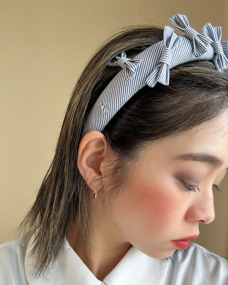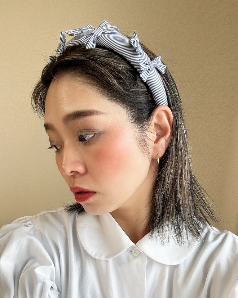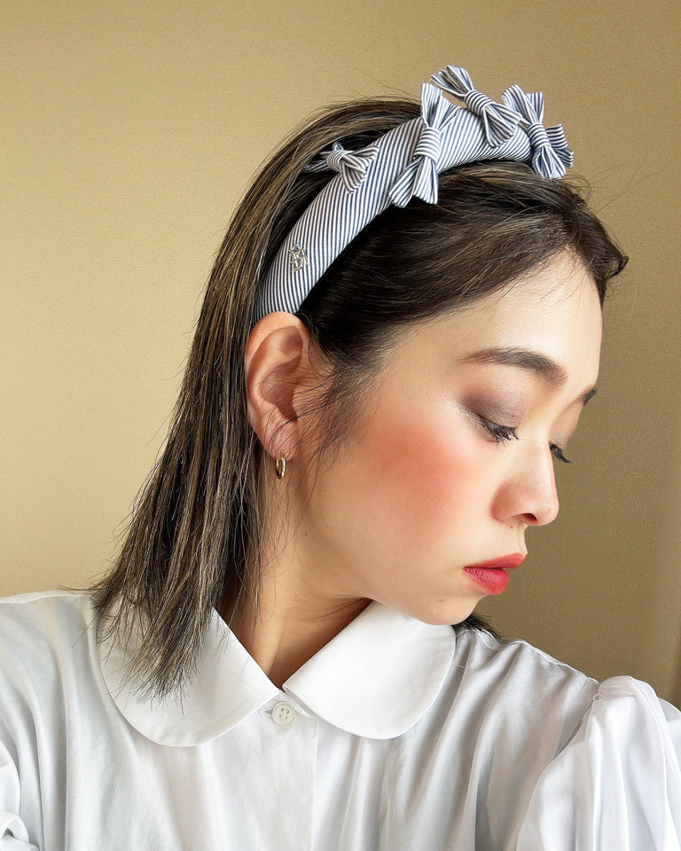 スモールサイズのリボンをたっぷり乗せた、かわいらしさが際立つカチューシャ。