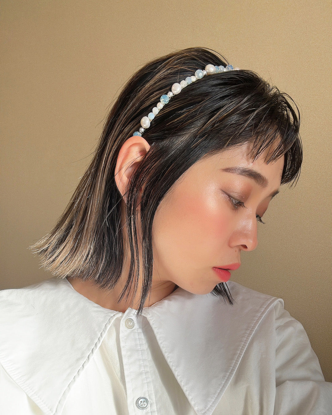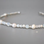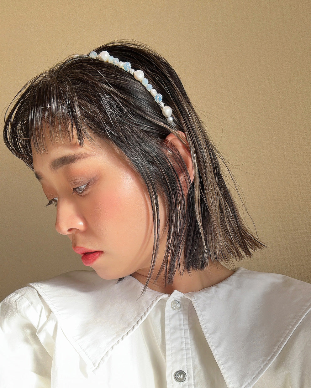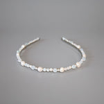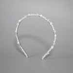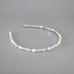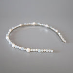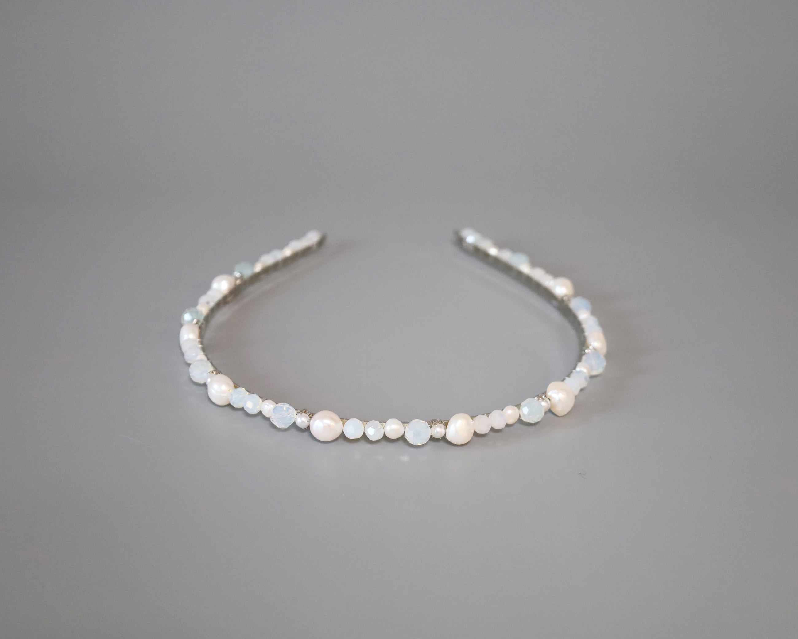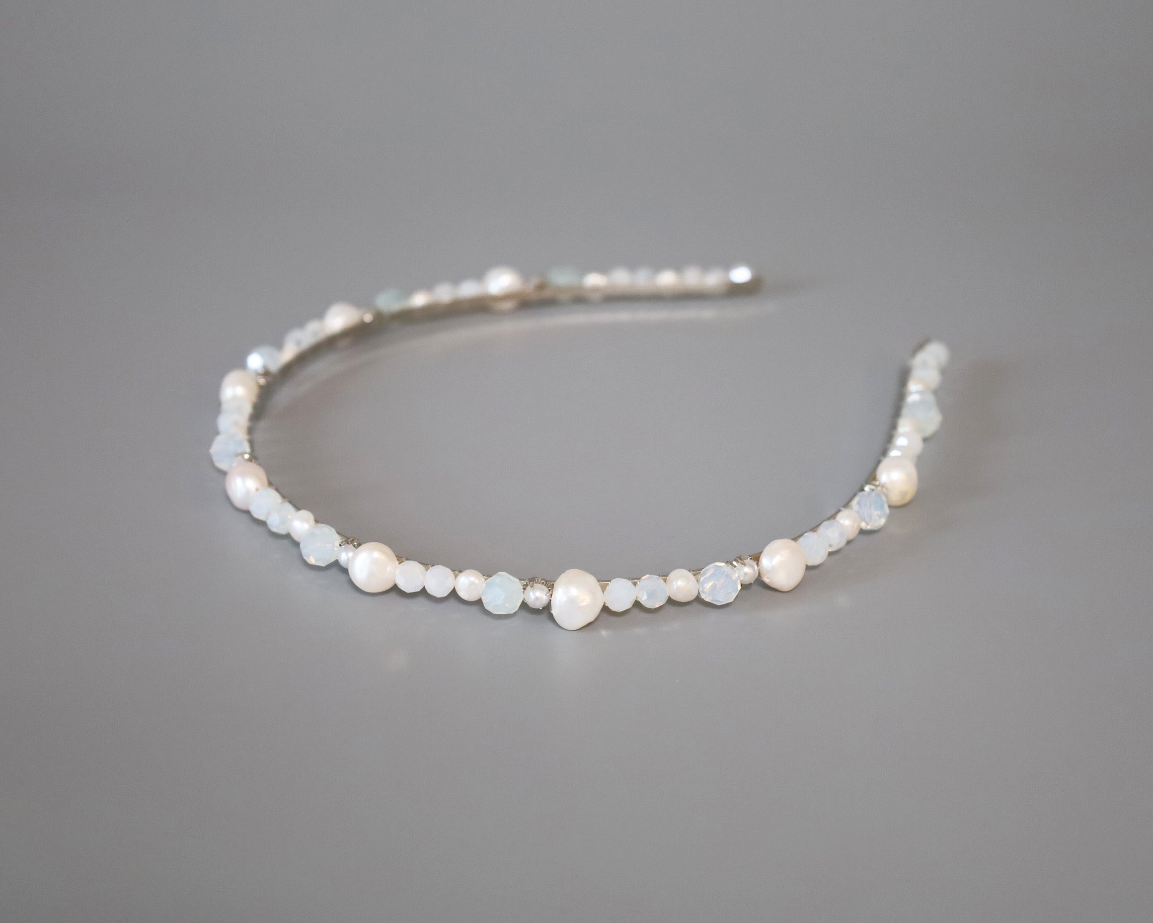 パールと乳白色のビジューを並べたロマンティックなカチューシャ。