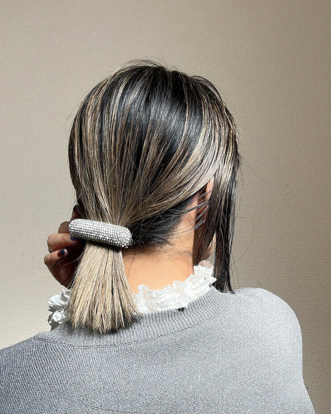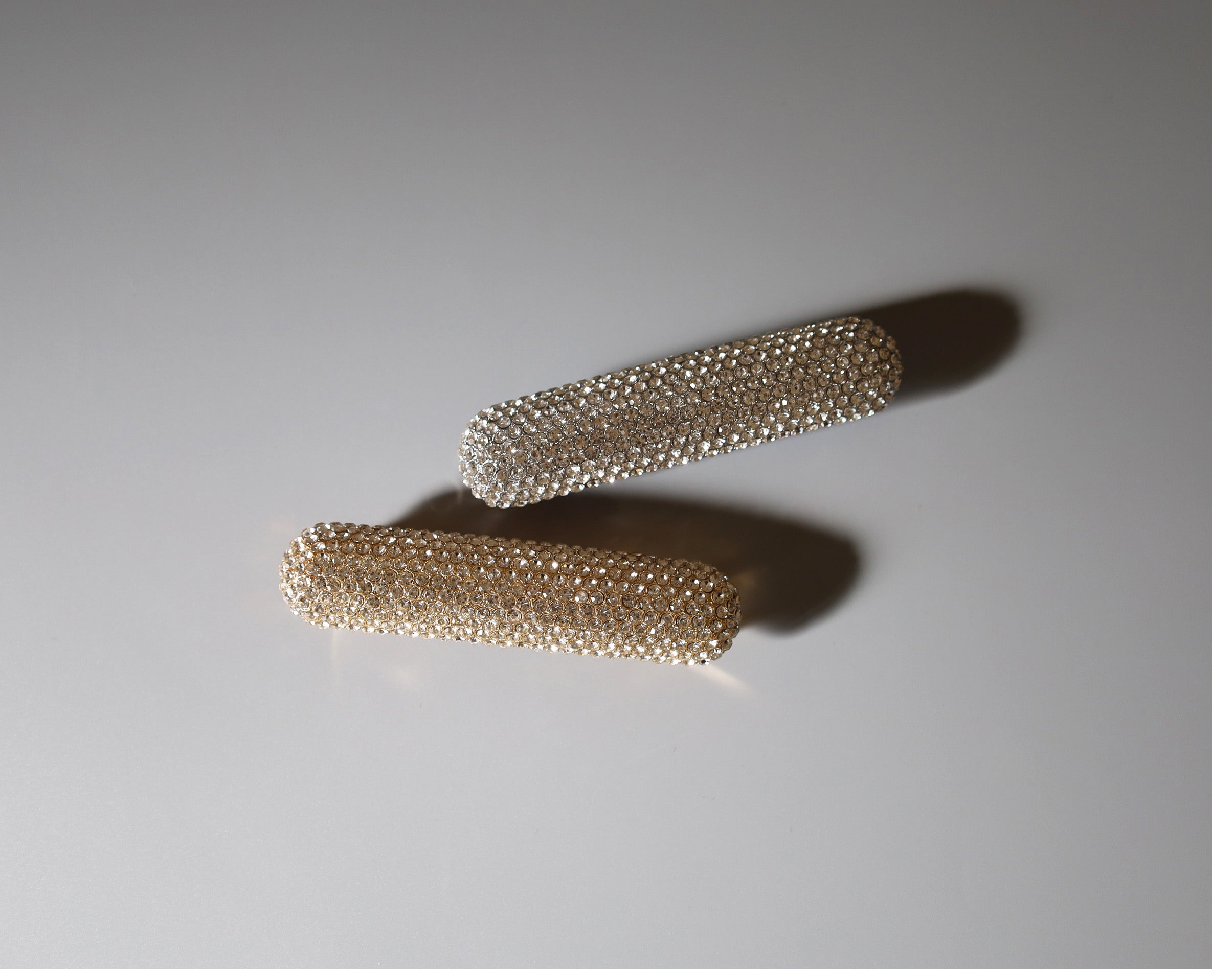 重厚感あるシルバーのボディにクリアビジューをぎっしり敷き詰め、ラグジュアリー感たっぷりに仕上げました。
