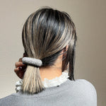 ざっくりとトップの毛をとったら、軽くねじってバレッタをオン。