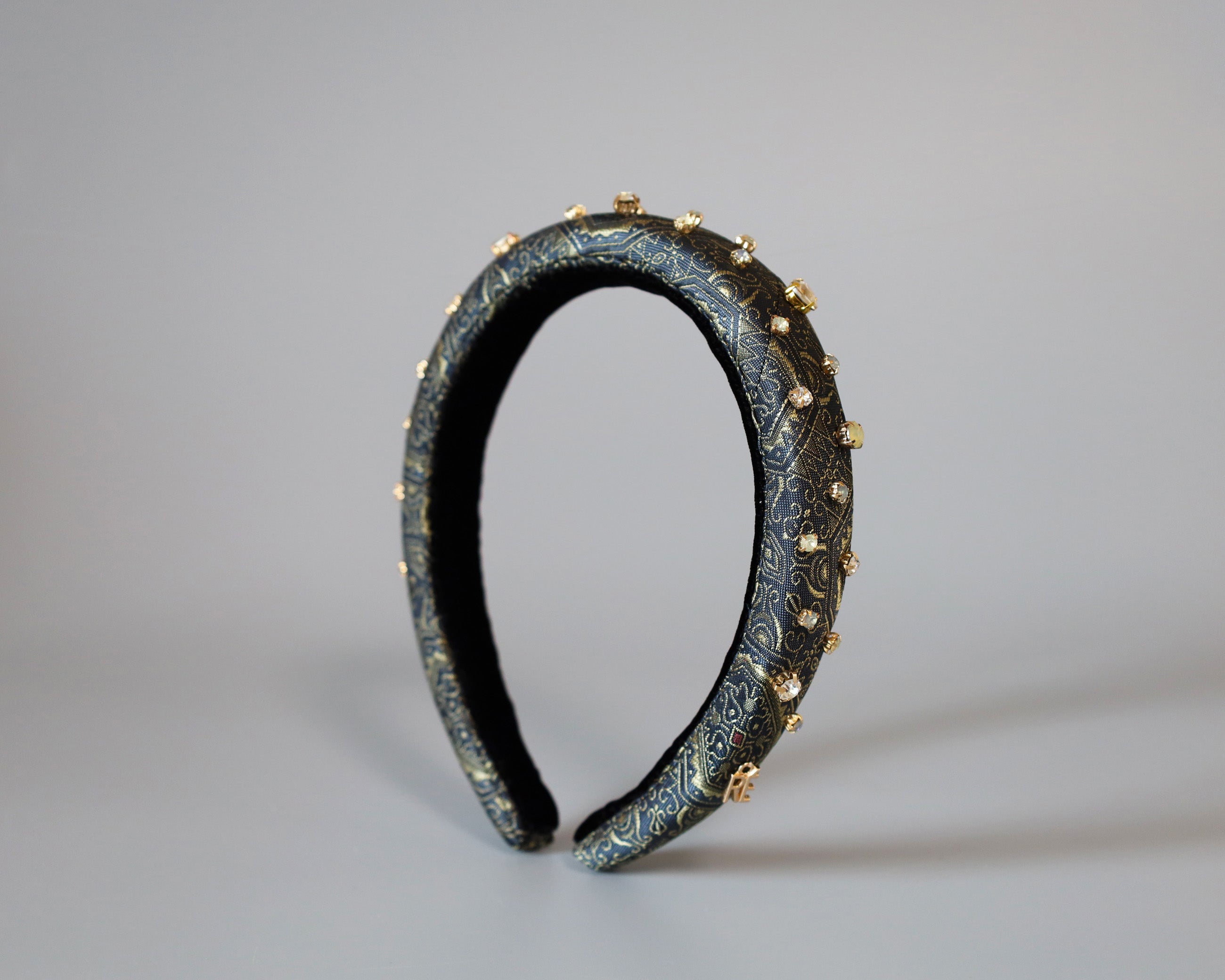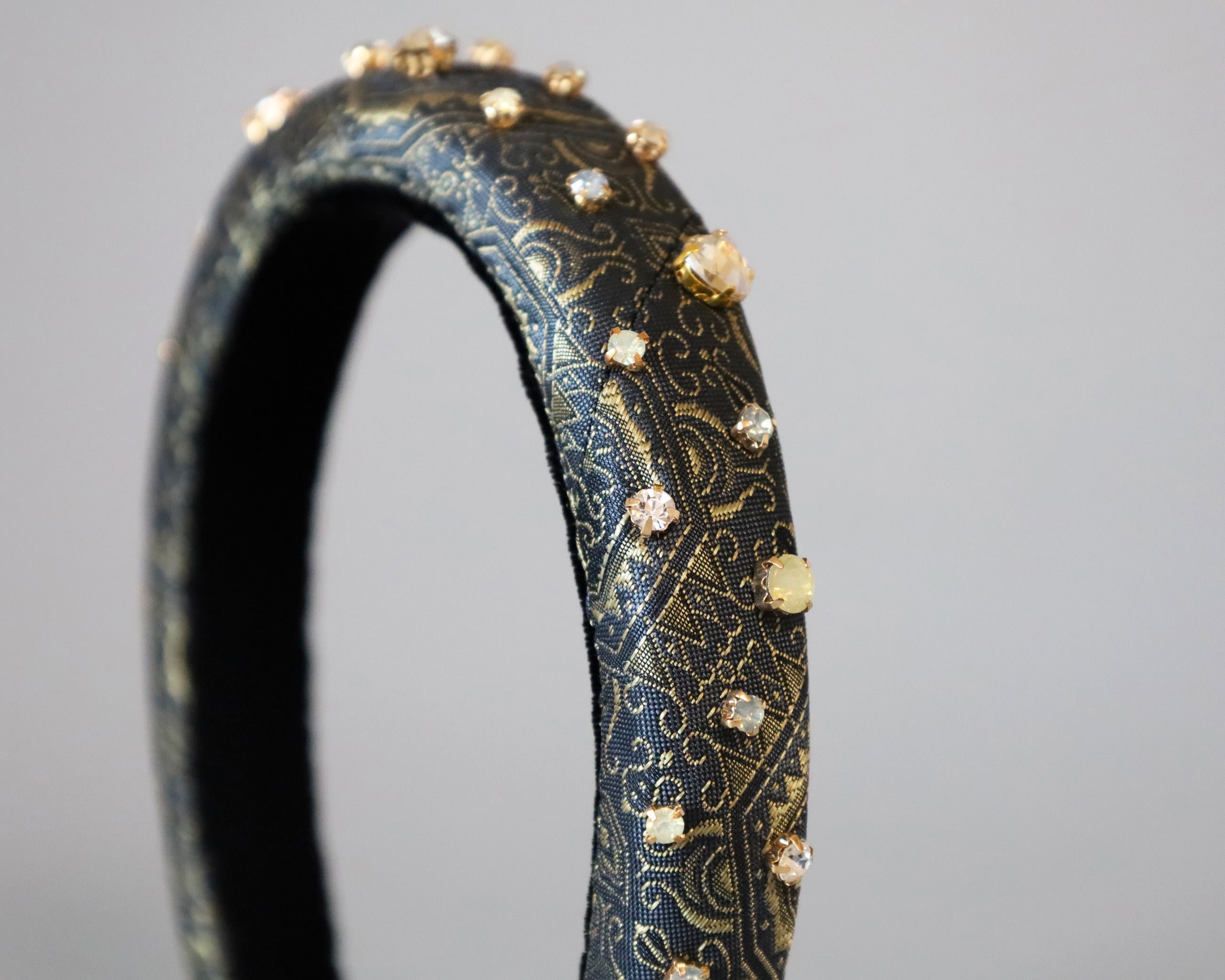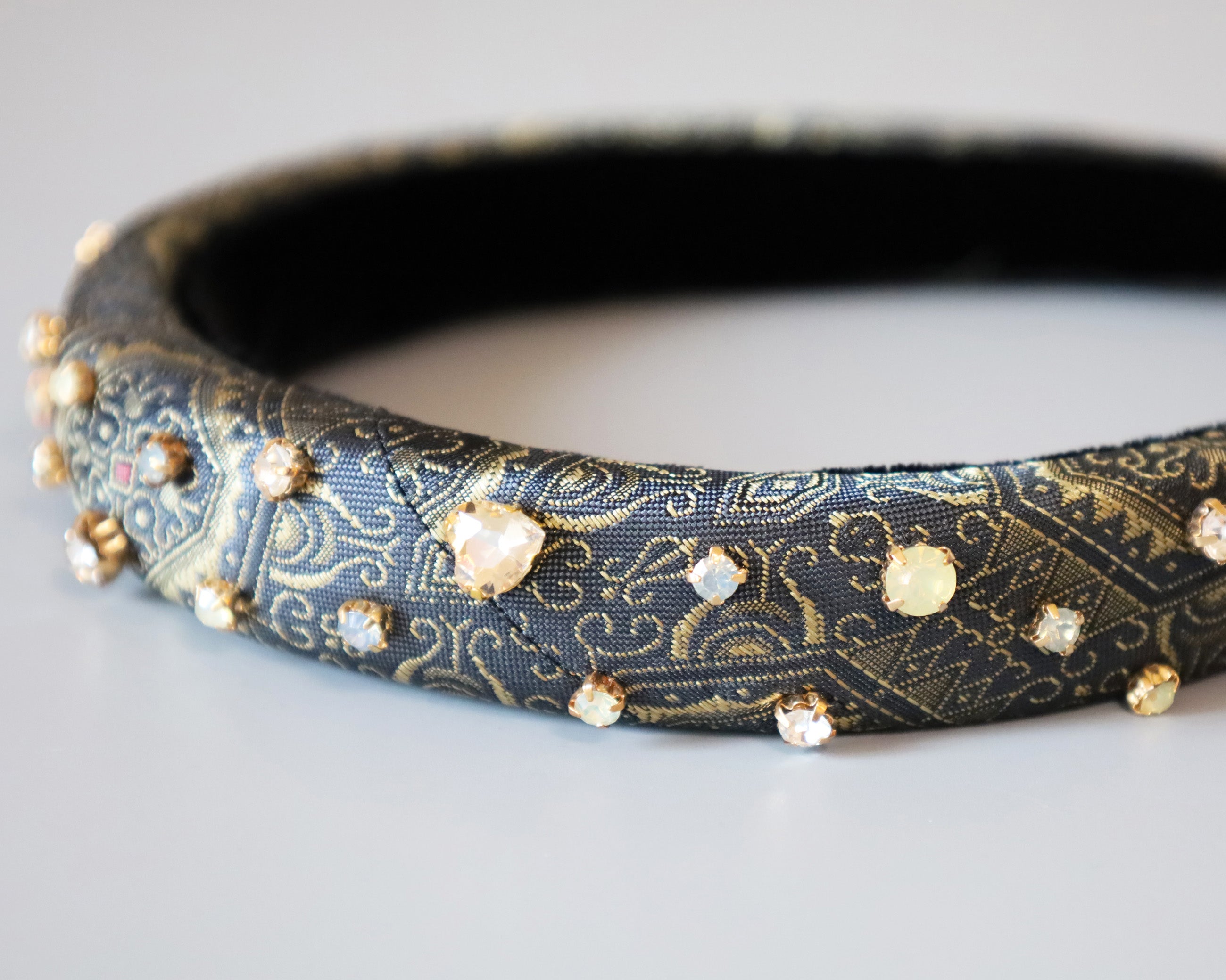 チャコールグレー×ゴールドの大人っぽいカラーリングに小粒ビジューをたっぷり散らしたリッチなデザイン。