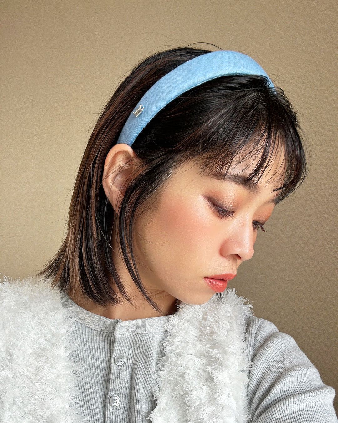 淡いライトブルーが軽やかなデニムカチューシャ。