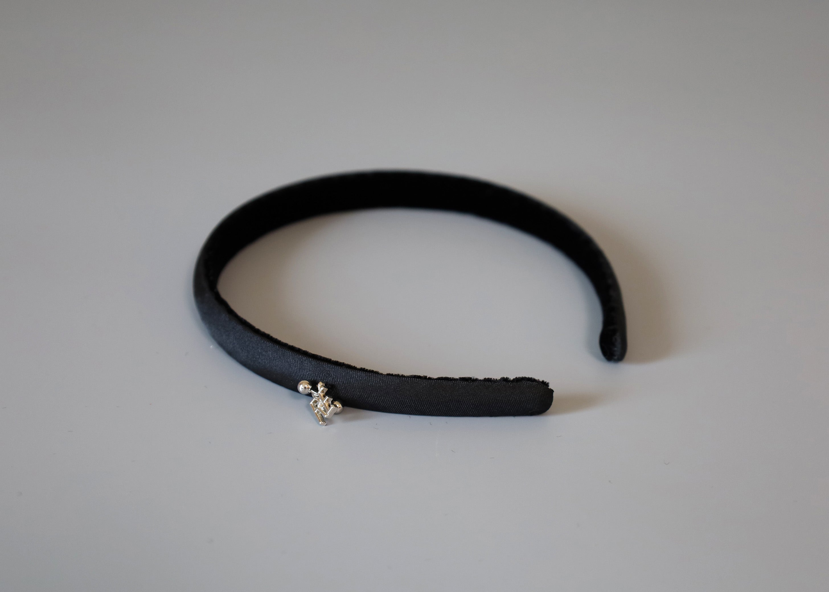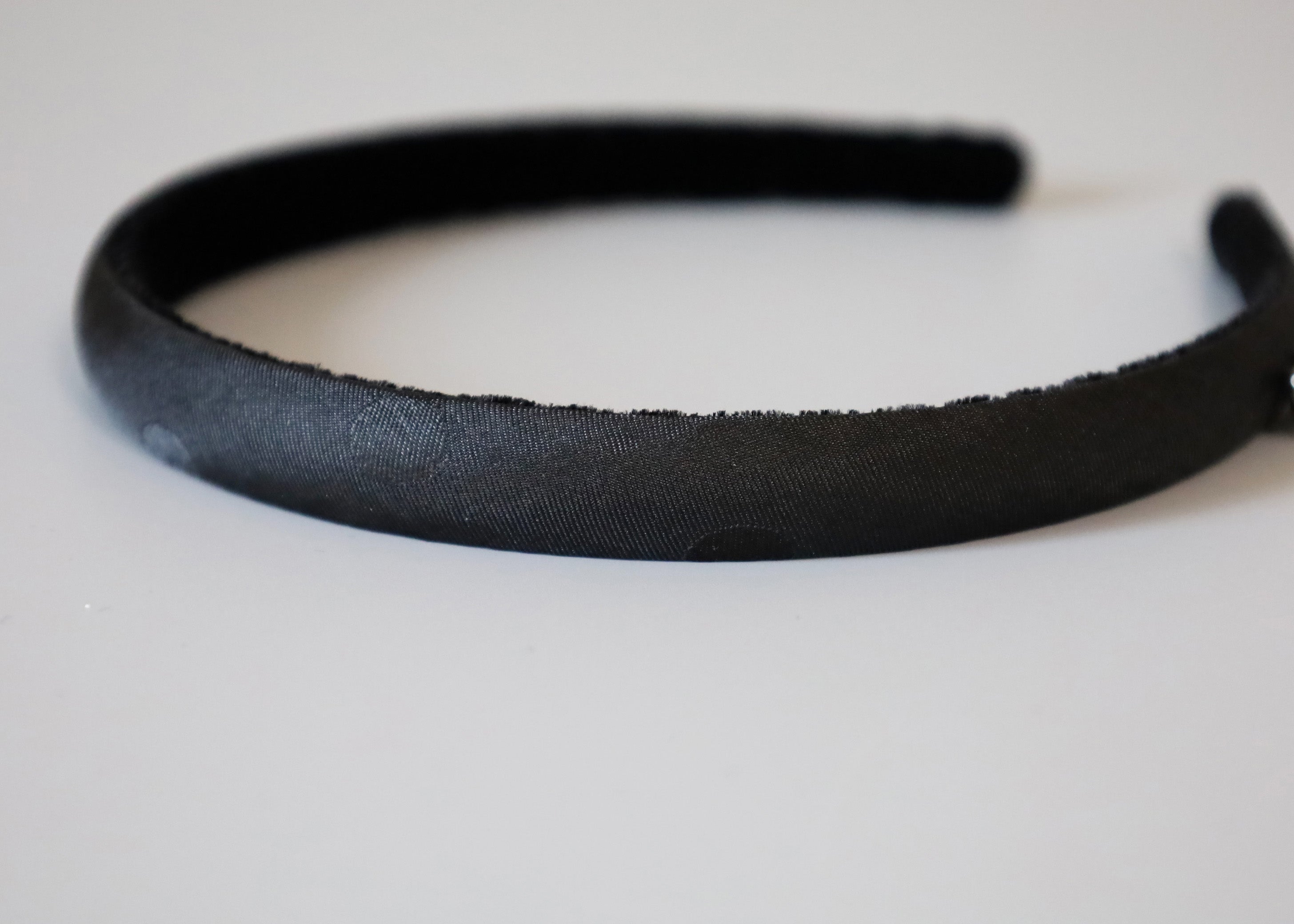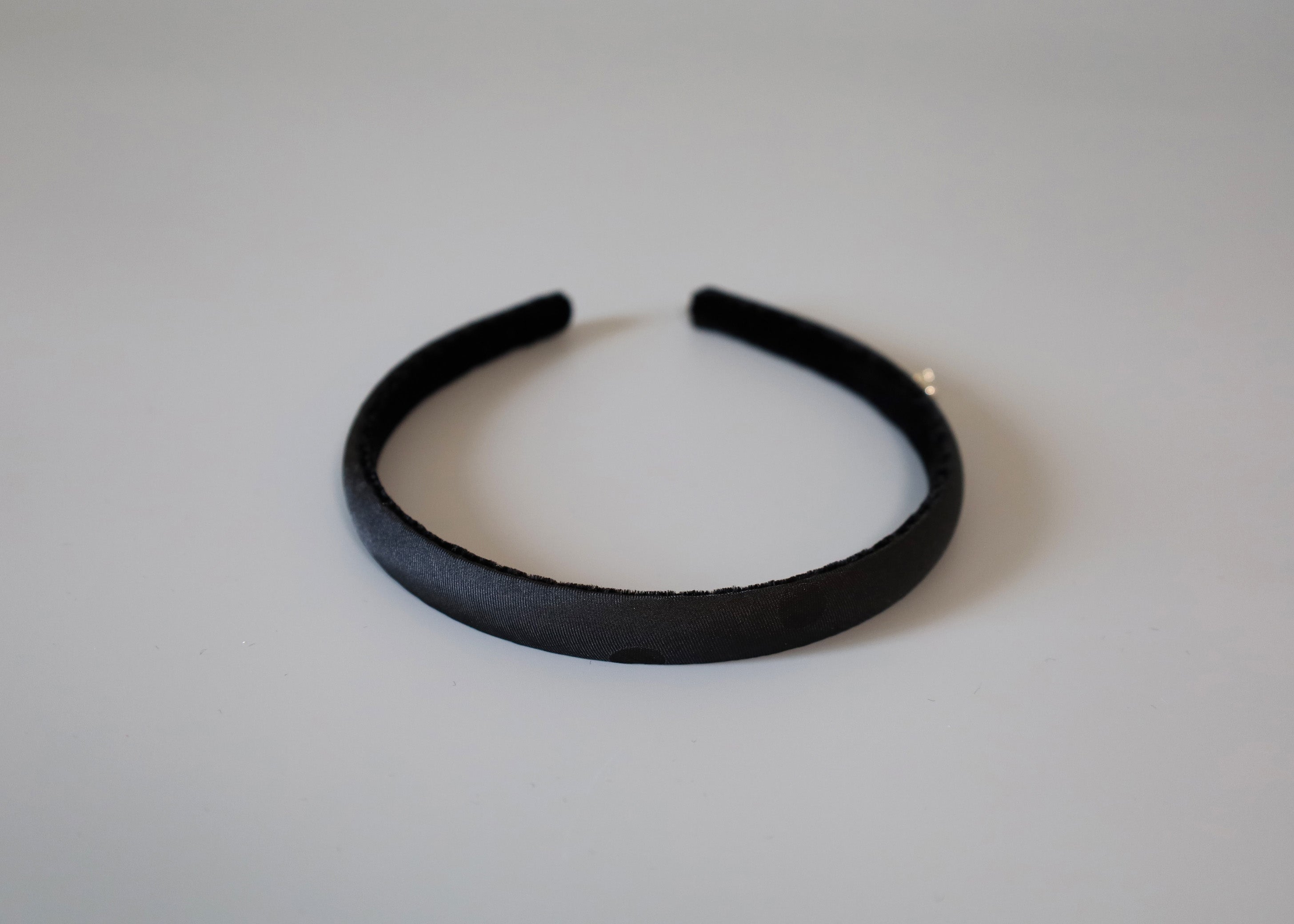さりげないドット柄がたまらないブラックカラーのカチューシャ。