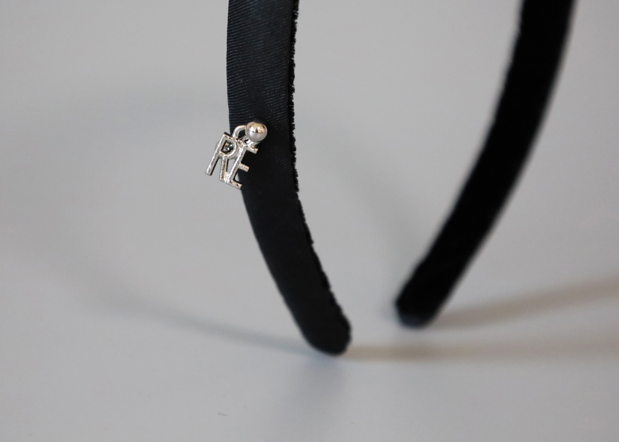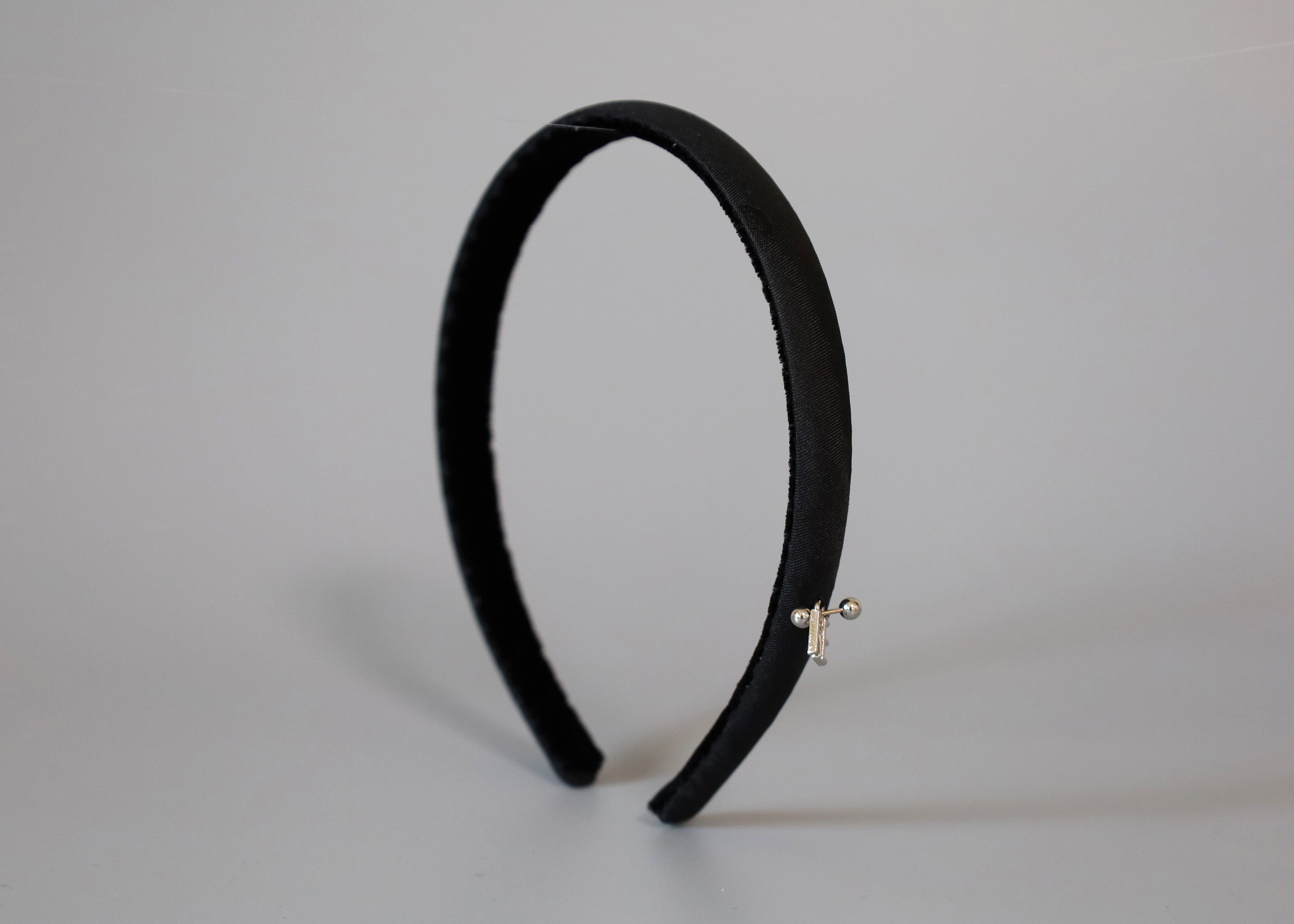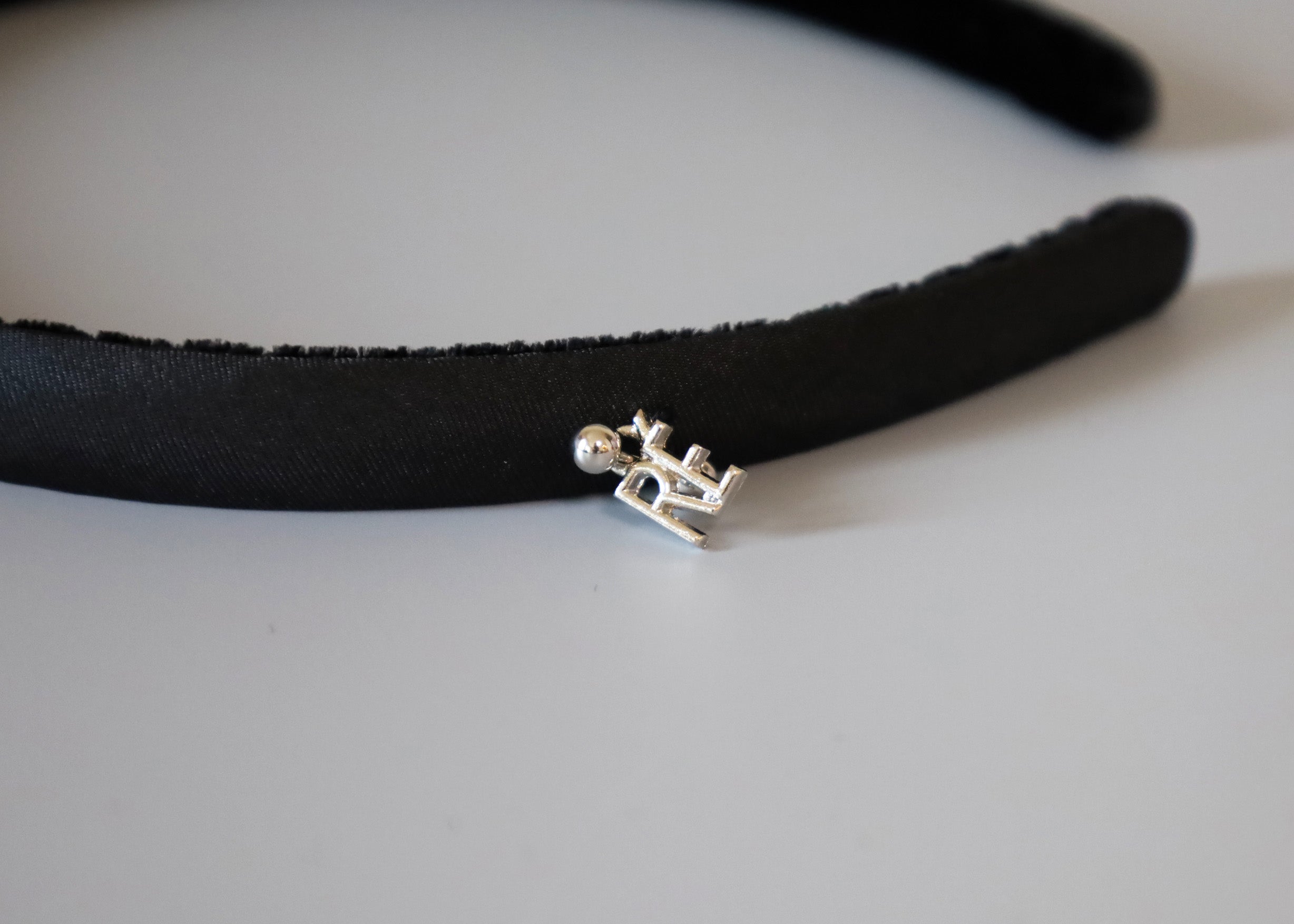さりげないドット柄がたまらないブラックカラーのカチューシャ。