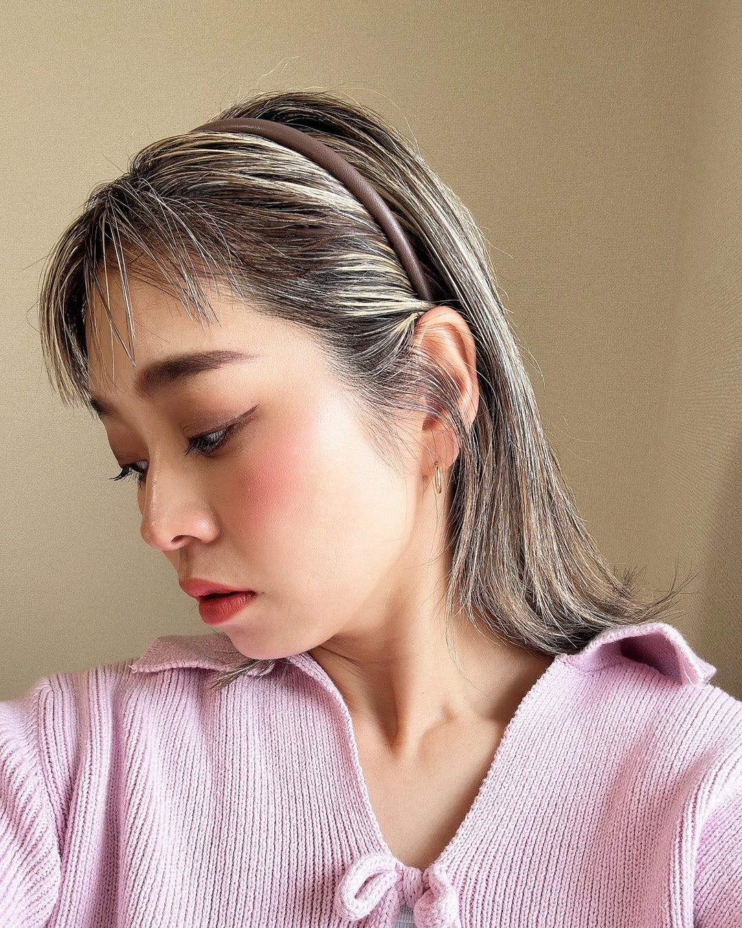 シンプル・イズ・ザ・ベストを体現する極細のレザーカチューシャ。