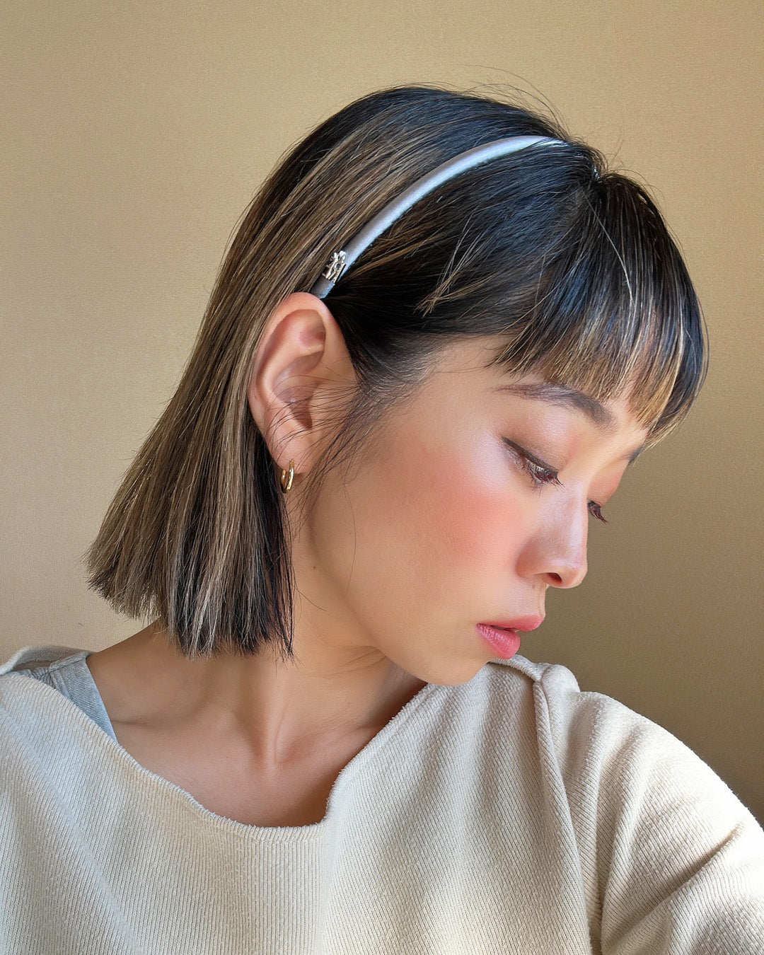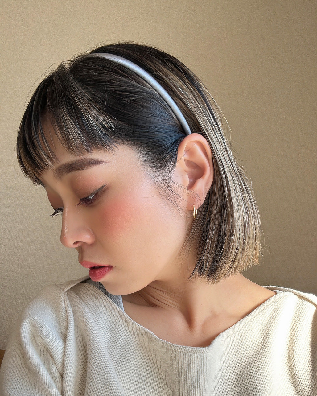 さりげないリッチ感をプラスできるカチューシャは、シンプルなスタイリングと合わせるのがおすすめ。