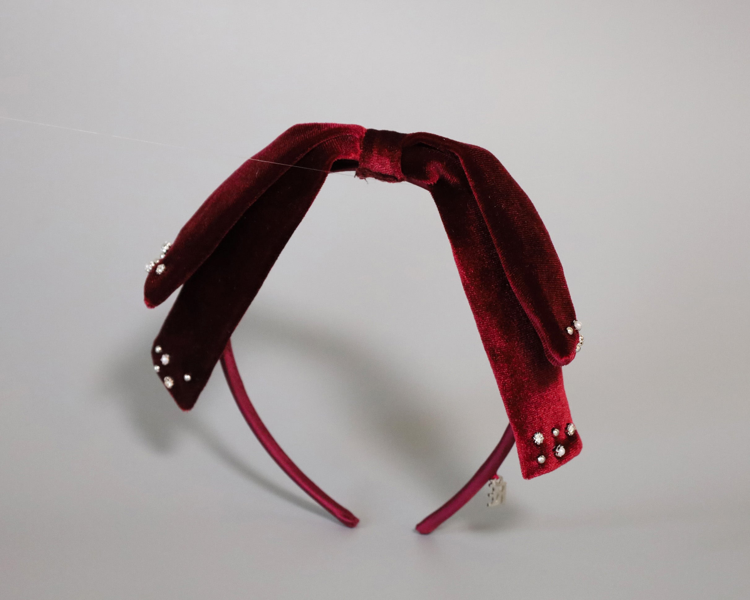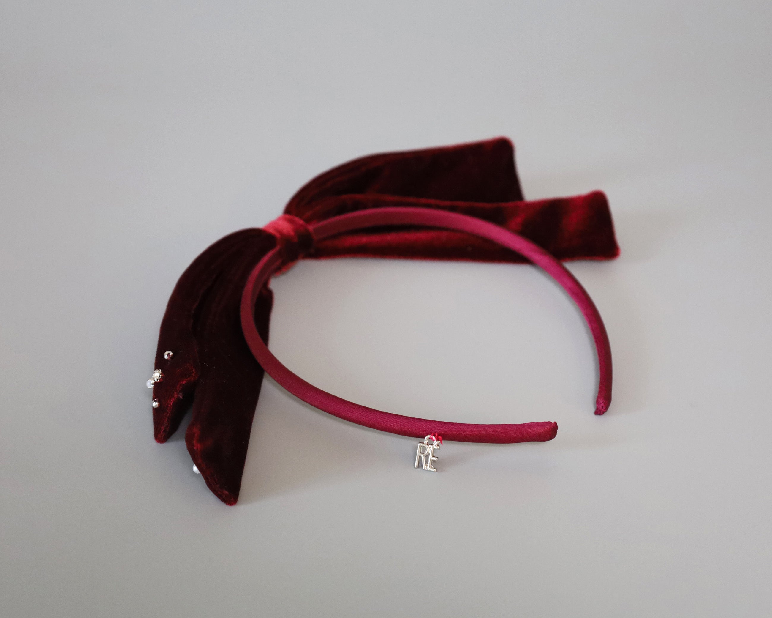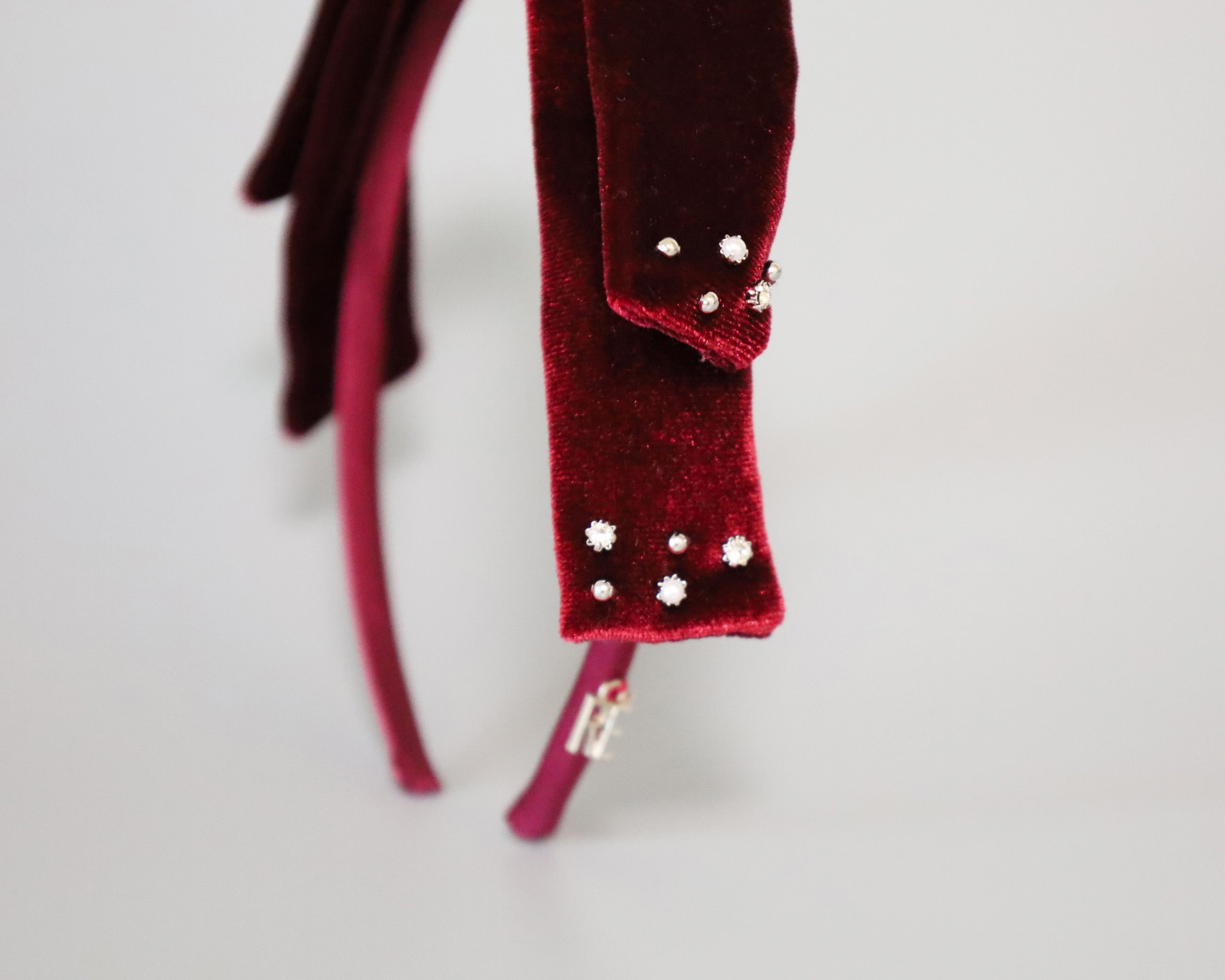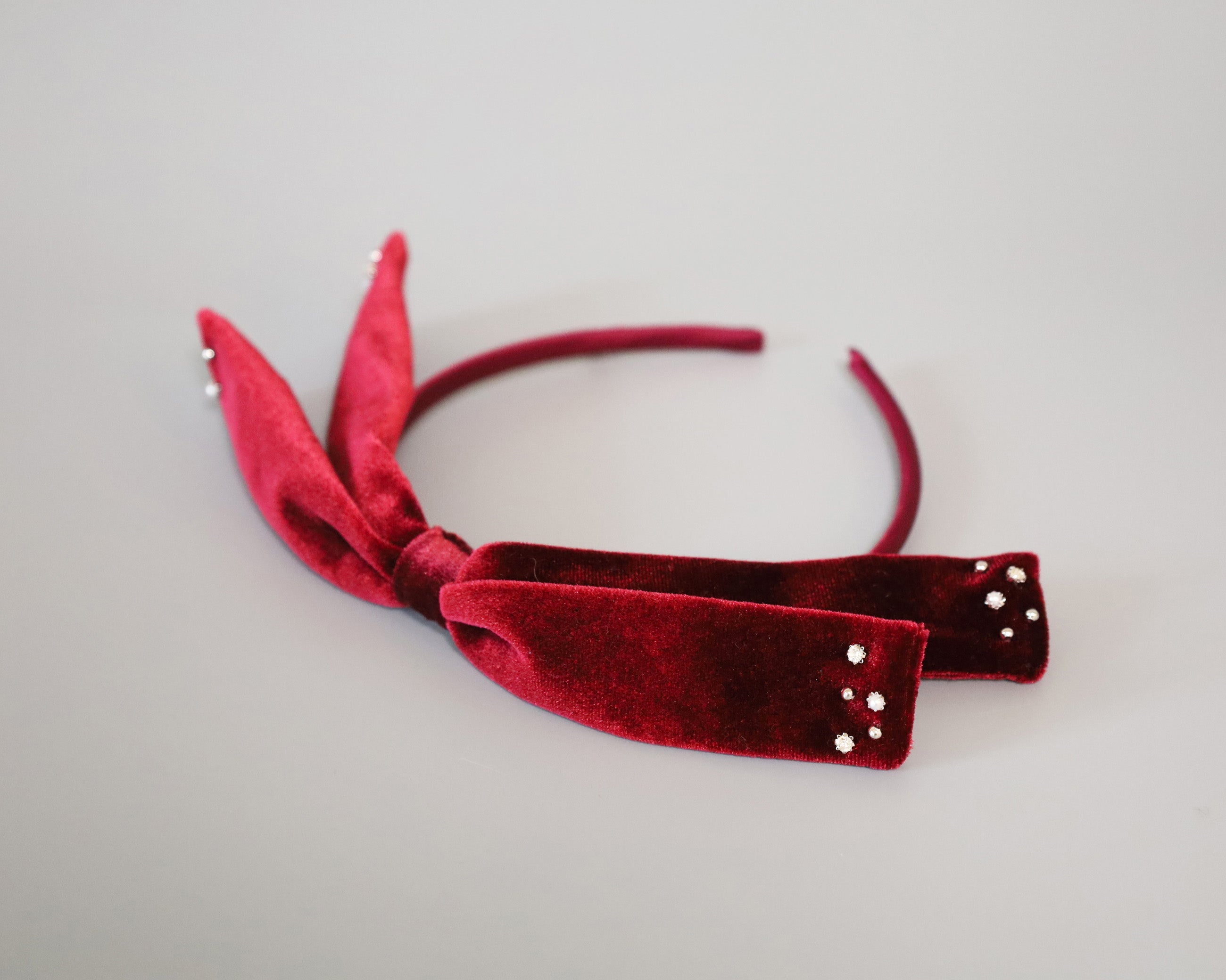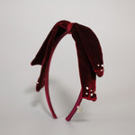 ロマンティックでラグジュアリーな気分を高める深みのある赤のベロアカチューシャです。