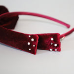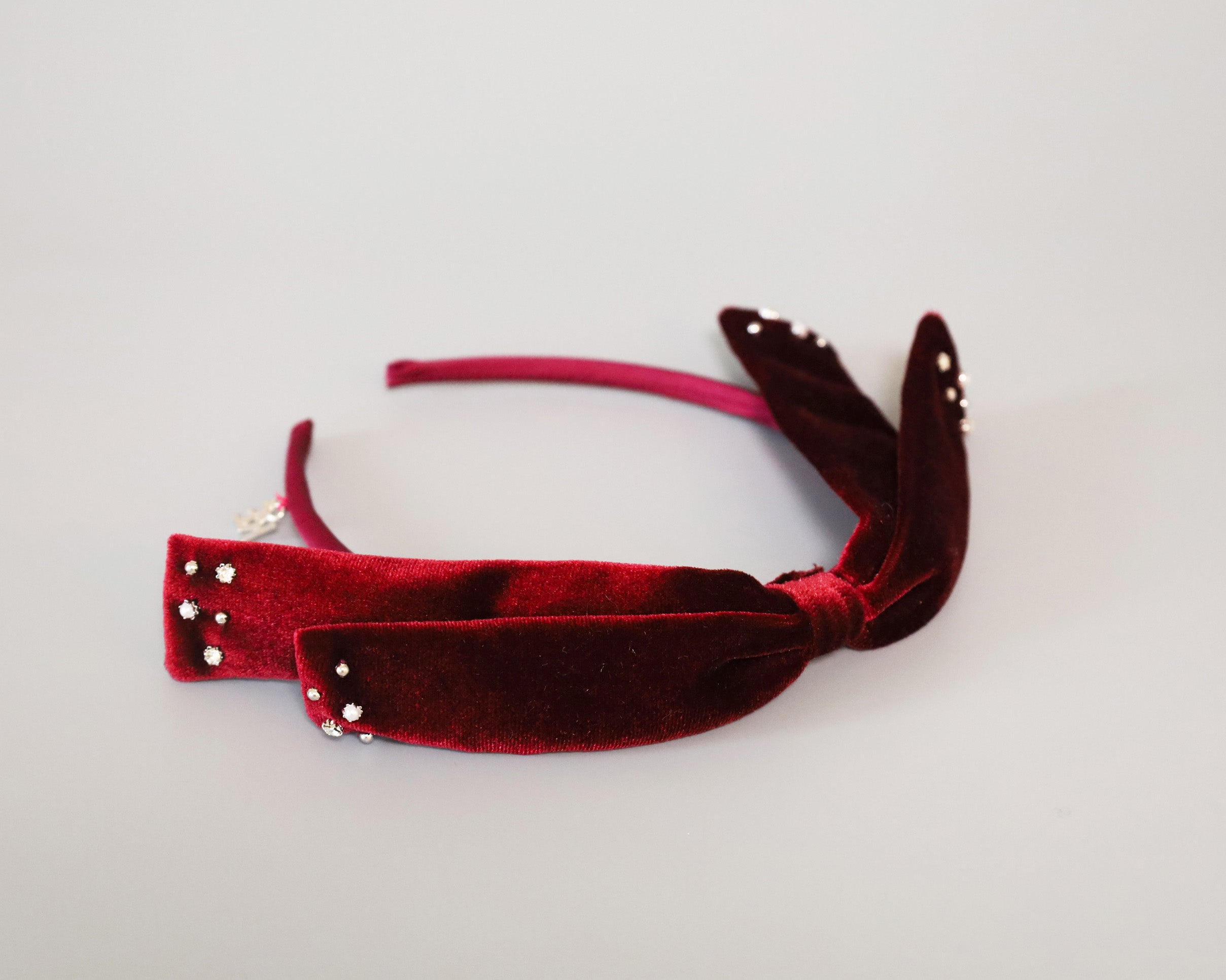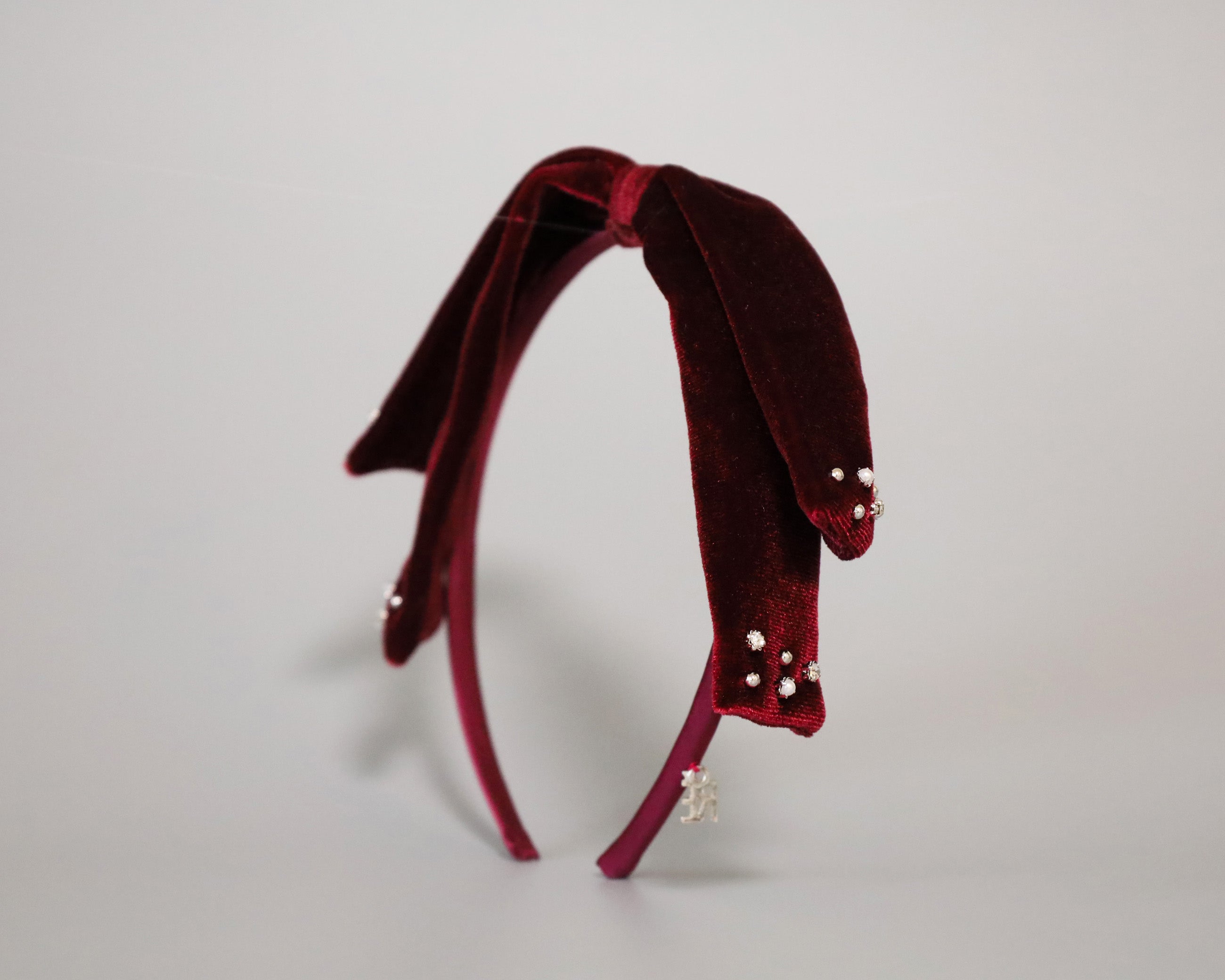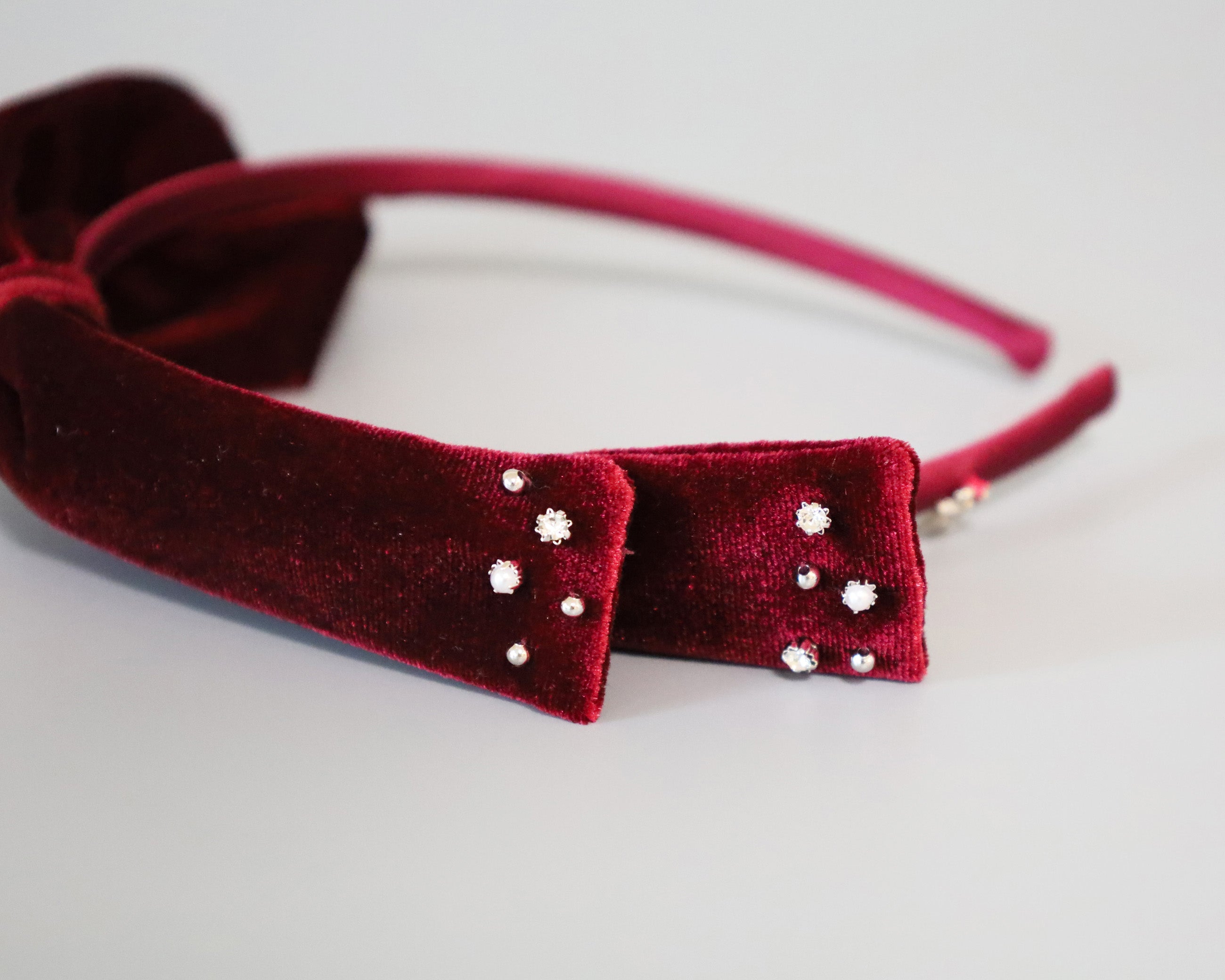 ロマンティックでラグジュアリーな気分を高める深みのある赤のベロアカチューシャです。
