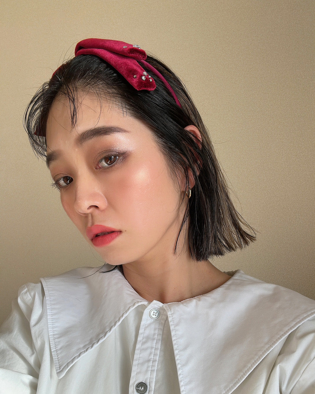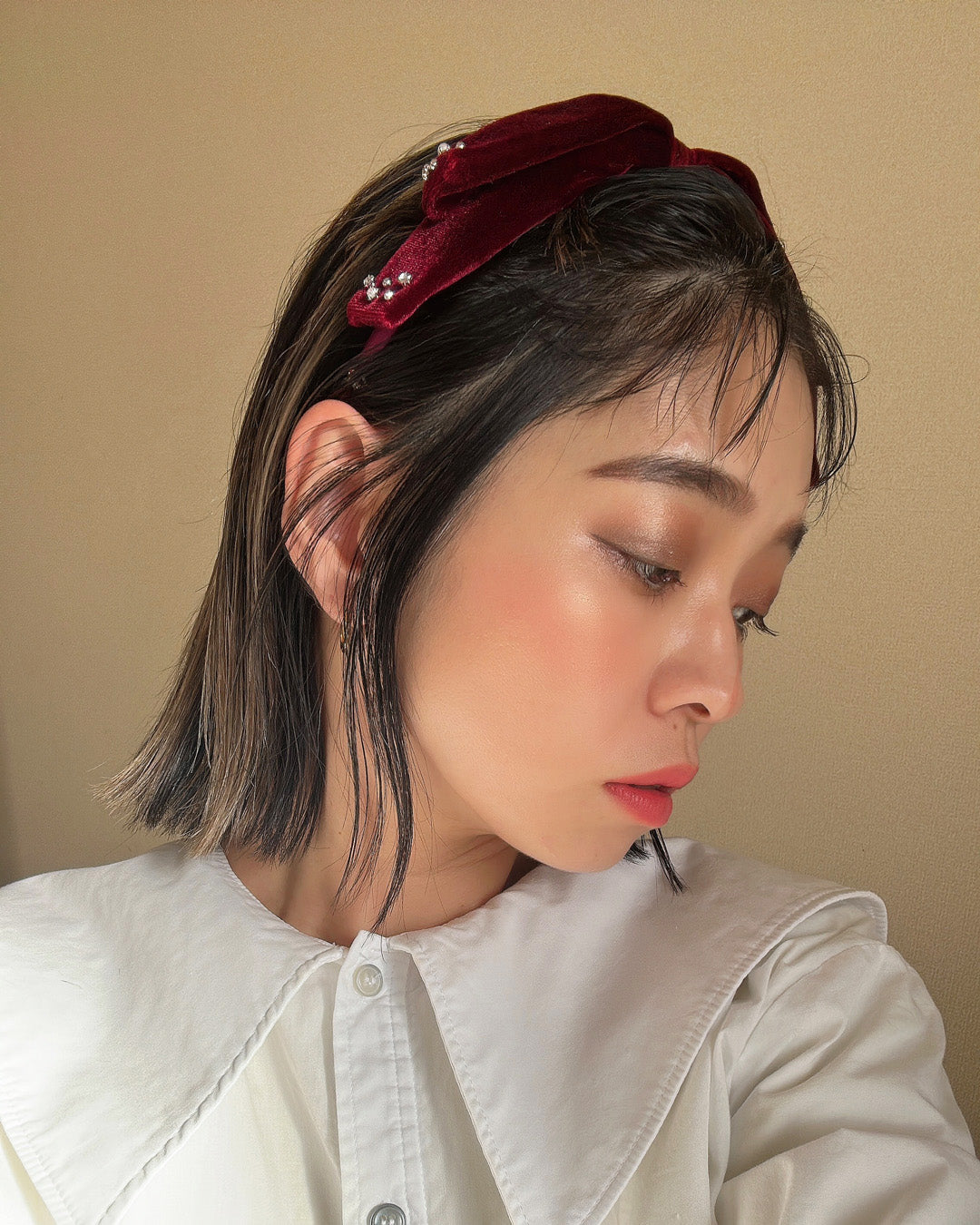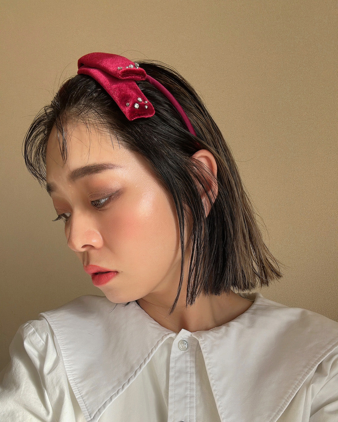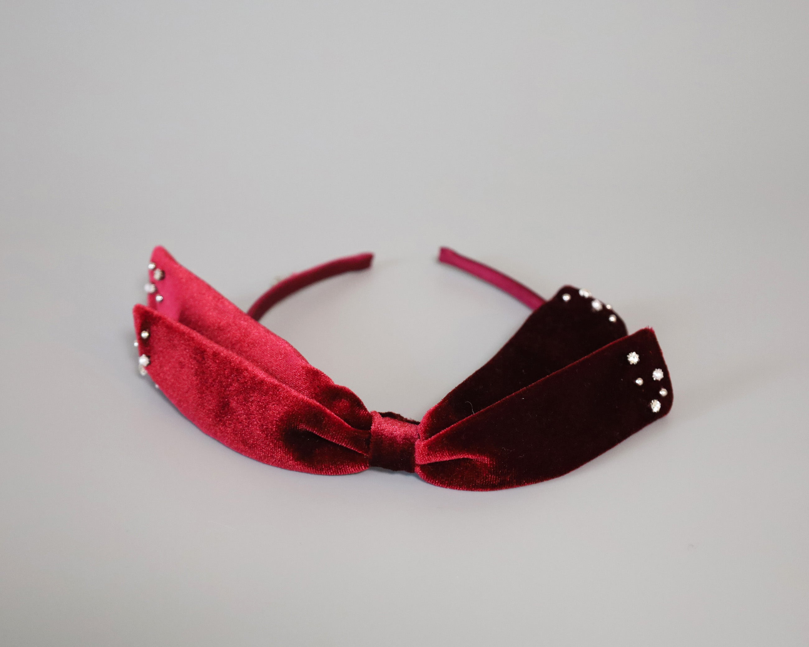 ロマンティックでラグジュアリーな気分を高める深みのある赤のベロアカチューシャです。