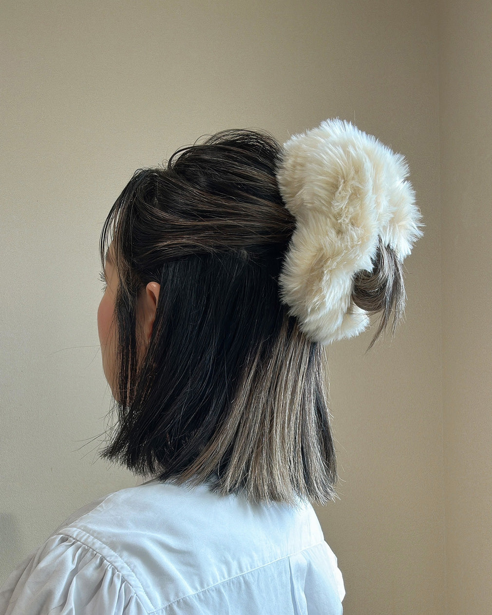うさぎのしっぽのような、つい視線が追いかけてしまうモテスタイルにおすすめなファーシュシュ。