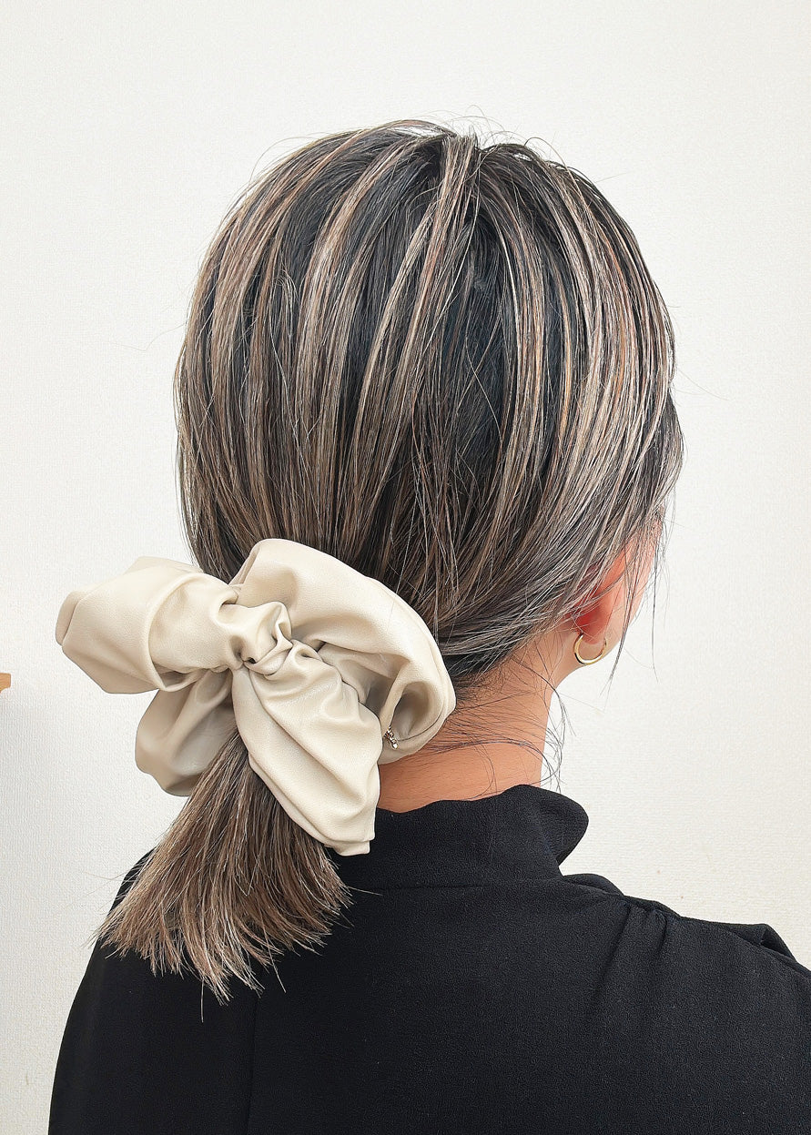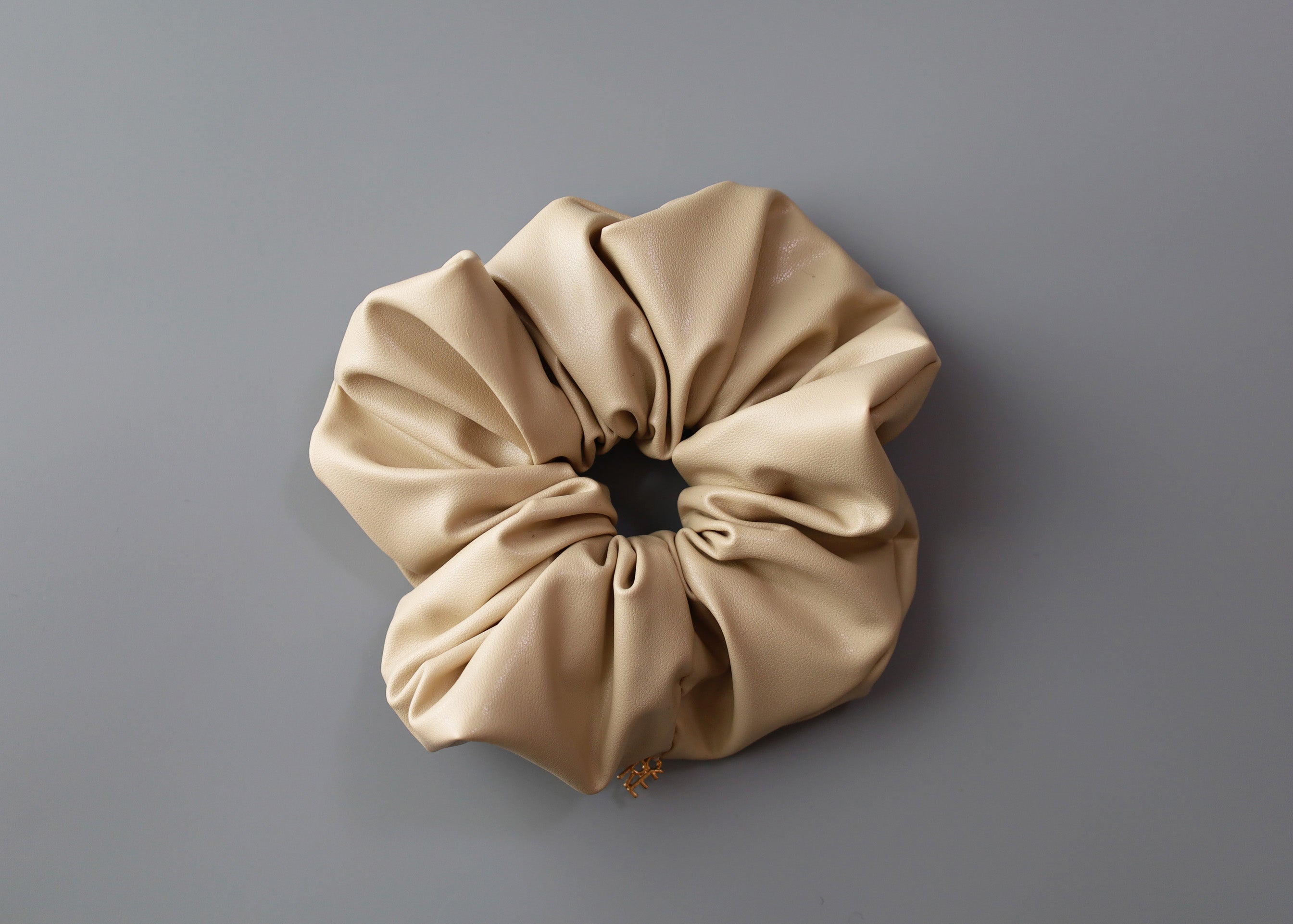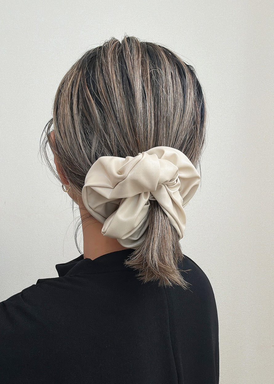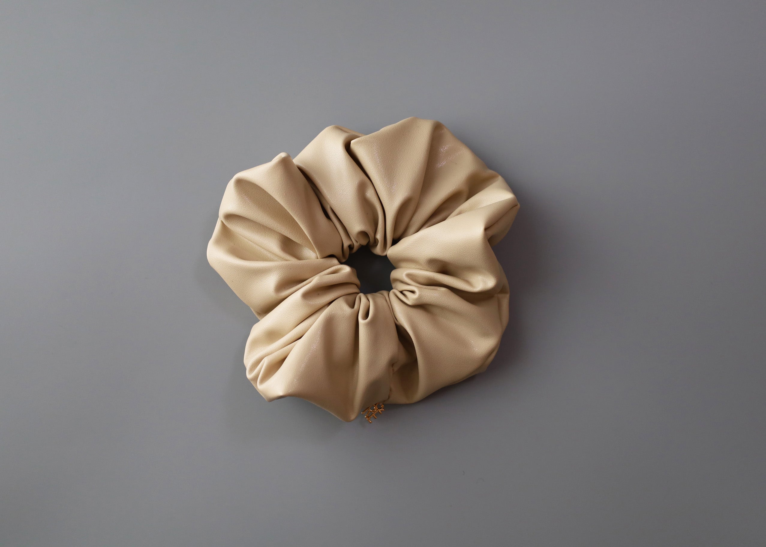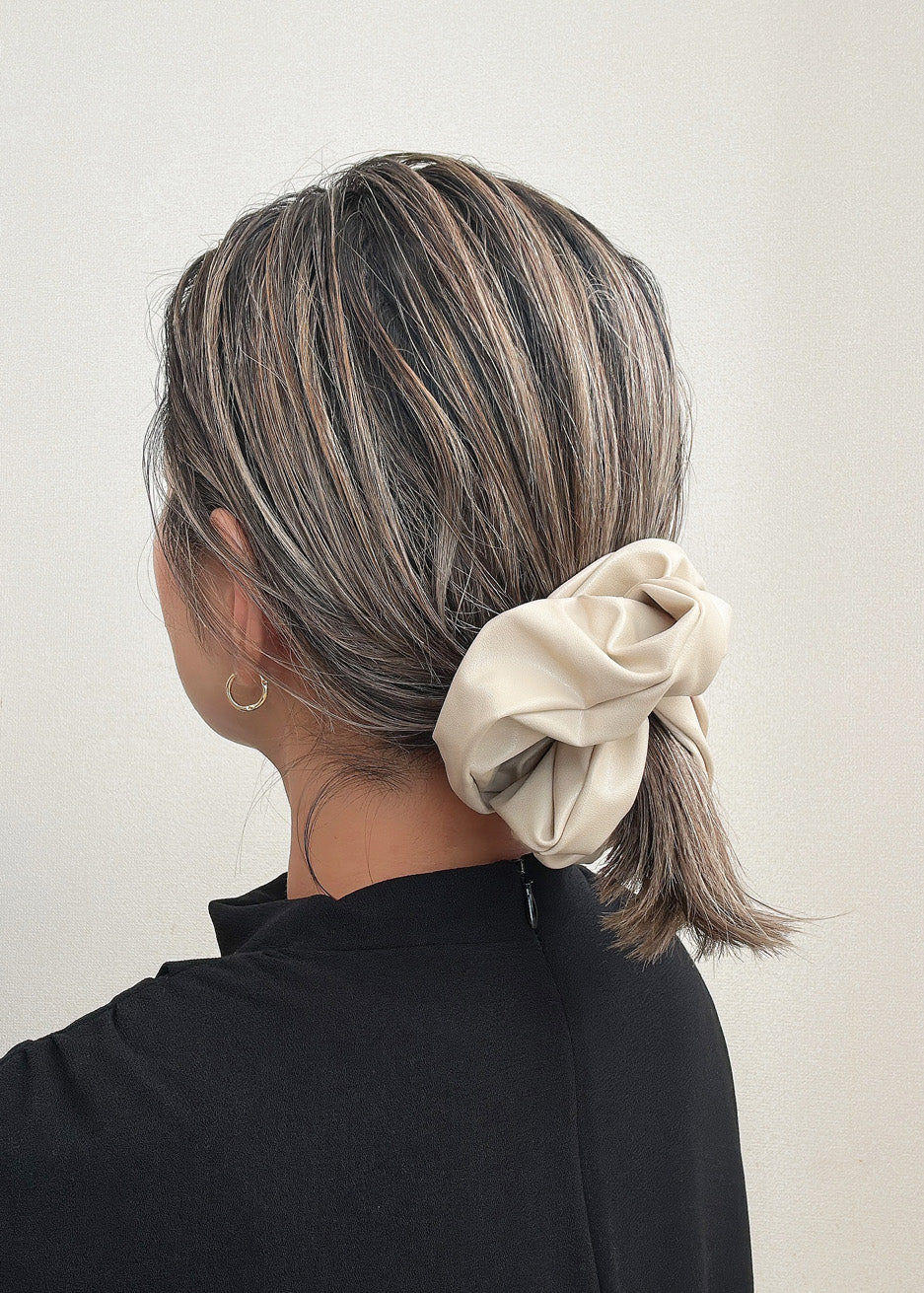 上品なベージュカラーのエコレザーシュシュ。