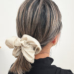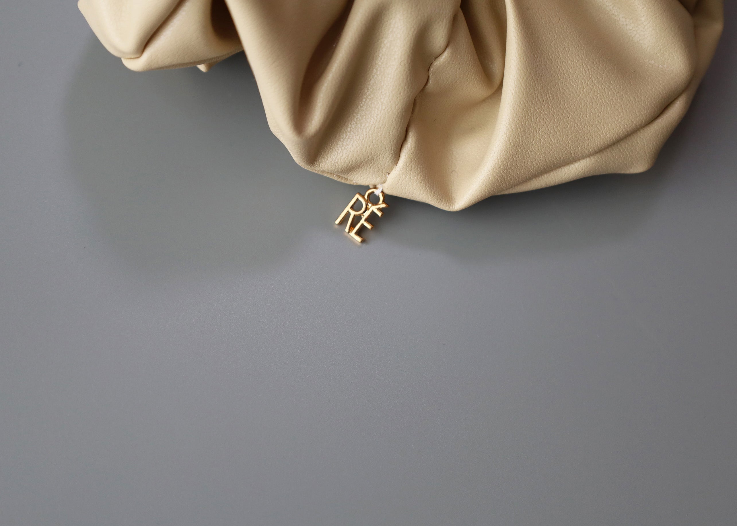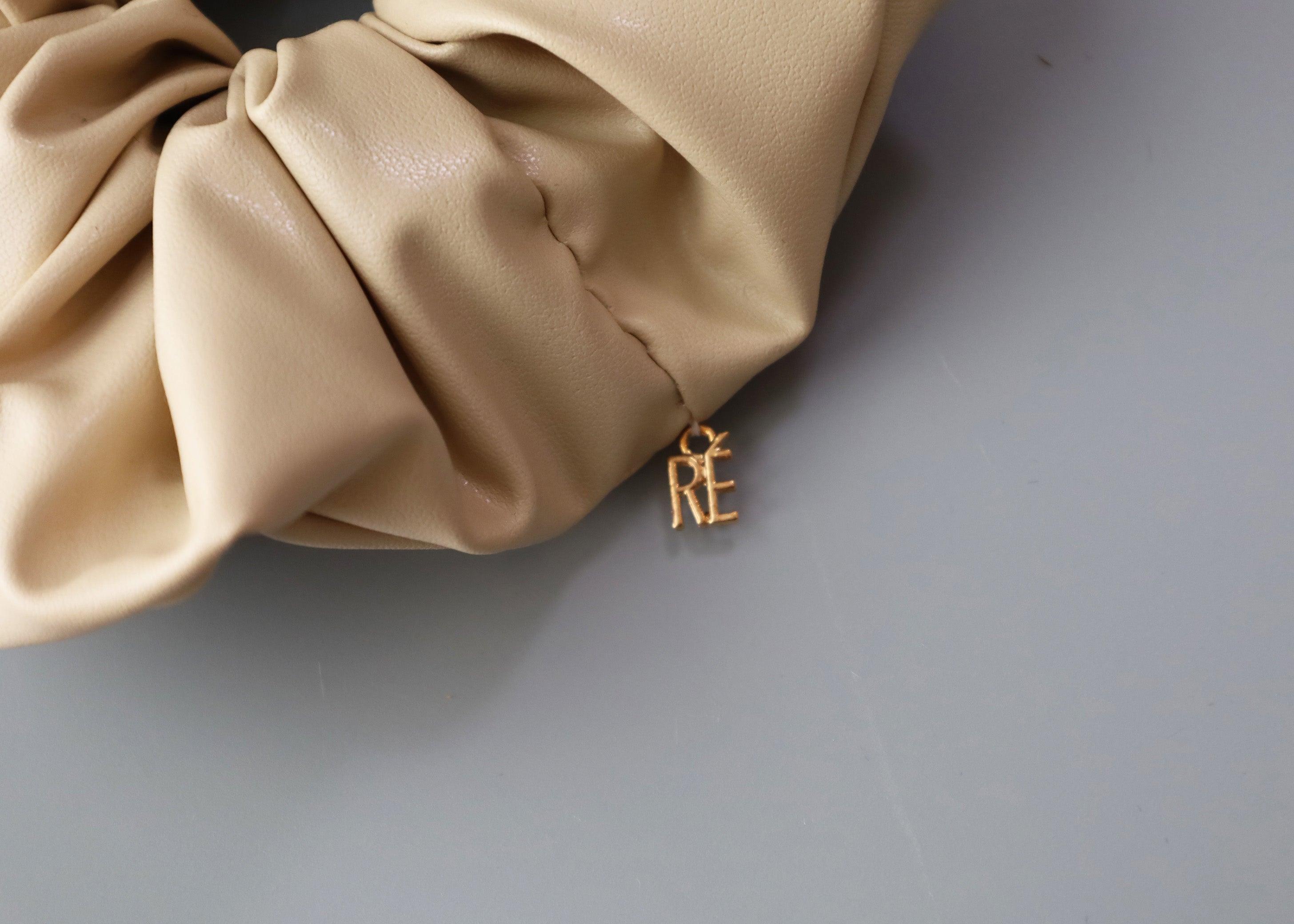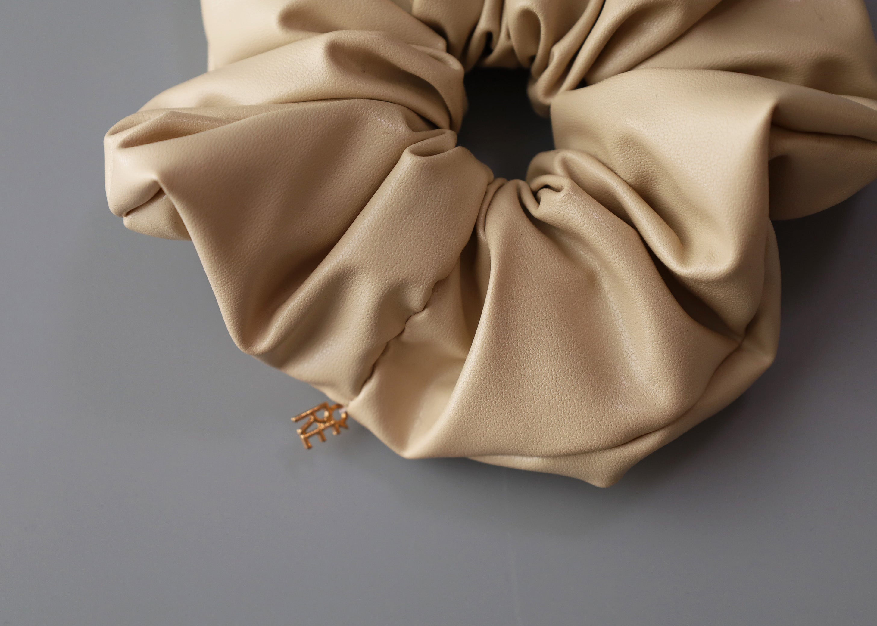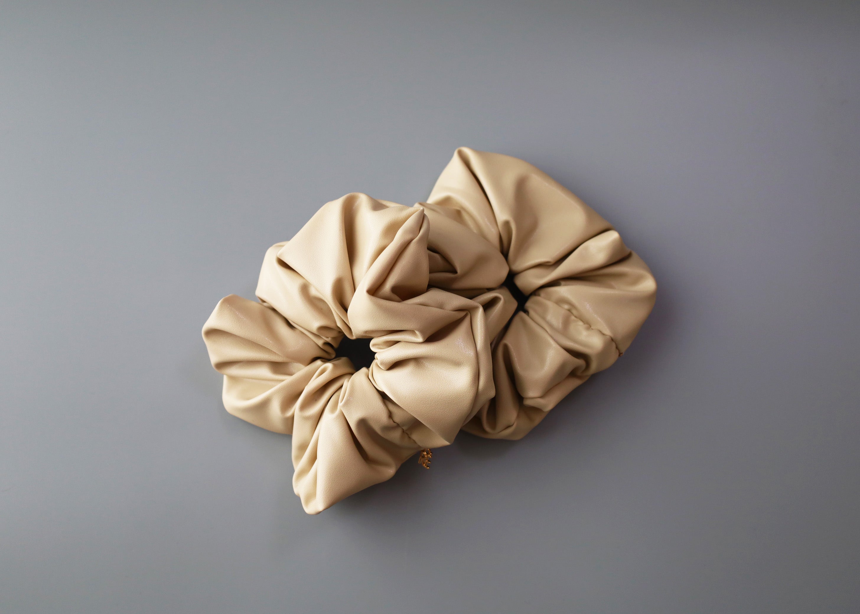 上品なベージュカラーのエコレザーシュシュ。