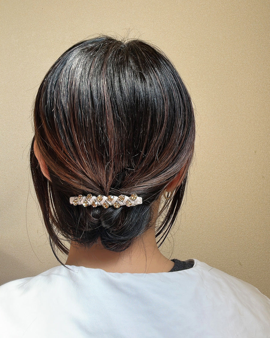 後頭部をつまんで引き出し適度にほぐすと簡単なのに高見えします。