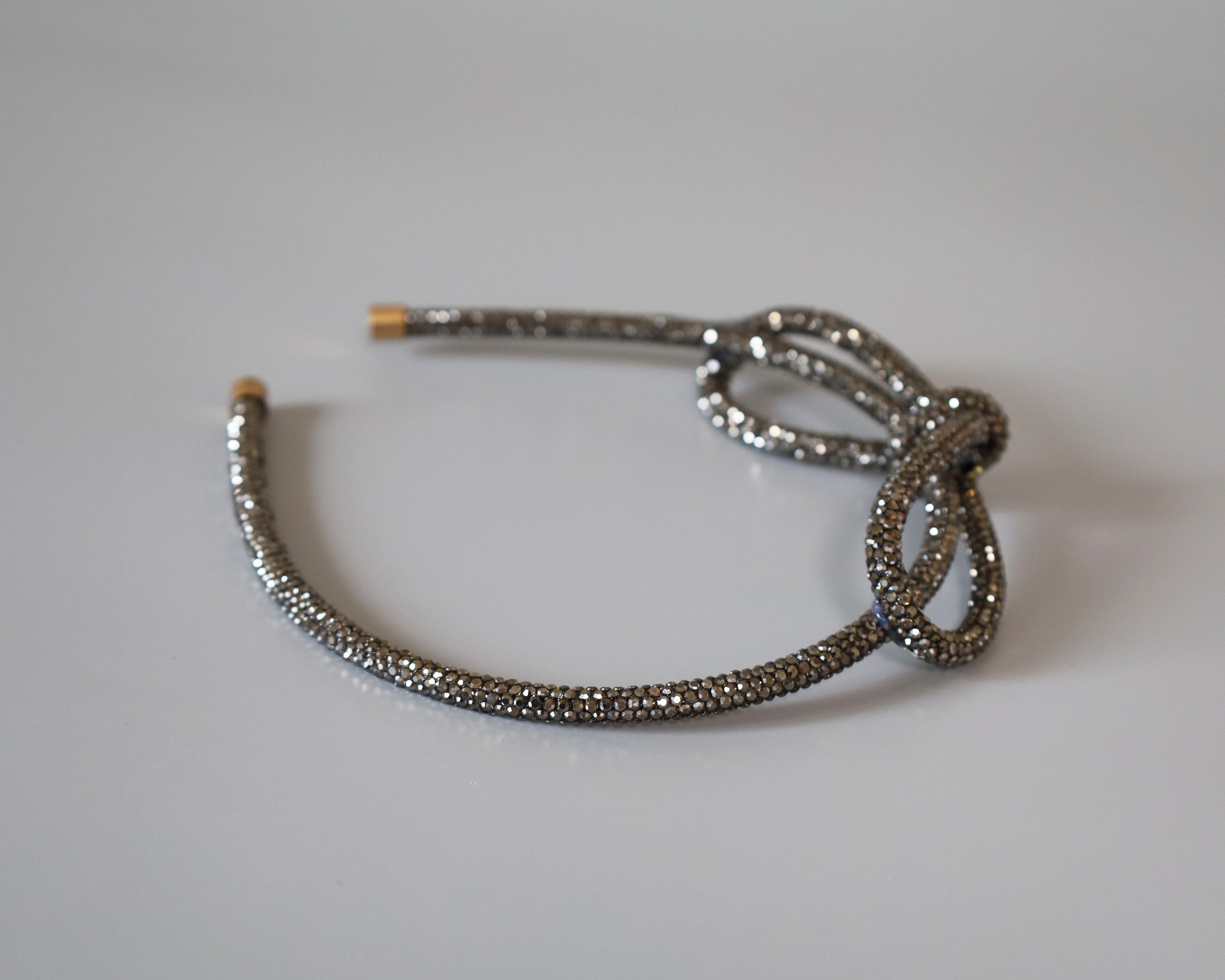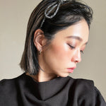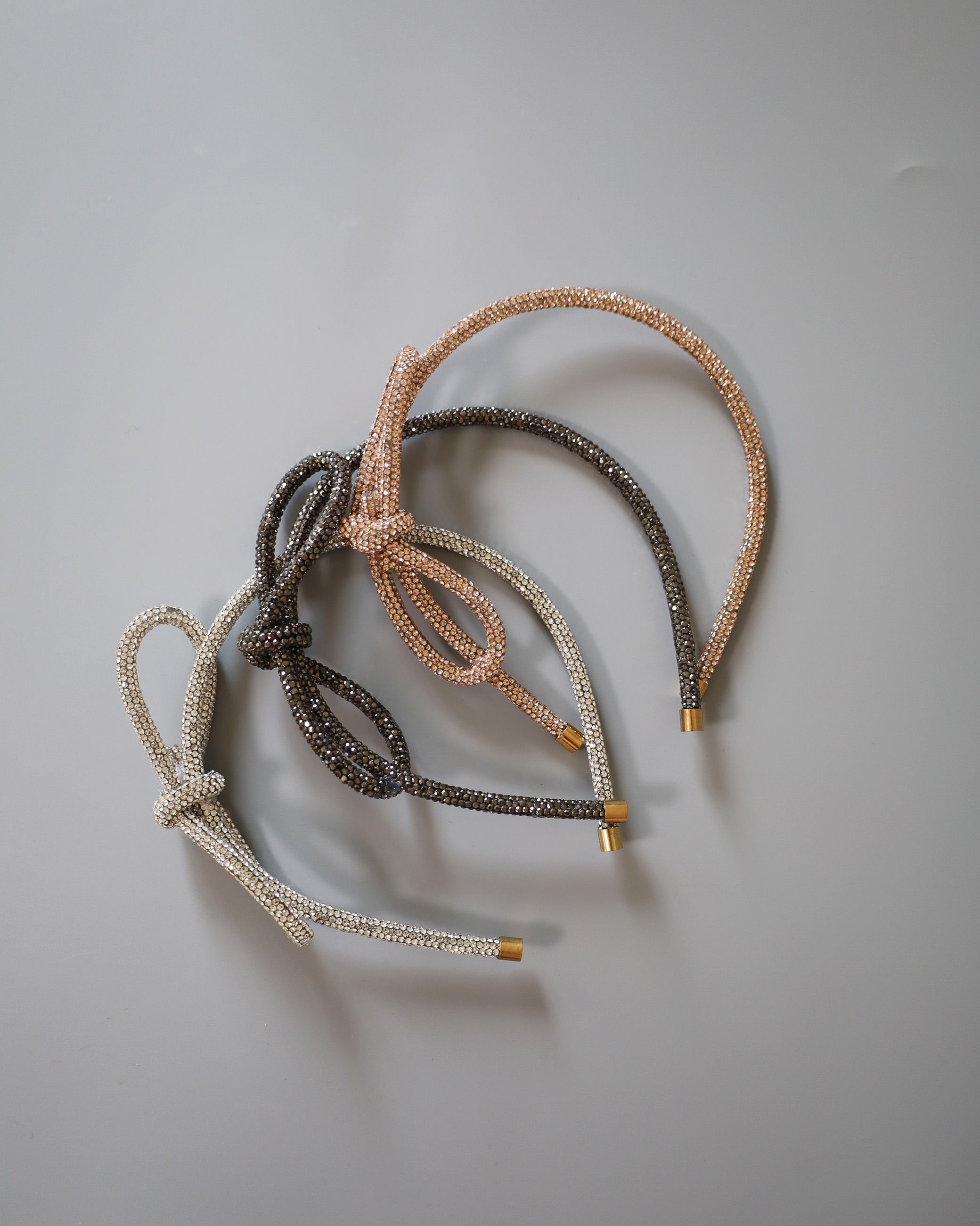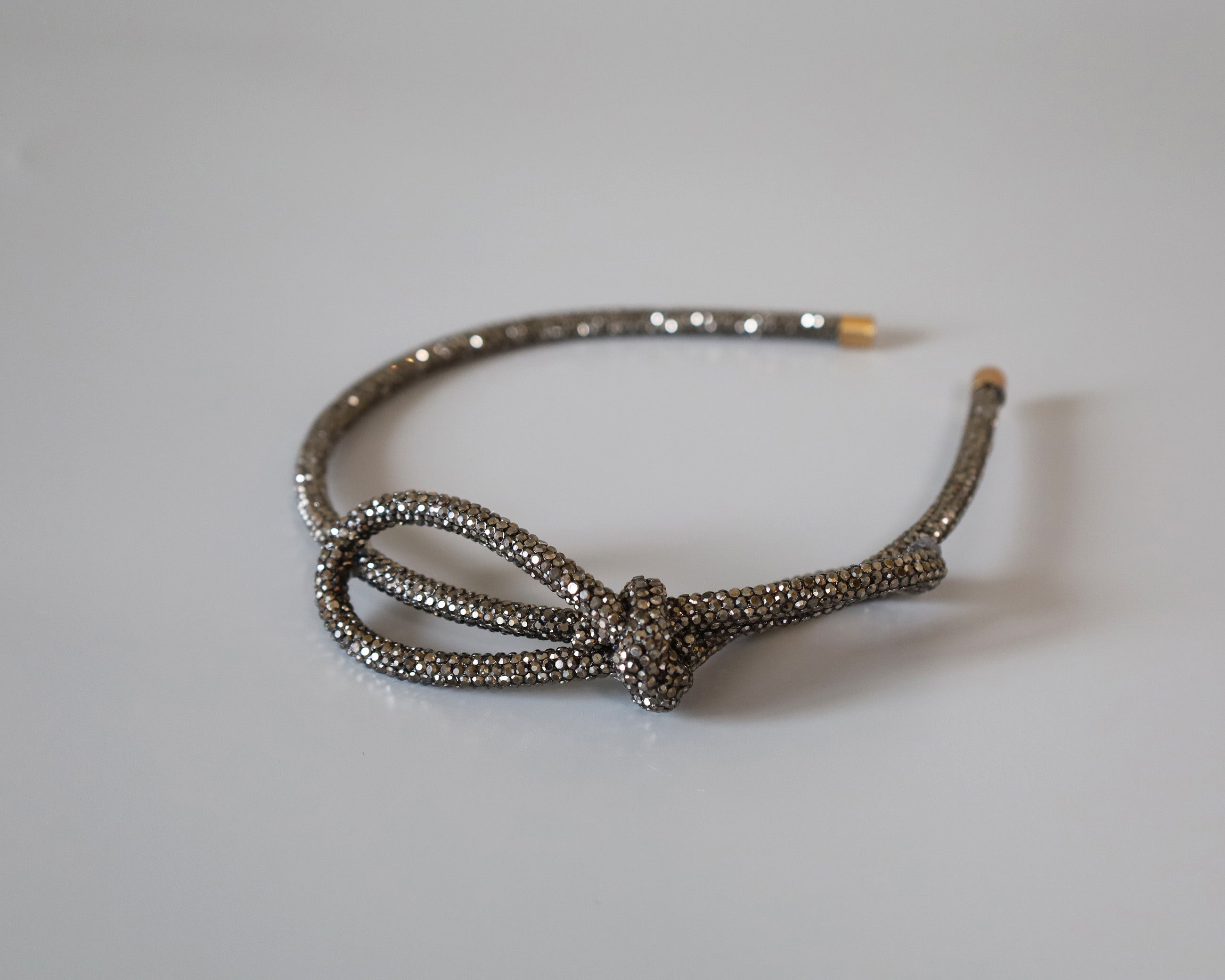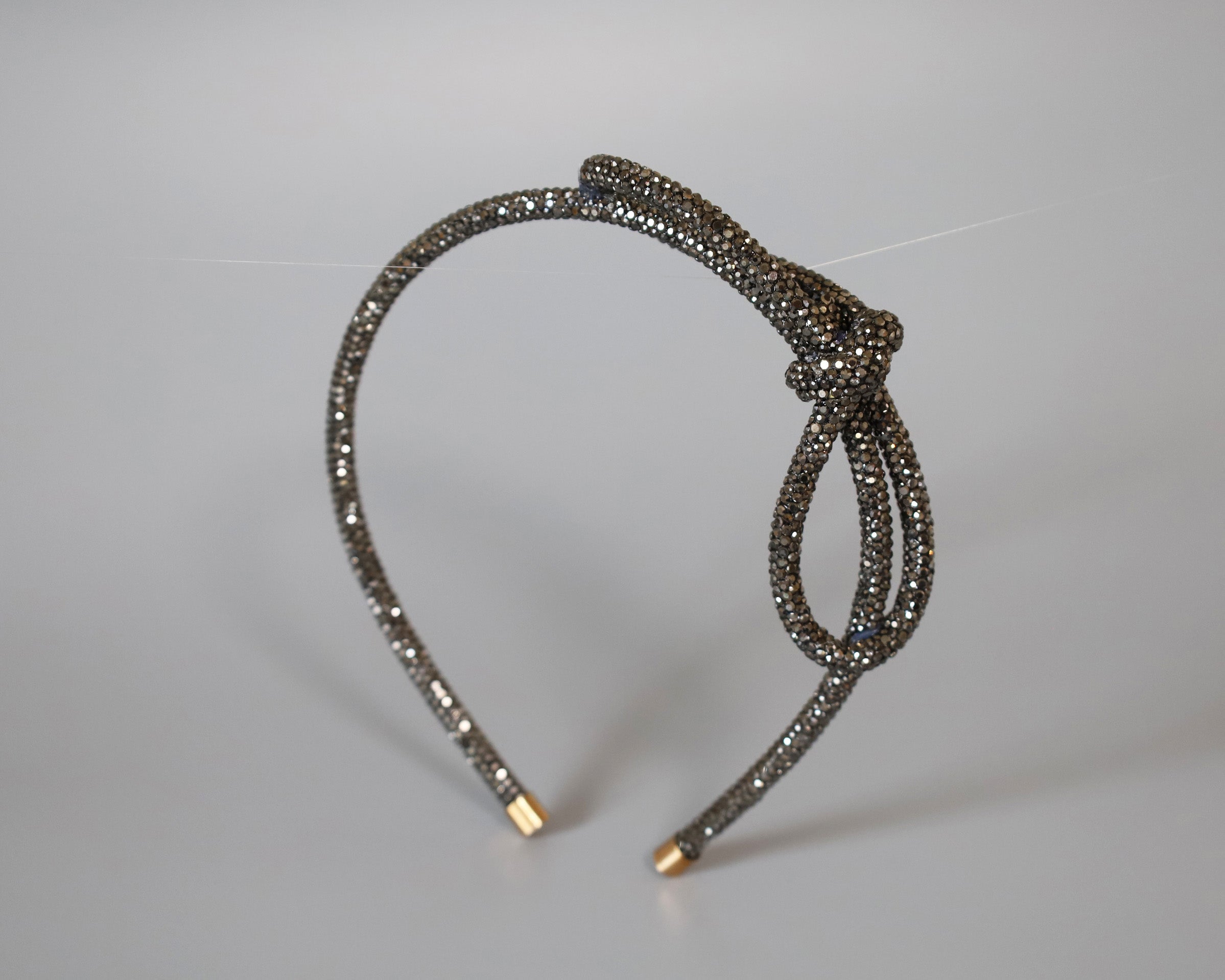 ブラックベースのビジューを惜しげもなく使ったキラキラリボンカチューシャ。