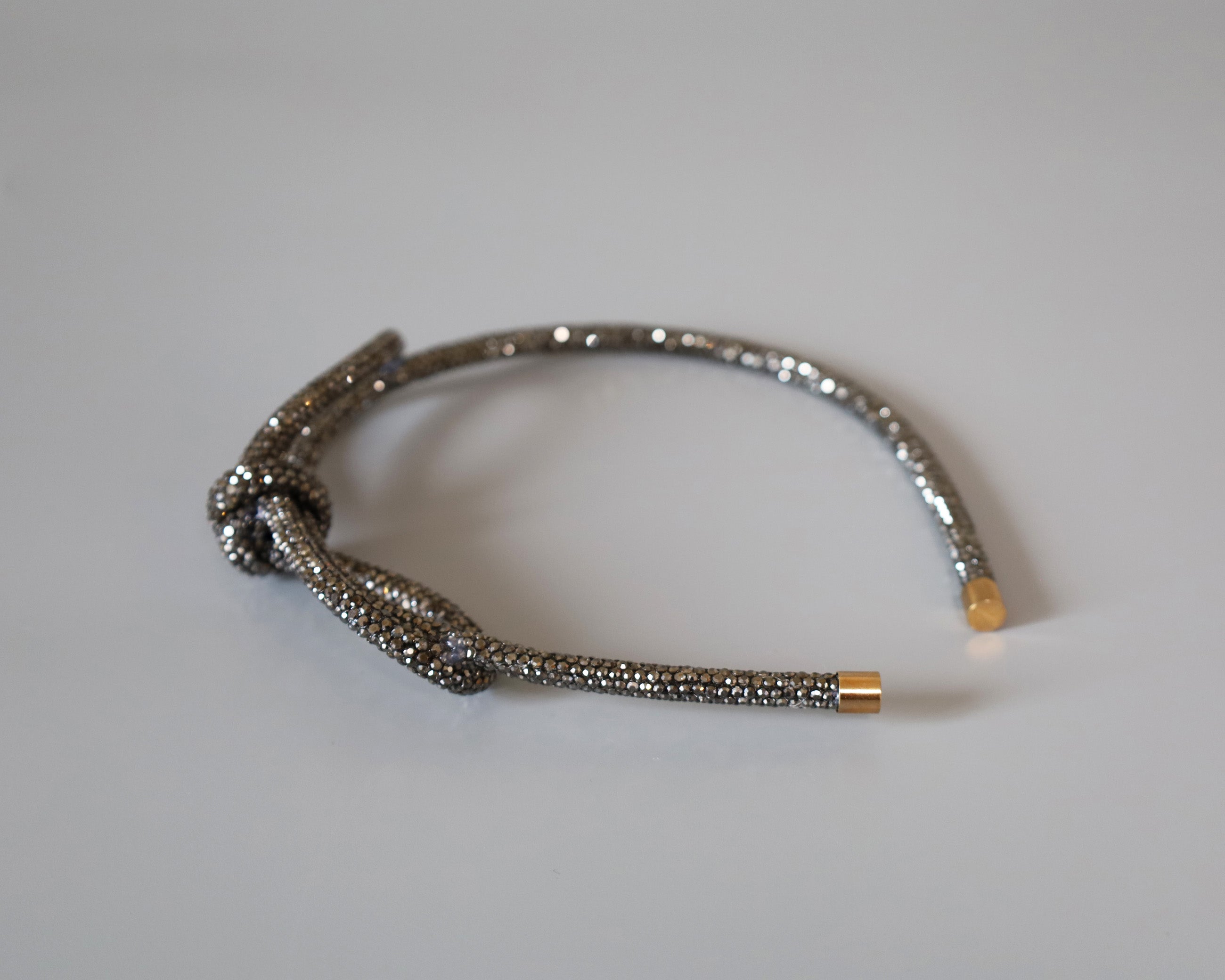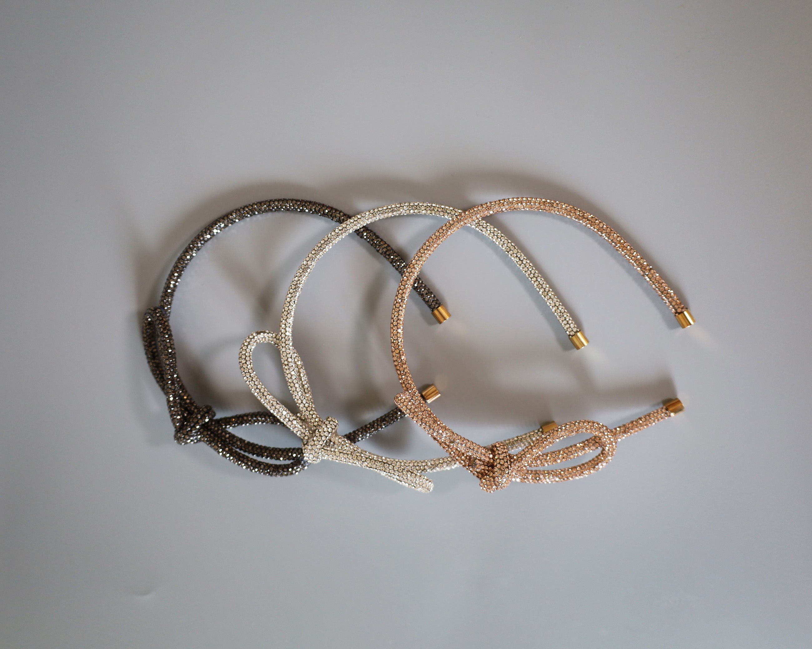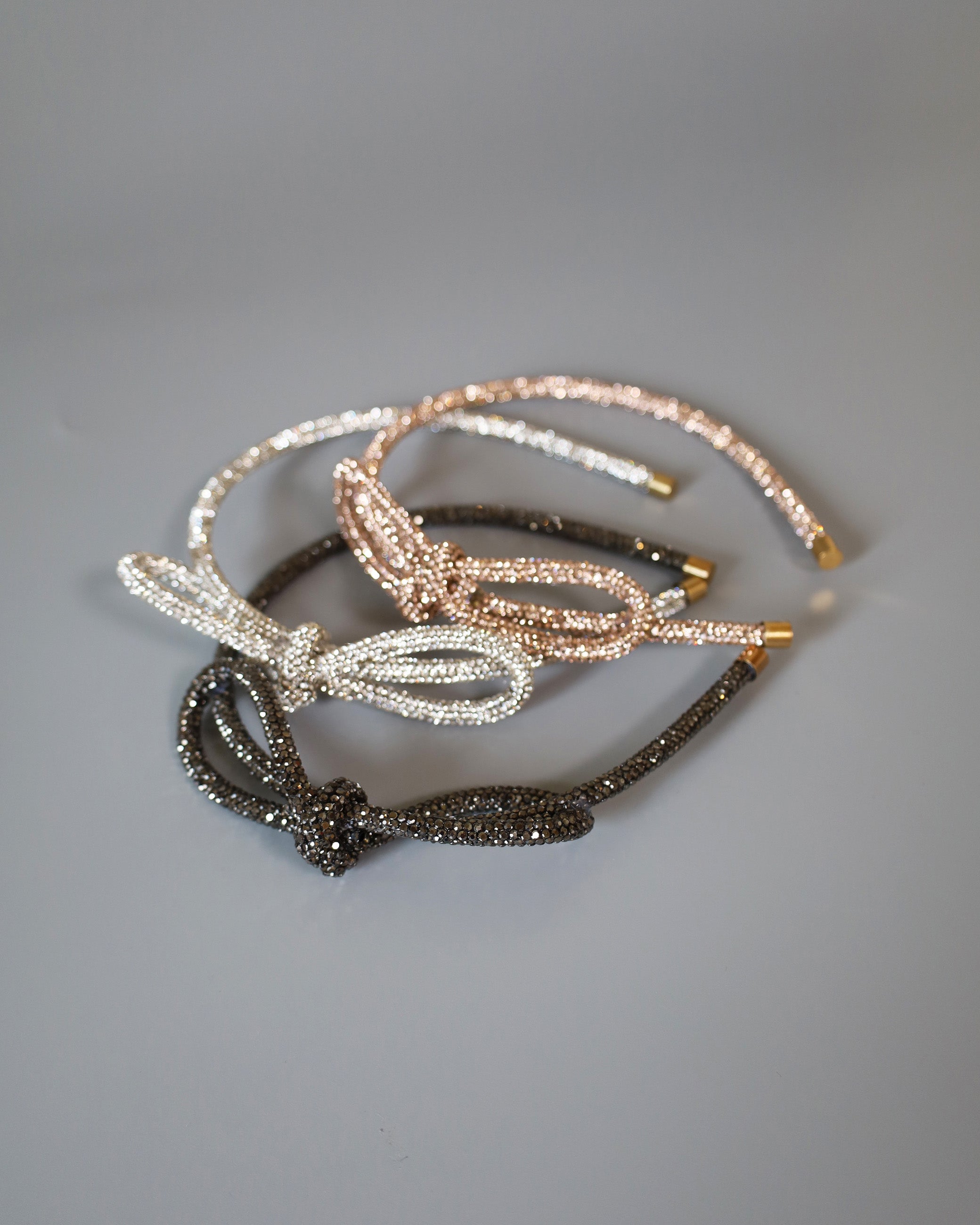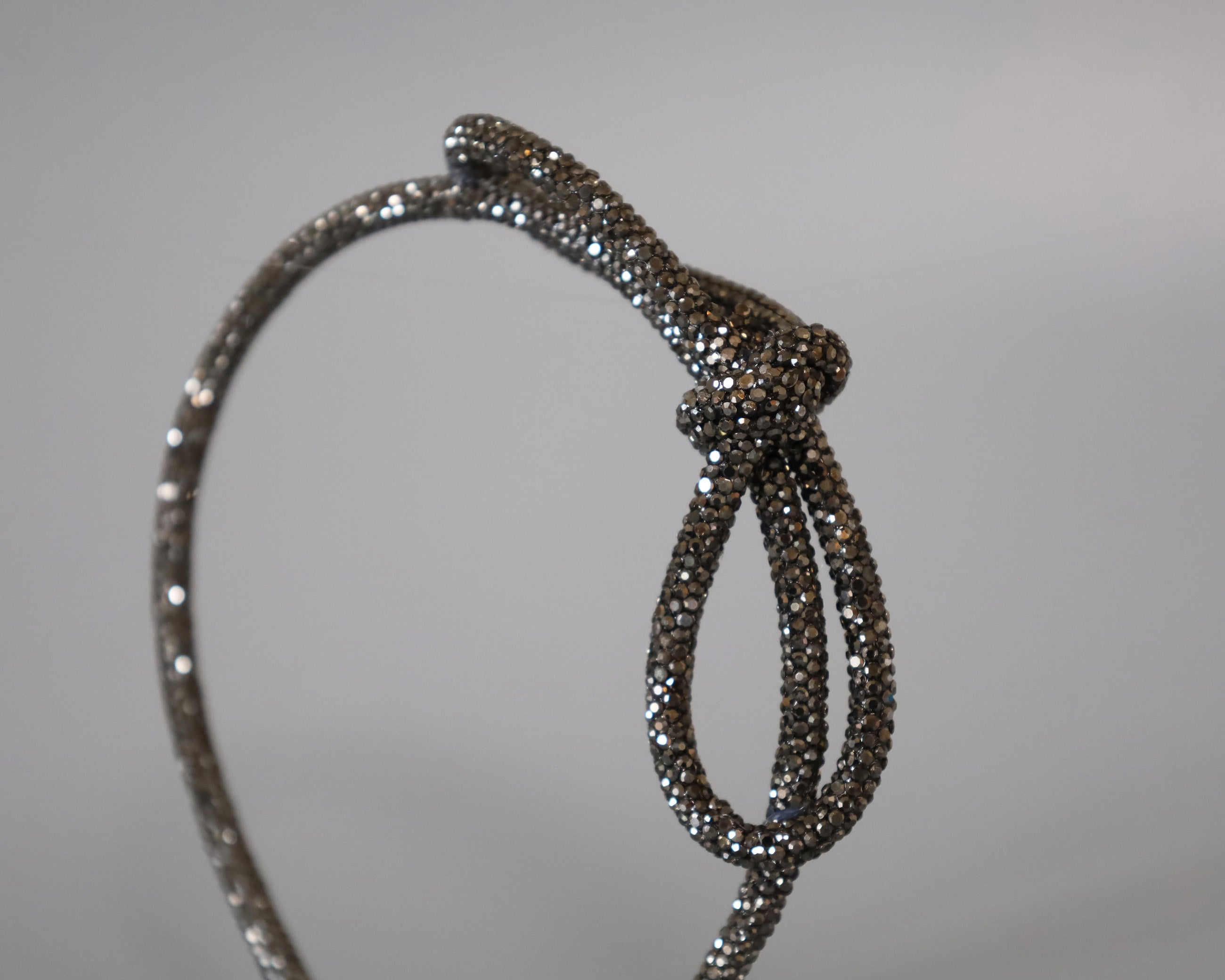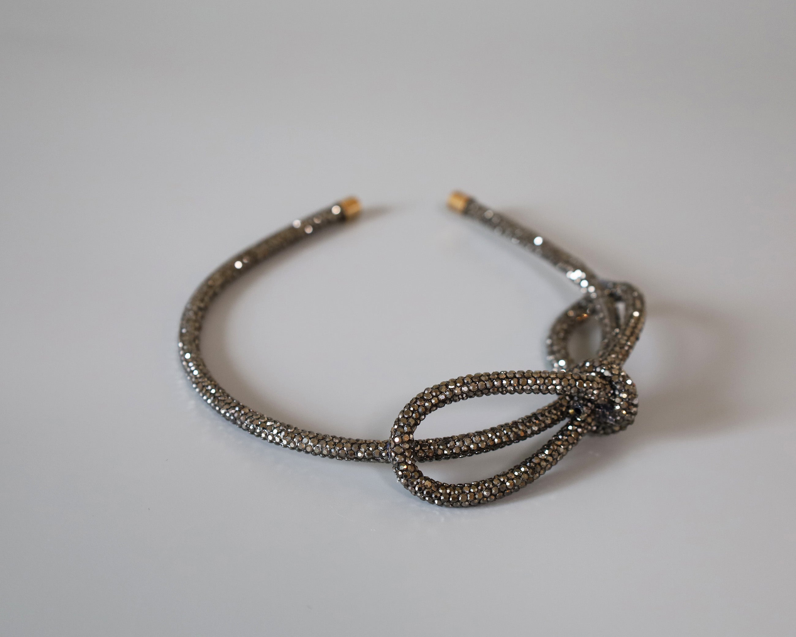 ブラックベースのビジューを惜しげもなく使ったキラキラリボンカチューシャ。
