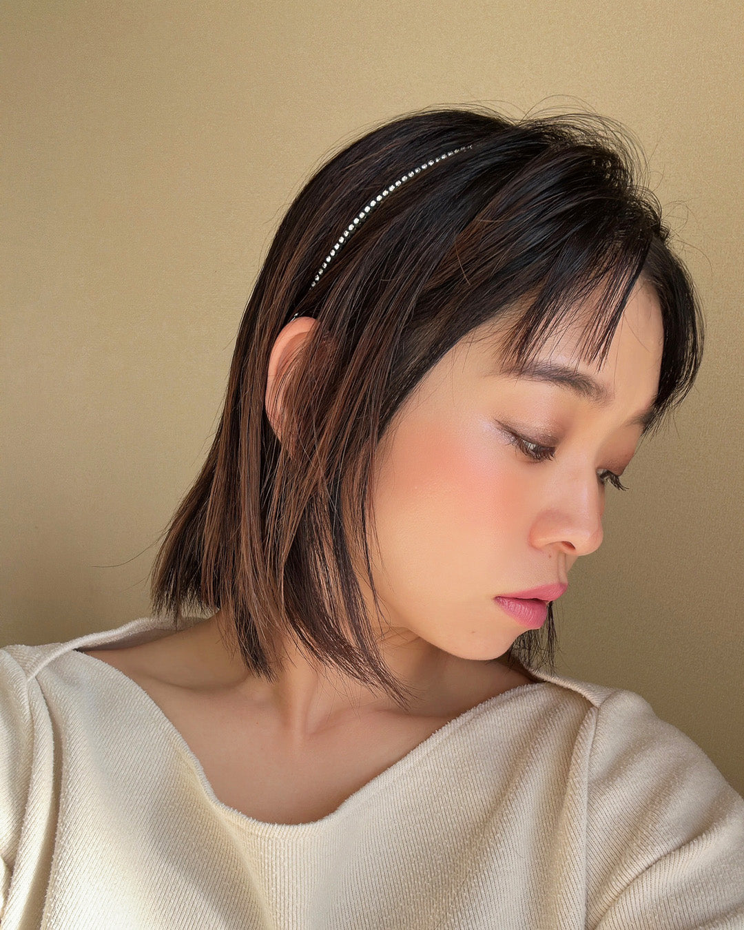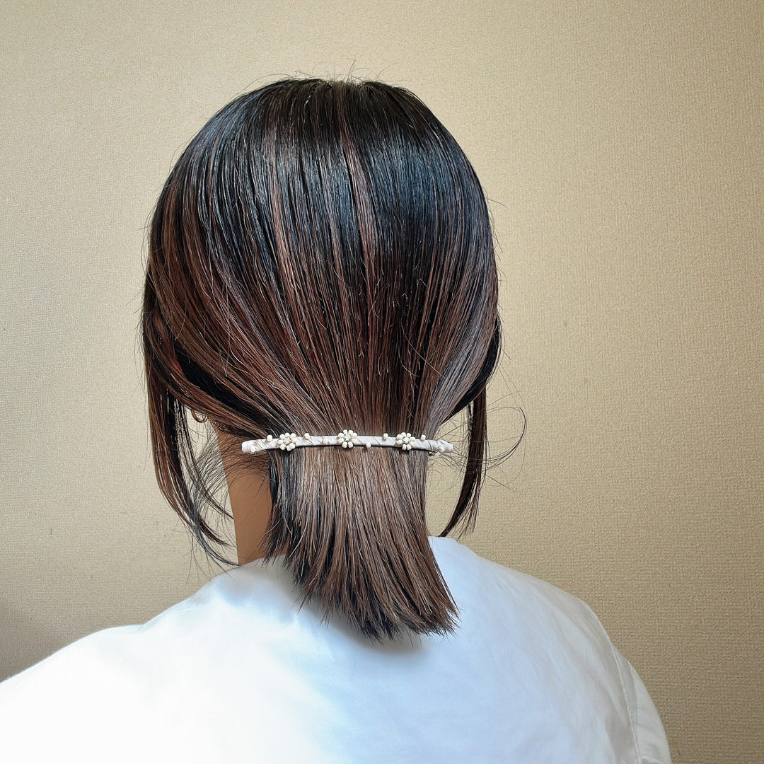 ダウンヘアに合わせるだけでさりげなく個性が光るスタイルが完成。