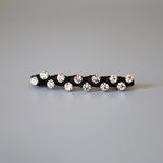タイトに編み込んだようなシルエットのブラック×シルバーのヘアバレッタ。