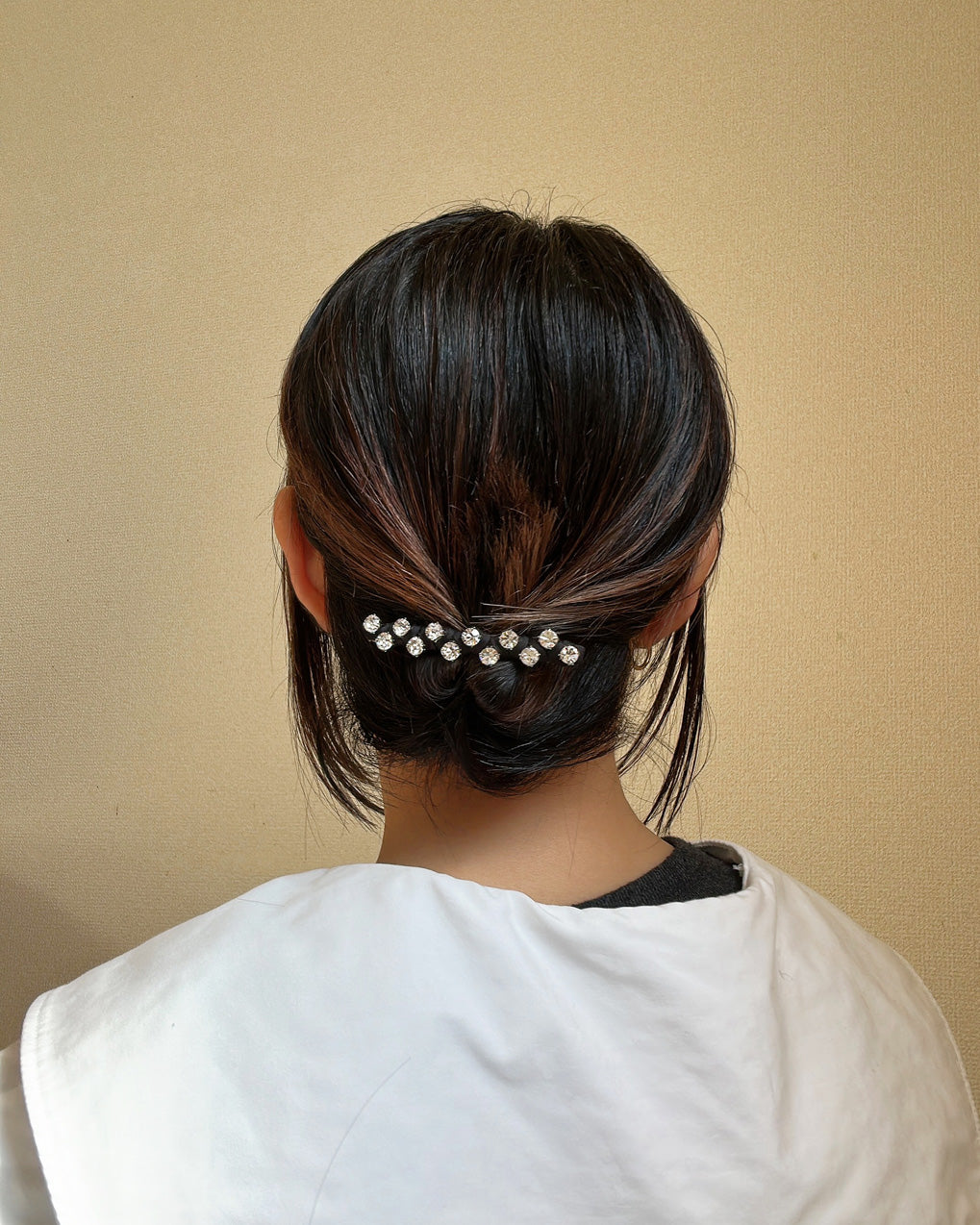 バックスタイルに華を添えるバレッタはまとめ髪やポニーアレンジ、ハーフアップと相性抜群です。